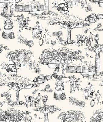 It doesn’t get more classic than this. Crafted by Jessica Molebatsi of JessicaJane and Kim Williams, the Noluthando is a quintessential toile full of countryside motifs like cattle, chickens and trees. Noluthando, Classic, sarzastore.com
