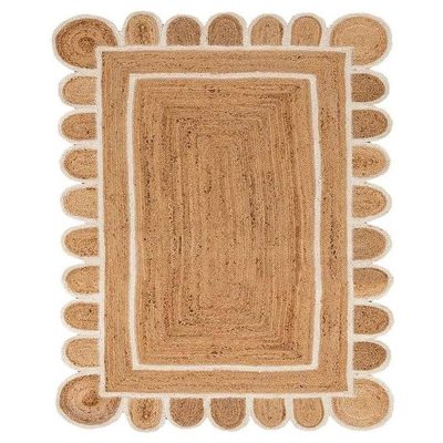 The Mainly Baskets Home Coastal Scalloped rug features a rectangular rug paired with scalloped edges. It’s suitable for both indoor and outdoor use, and it’s recommended to vacuum this rug regularly using a low setting and to avoid using the rotating beater brush.