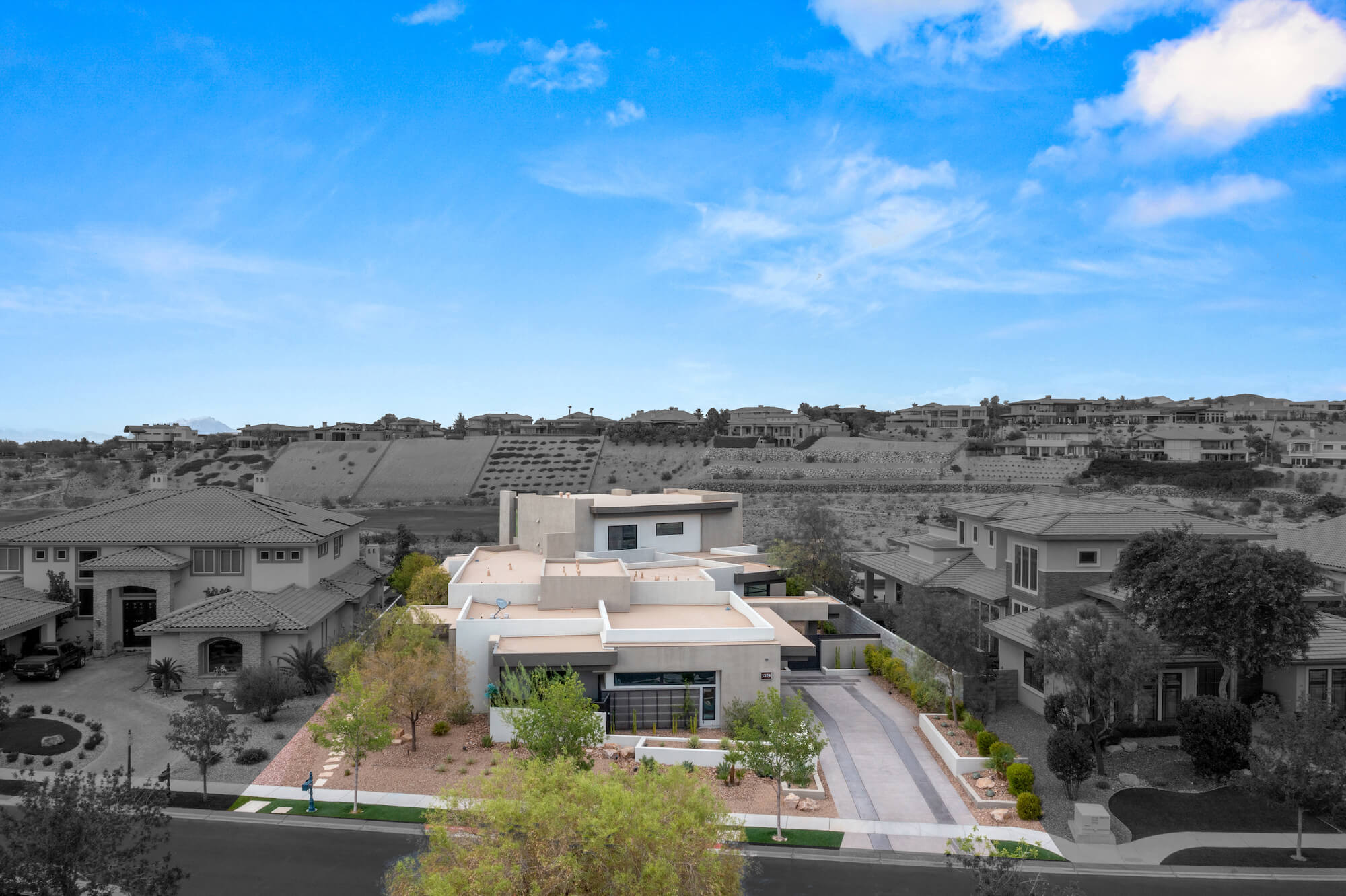 The kitchen has a Wolf cooktop, Sub-Zero appliances, two ovens, a large stainless steel farmhouse sink, prep sink, wine refrigerator and a custom hood that is a work of art! There is also a large walk-in adjacent pantry. The great room is generous in size with a fireplace, custom shelving and built-ins. Opening to the outdoors, there is a sparkling pool, bubbling fountain feature and built-in BBQ with bar seating. There is also a large grassy area, perfect for children or pets. The attached casita has a private entry, along with its own patio area, ensuite bathroom and hospitality bar. The additional bedrooms are generous in size with ensuite bathrooms and walk-in closets. One bedroom is currently being used as a fabulous home theater with black-out drapes and projector screen. With an ensuite bathroom and closet, this is easily the 5th bedroom or home office. The primary bedrooms, along with the secondary bedrooms, are on the main level. The primary bedroom is a sanctuary with large glass sliders, which open to an incredible Private Spa and a custom Sauna. There is also a fireplace, an abundance of custom cabinets and ample closet space with pull-downs. The bathroom is bright and airy with two separate sink areas, make-up vanity and a large walk-in shower. There is also a Zen-designed soaking tub. The primary bedroom is a welcoming retreat. The second level is an amazing space, with so much flexibility as there is a wet bar and ensuite bathroom. Currently being used as an office along with a home gym, there is room to spare. One is completely drawn outside to the balcony area with glass "railing" which allow for breathtaking views, day or night. This stunning home is a mix of modern luxury, quality details and finishes, yet an extremely comfortable home perfect for today's living. Located in the prestigious 24-hour guard gated community of Seven Hills, this neighborhood is close to shopping, dining, entertainment and a short drive to the Airport.