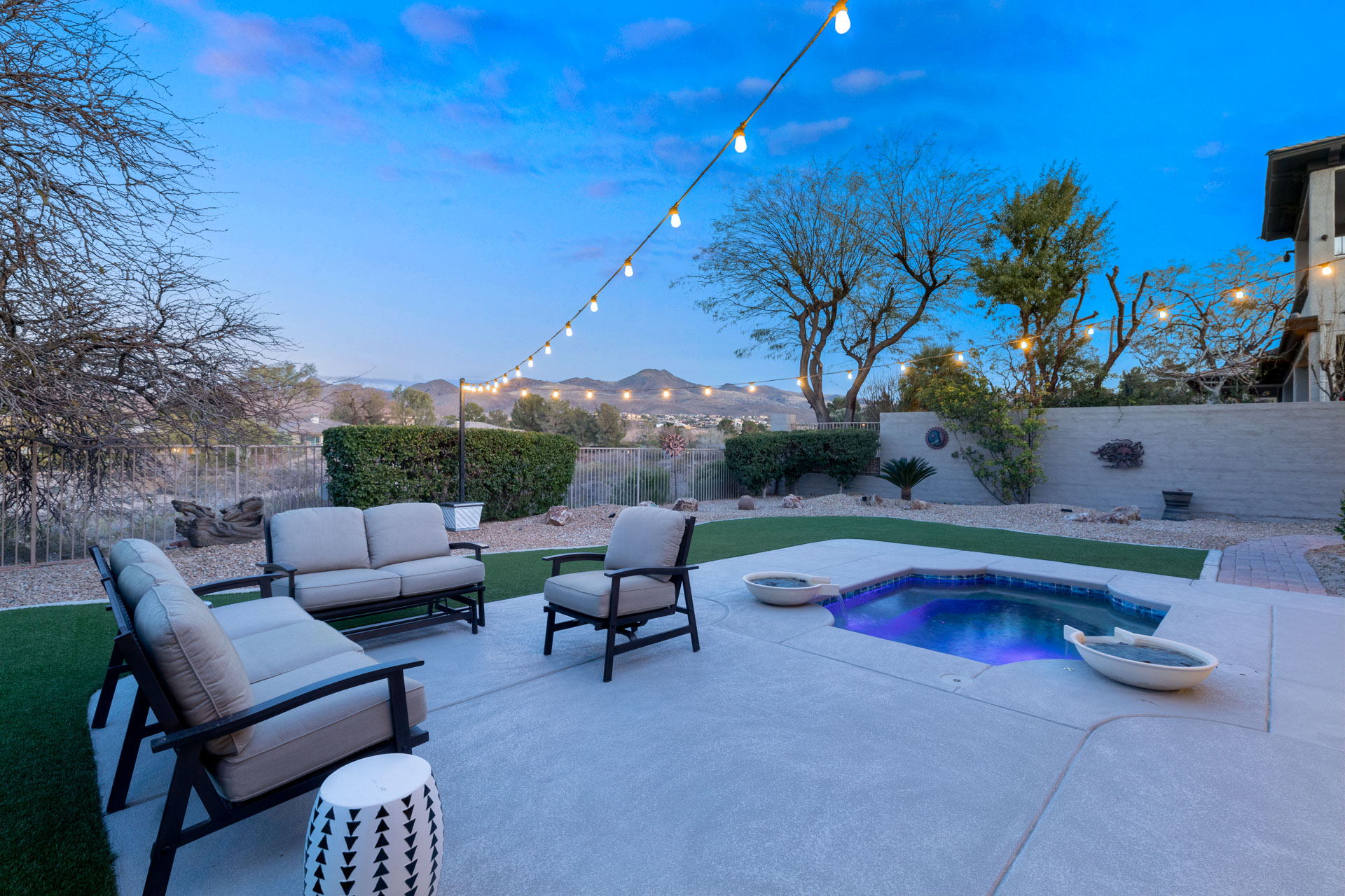 t the heart of the home lies a gourmet kitchen designed for both beauty and performance. The striking quartzite island serves as a stunning centerpiece, complemented by top-tier Wolf appliances, custom cabinetry, and ample workspace for the culinary enthusiast. Whether preparing a casual breakfast or hosting a dinner party, this kitchen delivers form and function in equal measure. The primary suite is a serene retreat, featuring direct access to a private pebble-tech spa where relaxation unfolds under open skies. Inside, the spa-inspired bath offers a freestanding soaking tub, oversized glass-enclosed shower, dual vanities, and a spacious walk-in closetāevery element carefully curated for comfort and calm. Two additional bedrooms provide space for guests or family, while a designated office offers a quiet environment for work or creative pursuits. The formal dining room, with its refined ambiance, completes the homeās layout and enhances its sense of livable luxury. Step outside to discover the true soul of this propertyāa sunrise-facing backyard where views of the arroyo and surrounding mountains create a natural sanctuary. The landscape is both peaceful and private, offering an uninterrupted connection to the desertās quiet beauty. Whether hosting al fresco gatherings beneath the covered patio or simply savoring a morning coffee while watching the colors shift across the canyon, the outdoor experience here is unmatched. Blending sophistication, comfort, and a setting of rare serenity, 22 Brays Island Drive captures the essence of elevated living within one of Hendersonās most coveted communities. This is more than a homeāitās a lifestyle defined by elegance, ease, and connection to the land.