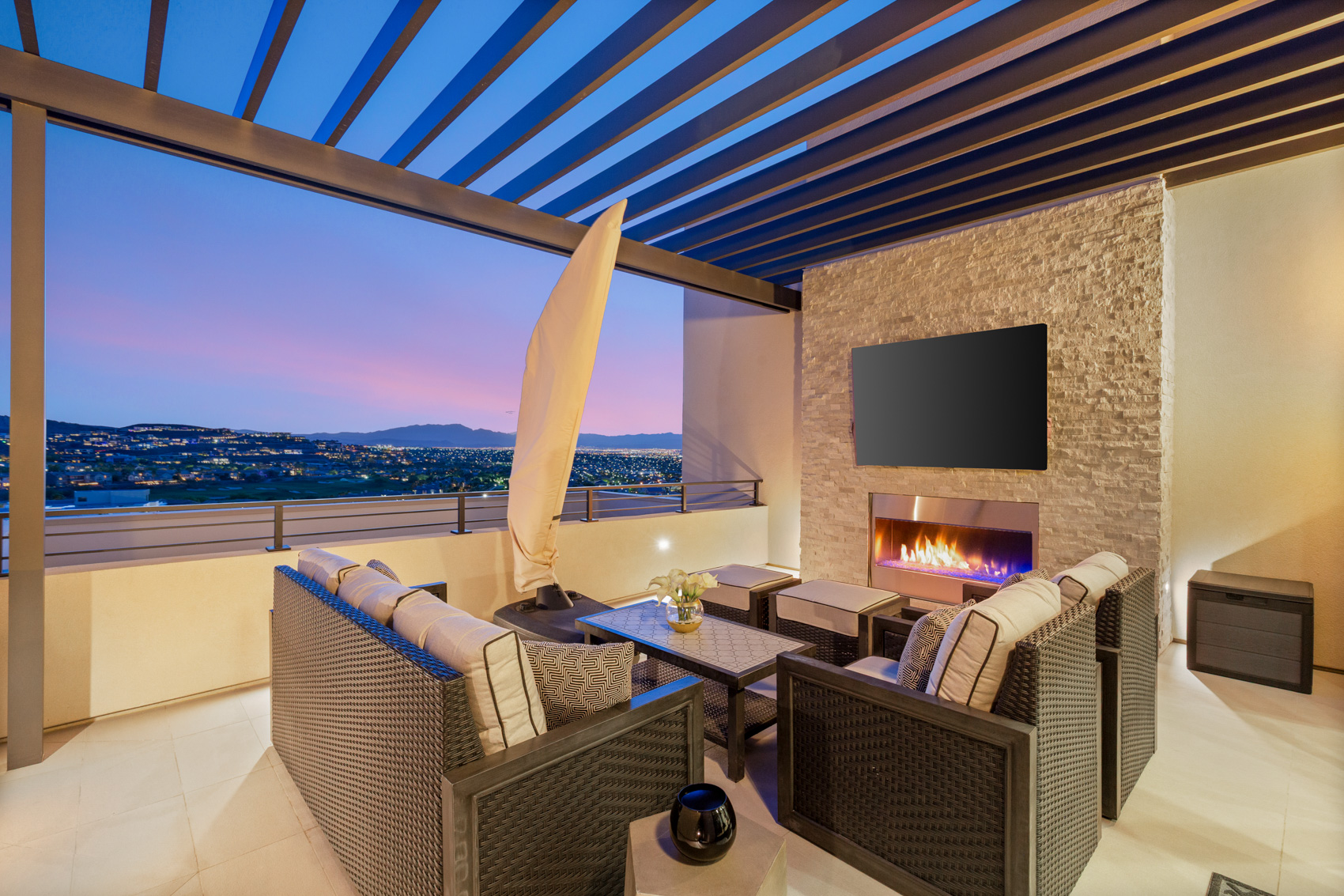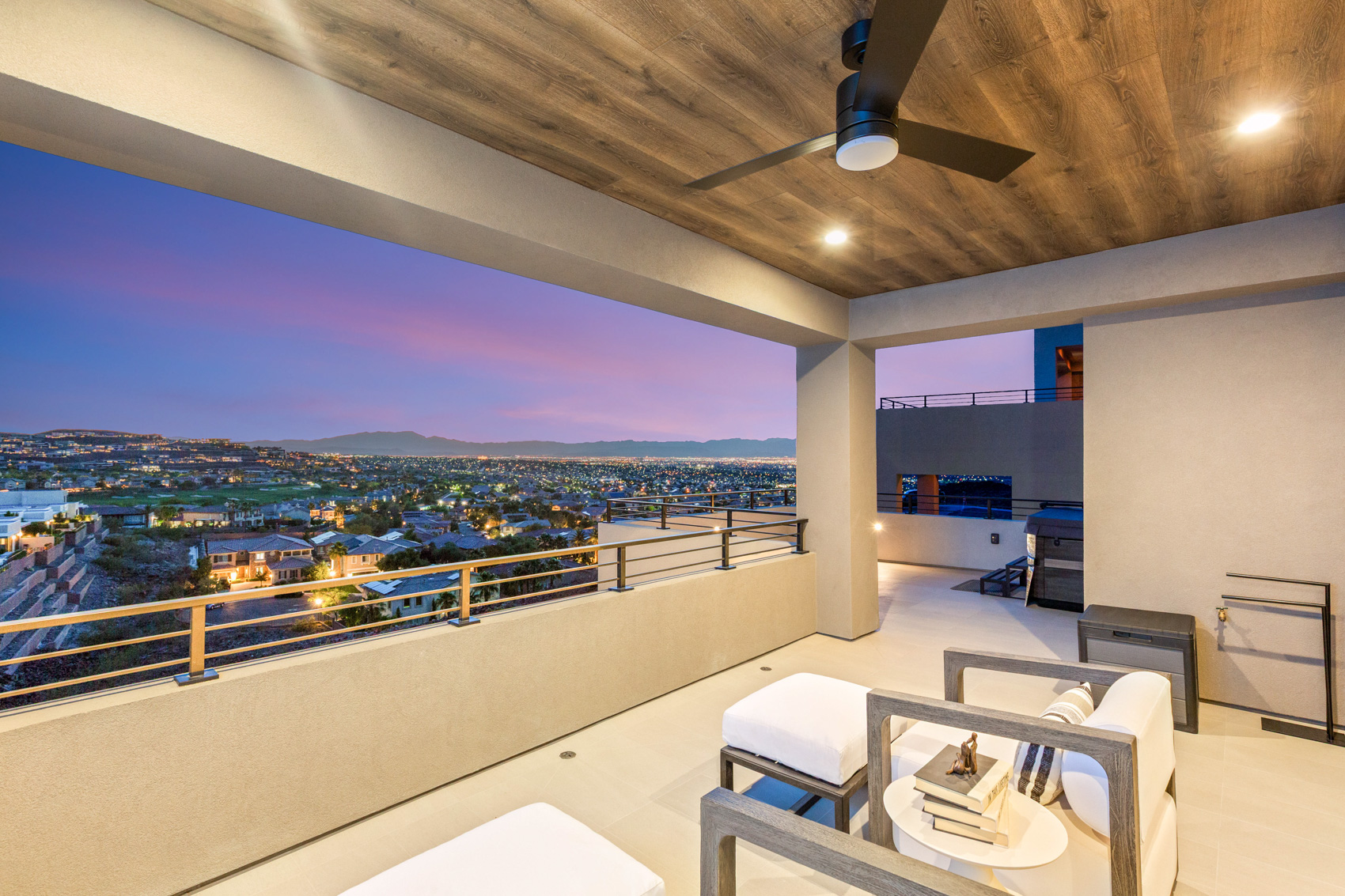 The main living area is anchored by soaring ceilings and rich walnut display cabinetry that bring a sense of depth and elegance to the space. Seamlessly connected to a state-of-the-art kitchen, the flow is ideal for both intimate gatherings and large-scale entertaining. The kitchen is outfitted with top-tier appliances, designer lighting, and expansive prep areas, blending form and function in perfect harmony. Each bedroom is its own private retreat, designed with comfort, privacy, and timeless style in mind. Custom closets provide ample storage and elegant organization, while the en-suite bathrooms are crafted with spa-like finishes, creating an atmosphere of everyday luxury. The primary suite is especially impressive, offering a peaceful sanctuary with direct balcony access and spectacular viewsāperfect for early morning coffees or winding down under the stars. A standout feature of the home is the dedicated fitness room, complete with a private sauna that elevates your wellness routine to a resort-level experience. Whether for a high-intensity workout or a relaxing sauna session, this space speaks to the thoughtful lifestyle integration throughout the property. At the top of the residence, a private rooftop deck awaitsāan expansive open-air lounge designed for unforgettable entertaining. From sunrise yoga sessions to starlit cocktail parties, the rooftop offers panoramic views of the glittering Las Vegas Strip, the rugged beauty of the surrounding mountains, and the endless desert sky. Itās an outdoor space unlike any other, blending serenity with spectacle. This residence is equipped with smart home technology, modern infrastructure, and an oversized three-car garage with ample storage. Every detail has been carefully curated to create a seamless living experience that caters to both elegance and ease. Located within one of Hendersonās most exclusive and tranquil communities, MacDonald Highlands offers world-class amenities including the private DragonRidge Country Club, championship golf, fine dining, tennis and pickleball courts, a state-of-the-art fitness center, and miles of scenic trails. The communityās 24-hour security and beautifully maintained grounds enhance the sense of privacy and prestige that define the neighborhood. 358 Solitude Peak is not just a homeāitās a refined expression of elevated desert living. With its thoughtful design, commanding views, and exceptional location, this is a rare opportunity to own a one-of-a-kind contemporary estate in one of Southern Nevadaās most coveted settings. Homes of this caliber seldom come to market. This is more than a residenceāitās a lifestyle, and it begins at Solitude Peak.