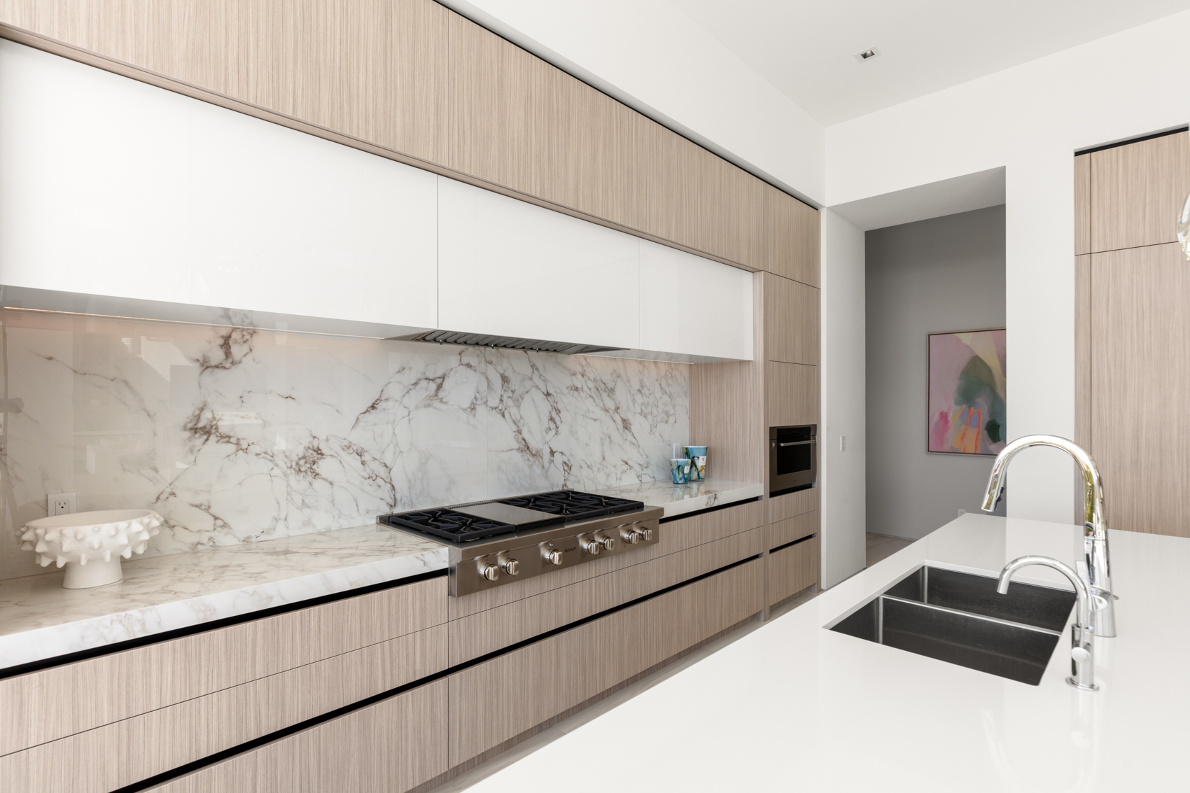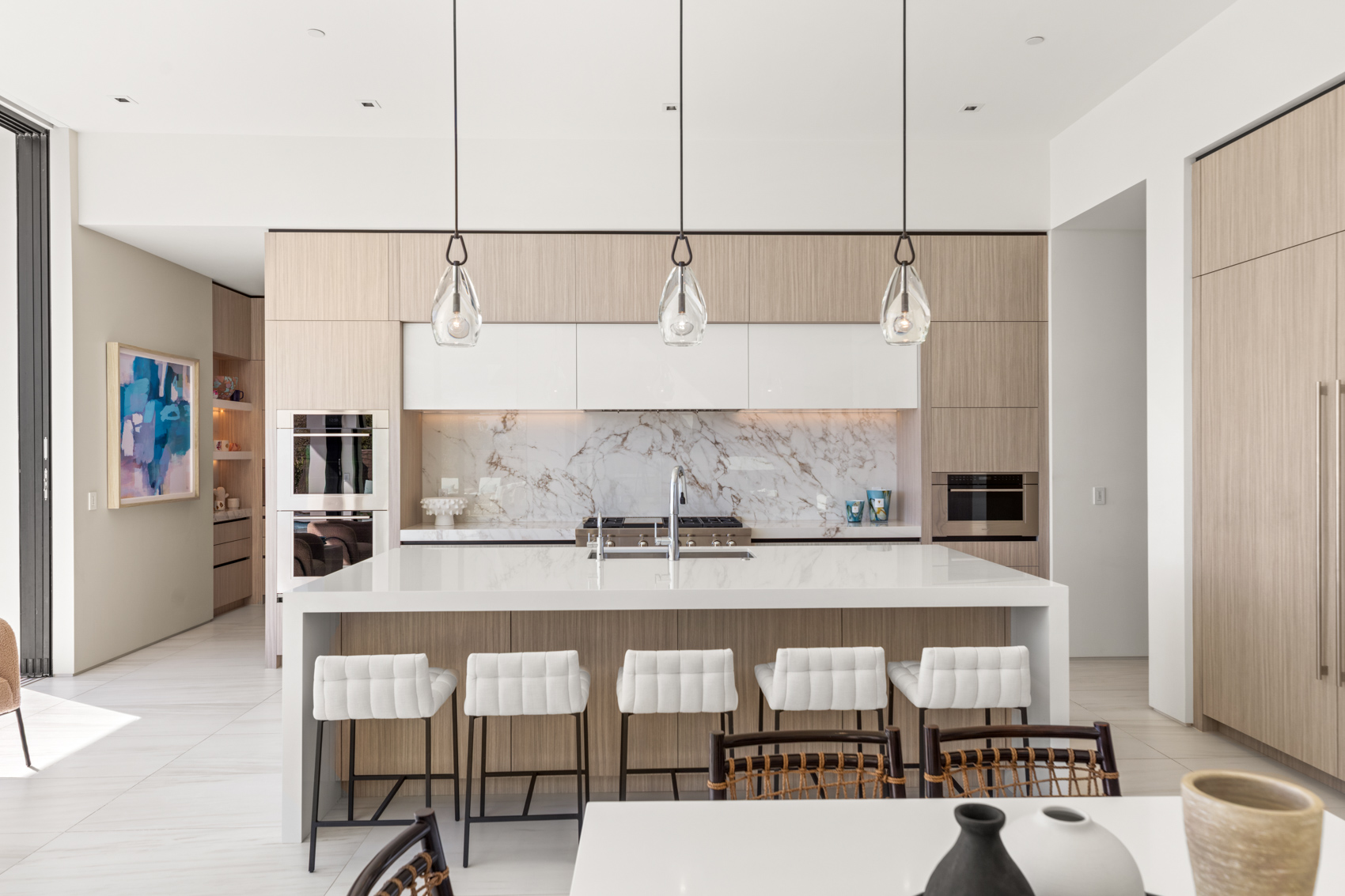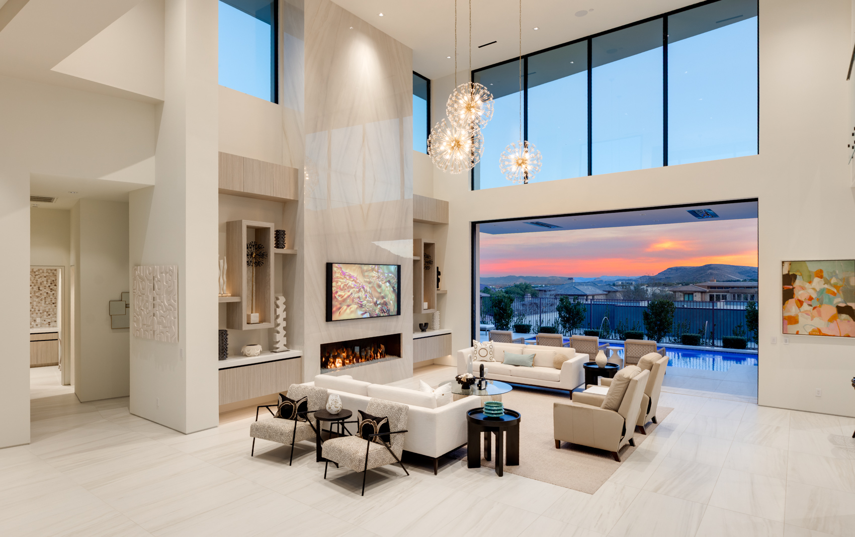 The open-concept layout is both refined and functional, anchored by a dramatic great room with a custom linear fireplace featuring an imported iron inset, controlled by app. Automated sliders on the main level disappear to extend living spaces outward, blending interior elegance with resort-style surroundings. Lutron home automation manages lighting and shades, and a private elevator adds everyday convenience.