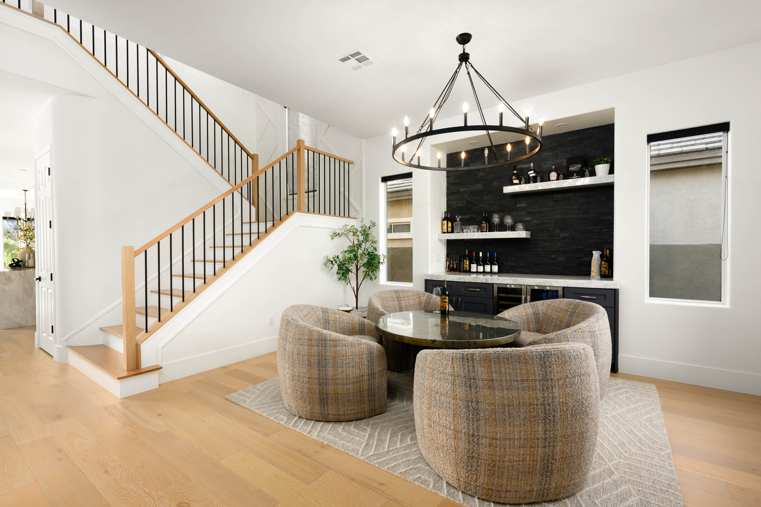 A private front courtyard sets the tone for the serene experience within, while a tranquil interior courtyard with a koi pond creates a peaceful architectural focal point. Inside, expansive sliders and abundant windows flood the open-concept living space with natural light, seamlessly connecting the indoors to the resort-style backyard.