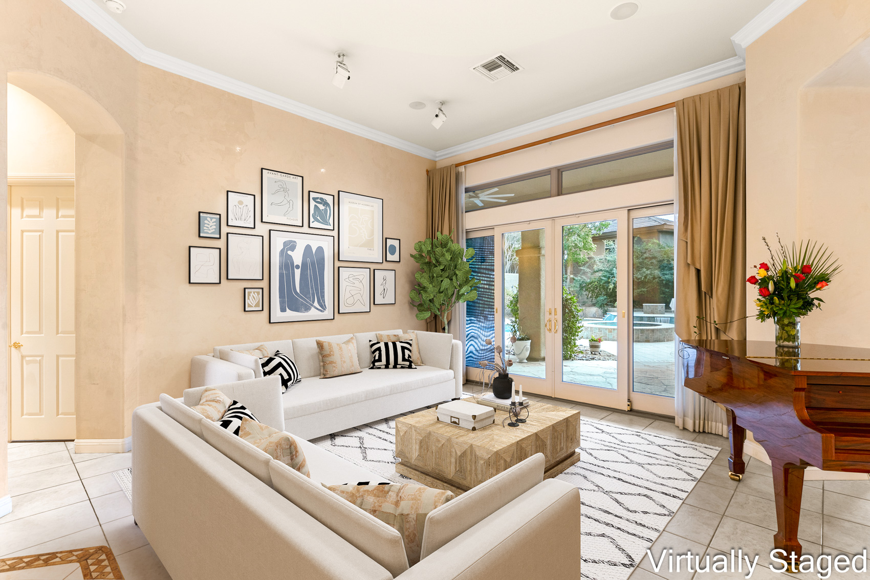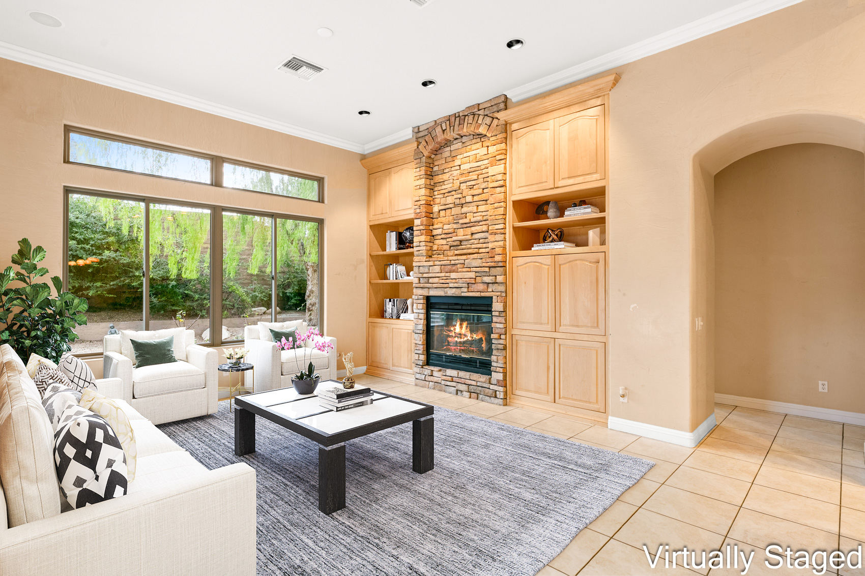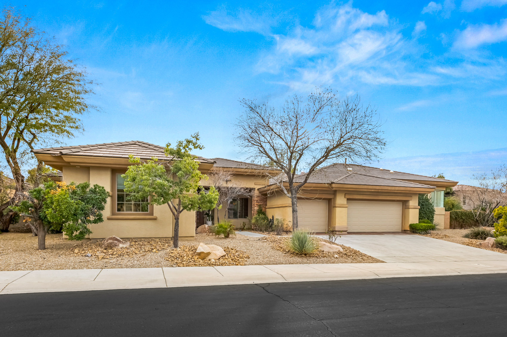 Welcome to this unique semi-custom Bel Canto single-story model in the prestigious Guard Gated Anthem Country Club! This home stands out with its additional bedrooms and bath on the second floor, enhancing the basic model. As you enter, you'll be welcomed by an open floor-plan with 12 ft ceilings, floor-to-ceiling windows, and glass sliders that blend indoor and outdoor spaces, filling the home with natural light.
