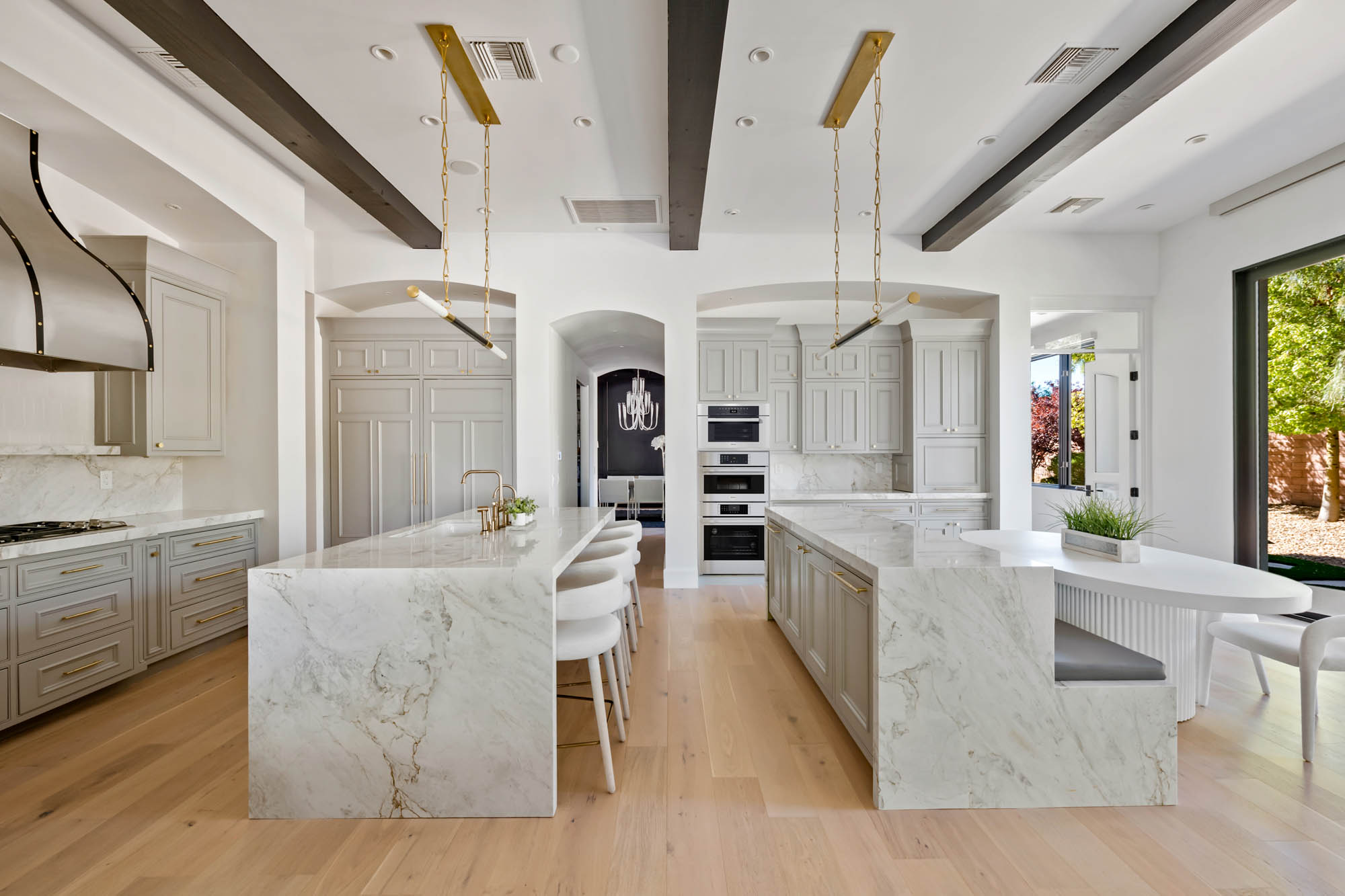 The heart of this home is undoubtedly the dream kitchen, featuring double islands and a banquet area that will delight even the most discerning chefs. Dolomite countertops, a butler pantry, and a generously sized pantry add to the kitchen's allure. With six bedrooms in total, including a main level primary suite with a separate sitting room and a spa-like bath, this home provides both space and comfort.