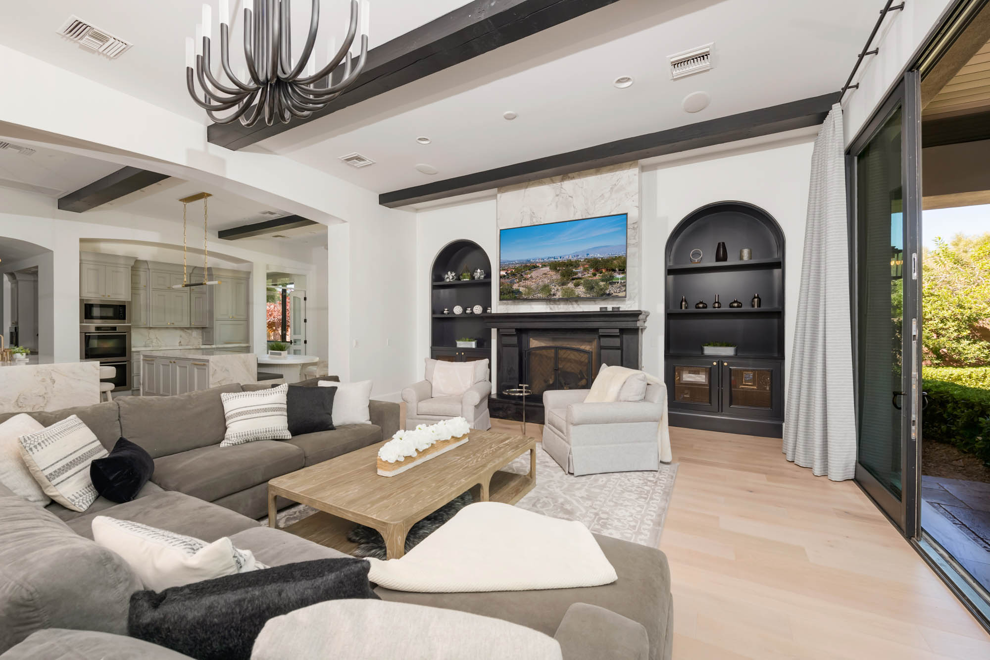 Upstairs, you'll discover four generously sized en suite guest bedrooms, each designed with the utmost attention to detail. The large loft with a bar provides the perfect space for a den or playroom, catering to every need. A separate guest house serves as the sixth bedroom, offering privacy and convenience. This estate sits on an expansive cul-de-sac lot, with an inviting pool and ample yard area to enjoy your own private oasis outdoors. A pool bath ensures convenience, while the sunken built-in BBQ and elevated pool create a dynamic landscape that is both interesting and beautiful. This property truly encapsulates the ambiance and warmth of a true home. The perfect blend of luxury and comfort and a place where timeless beauty and modern living converge, 10 Drifting Shadow is perfect place to call home.