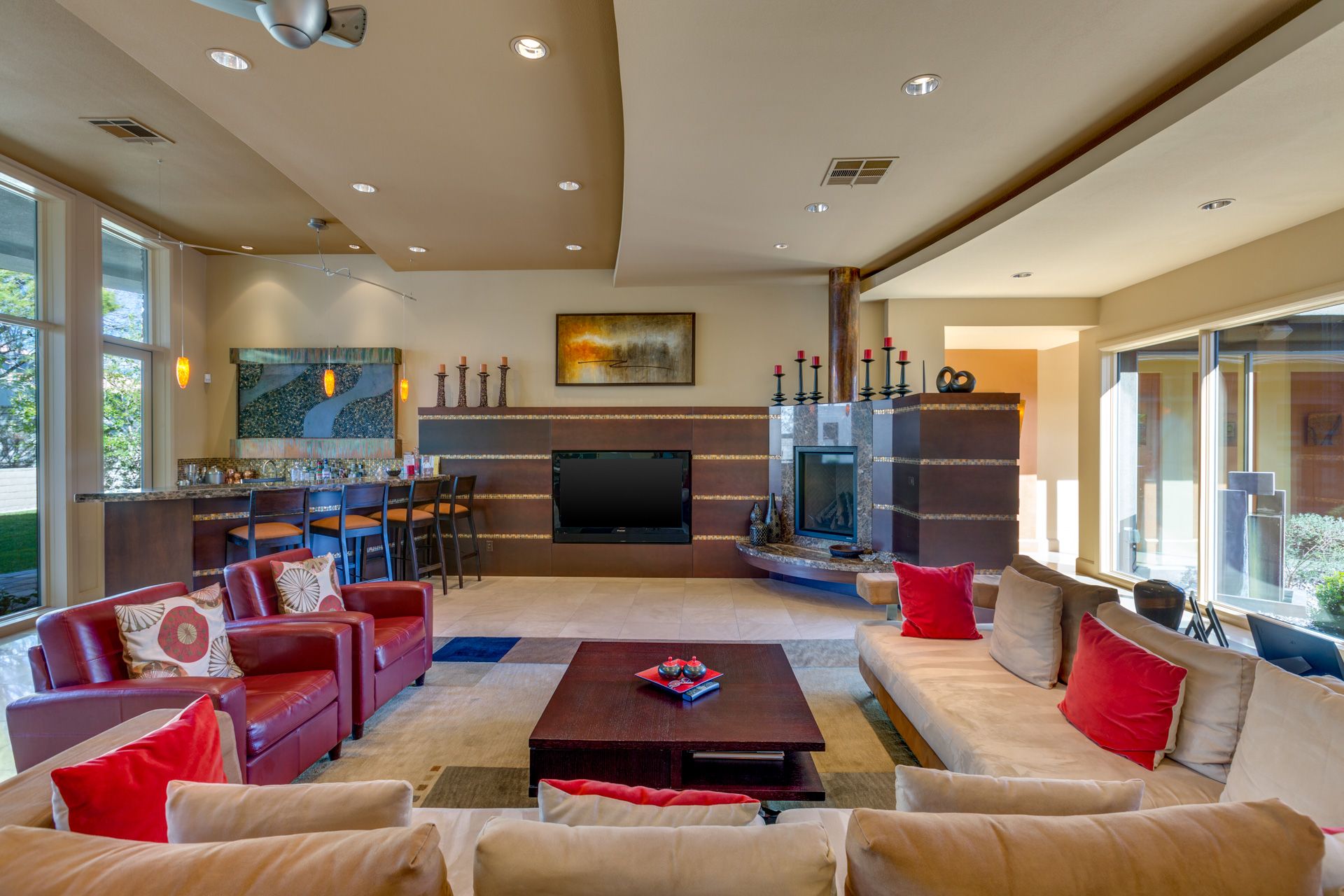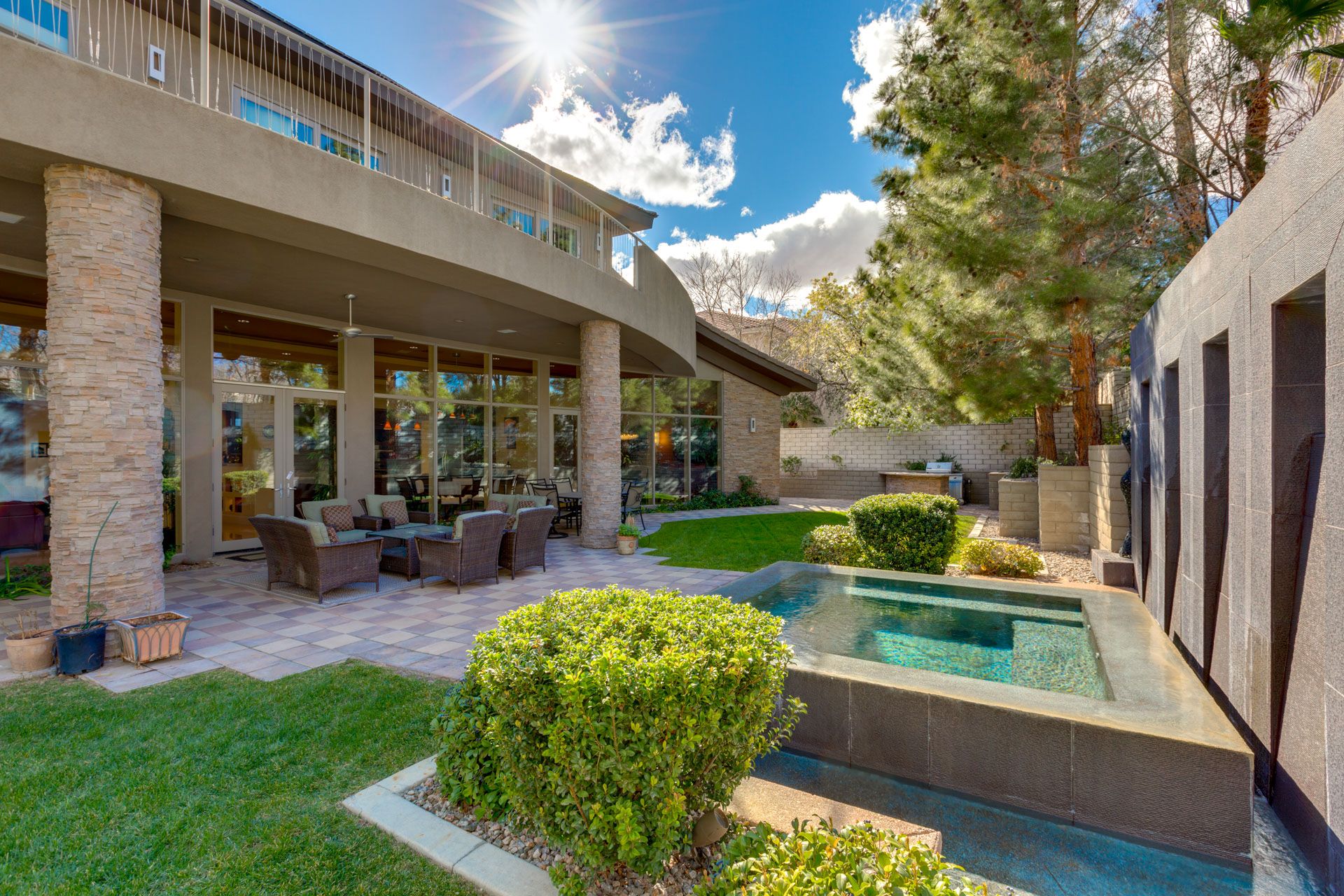 Stunning contemporary custom home in grd gated Regency at The Lakes!Close to RR Mnts and dwntwn Summerlin,inspired by Frank Lloyd Wright architecture,professionally designed and furnished,this residence is a true trophy property.