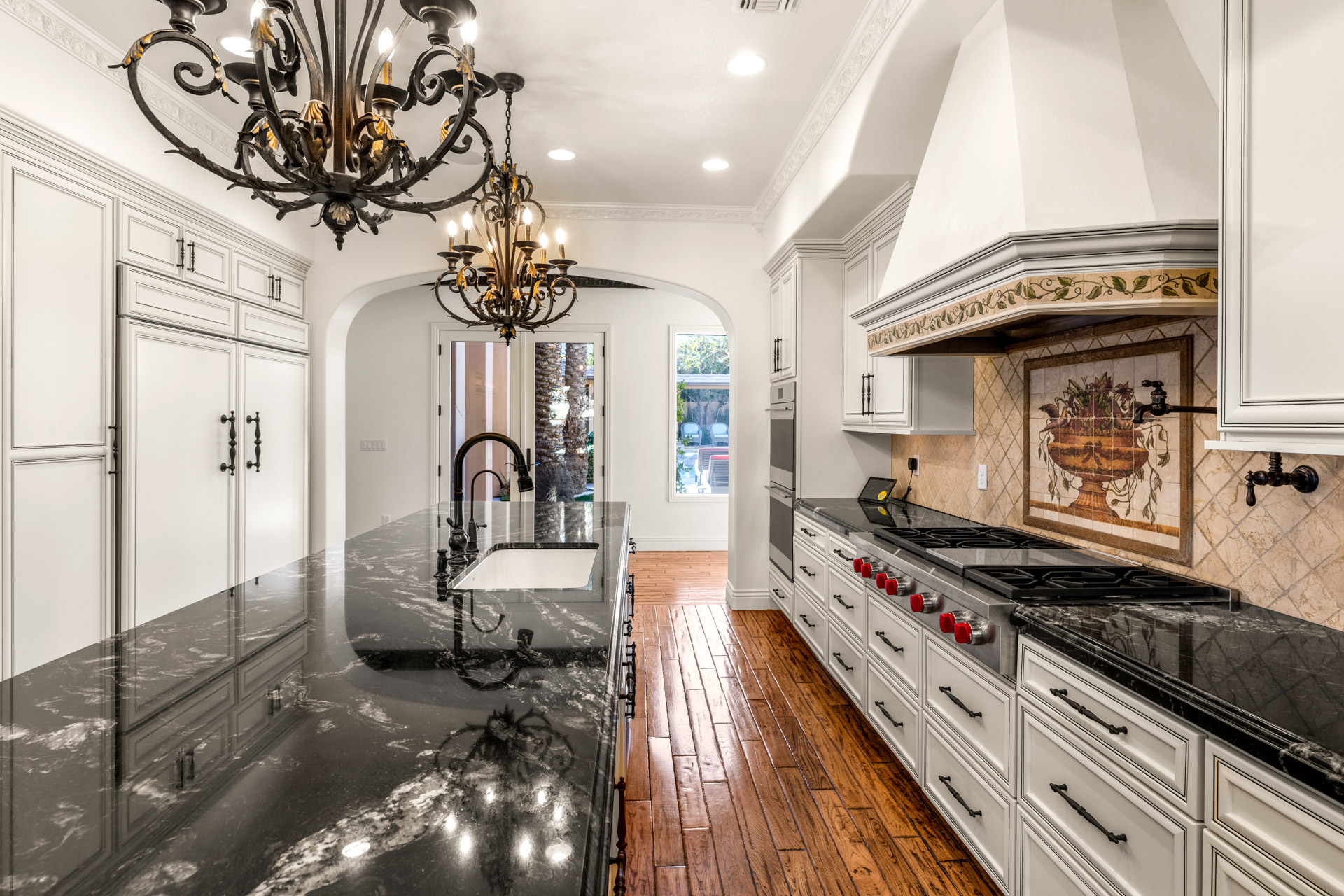 A resort style estate awaits you. Boasting five bedrooms and seven bathrooms, with two separate casitas having their own entrance from the pool area, this home has a place for everyone. The Tuscan theme is carried through by way of the tile, molding, cabinetry, and other fine touches. Every room whispers serenity. Every space is unique.