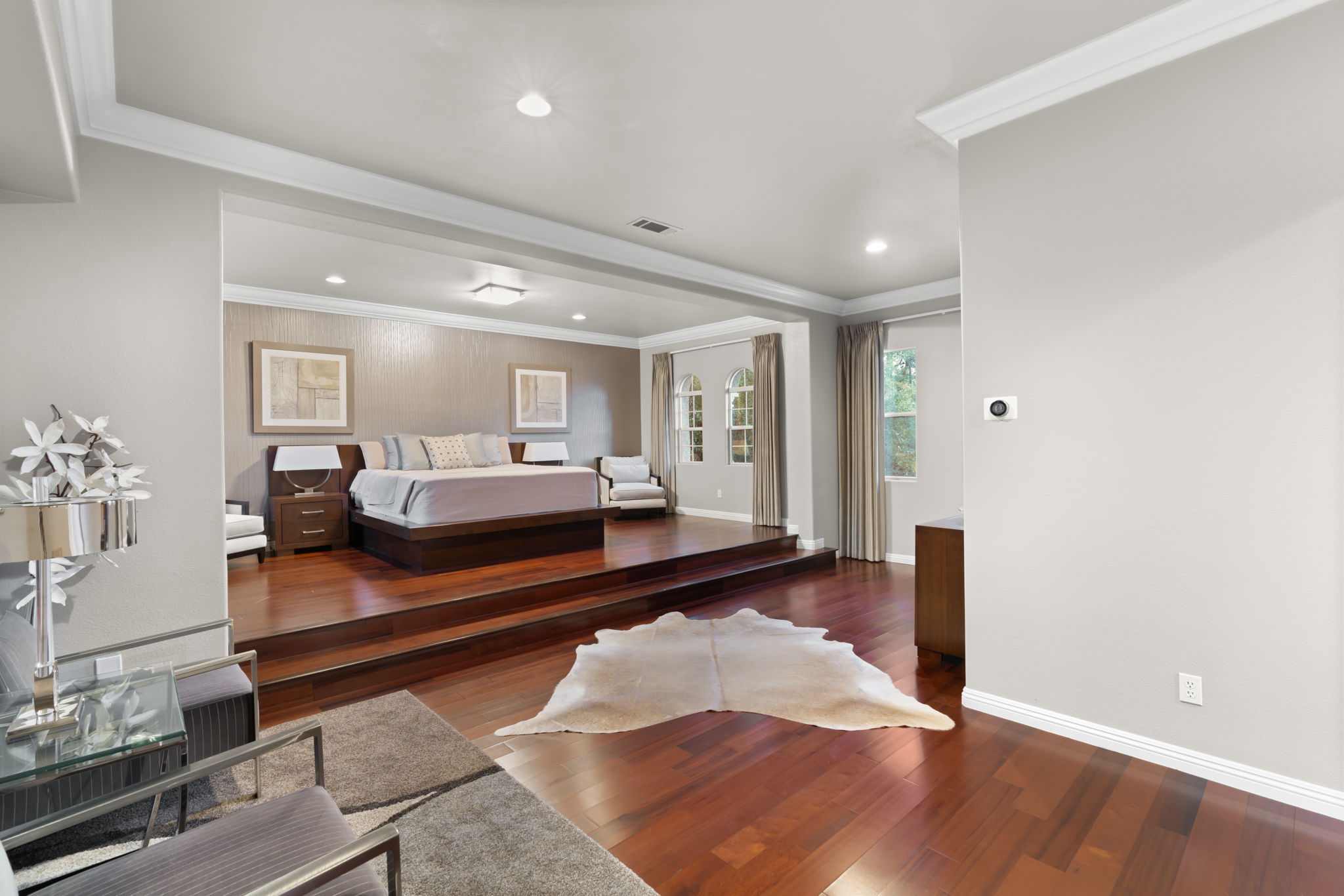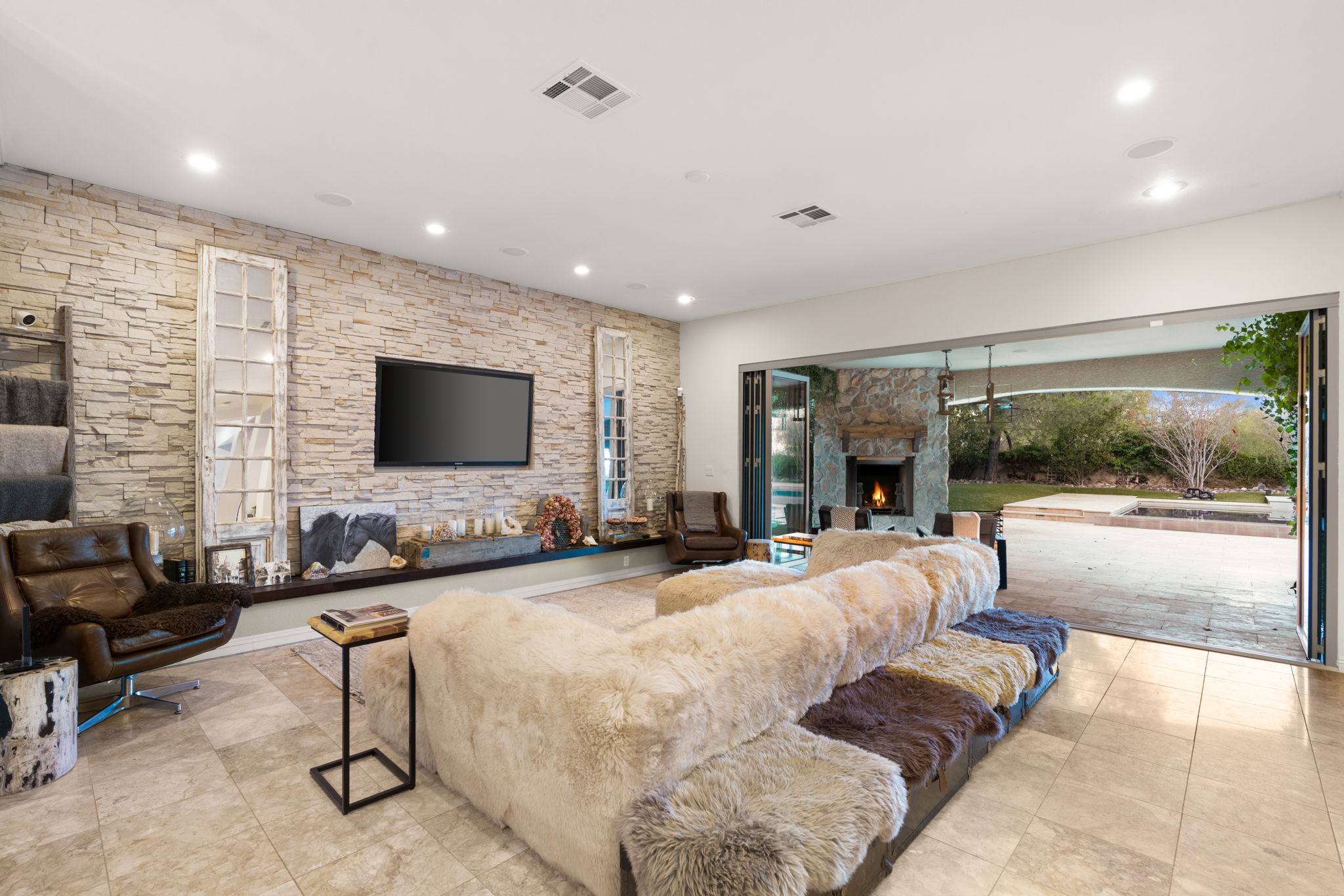 As you step through the entrance, you are greeted by a Tuscan-inspired courtyard, where a cozy fireplace and a bubbling fountain create a serene ambiance. Surrounded by lush greenery and vibrant blooms, this outdoor space offers a warm welcome and sets the tone for the homeās sophisticated style. The main living areas are designed to embrace natural light and effortless flow. Pocketing and accordion slider doors blur the lines between indoors and outdoors, opening to a private backyard oasis.