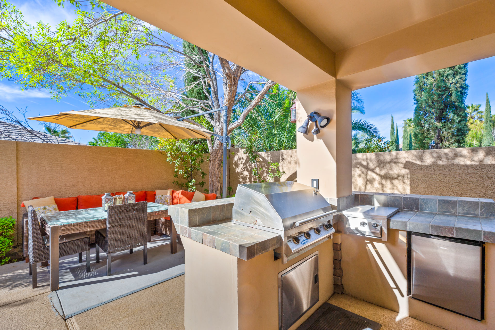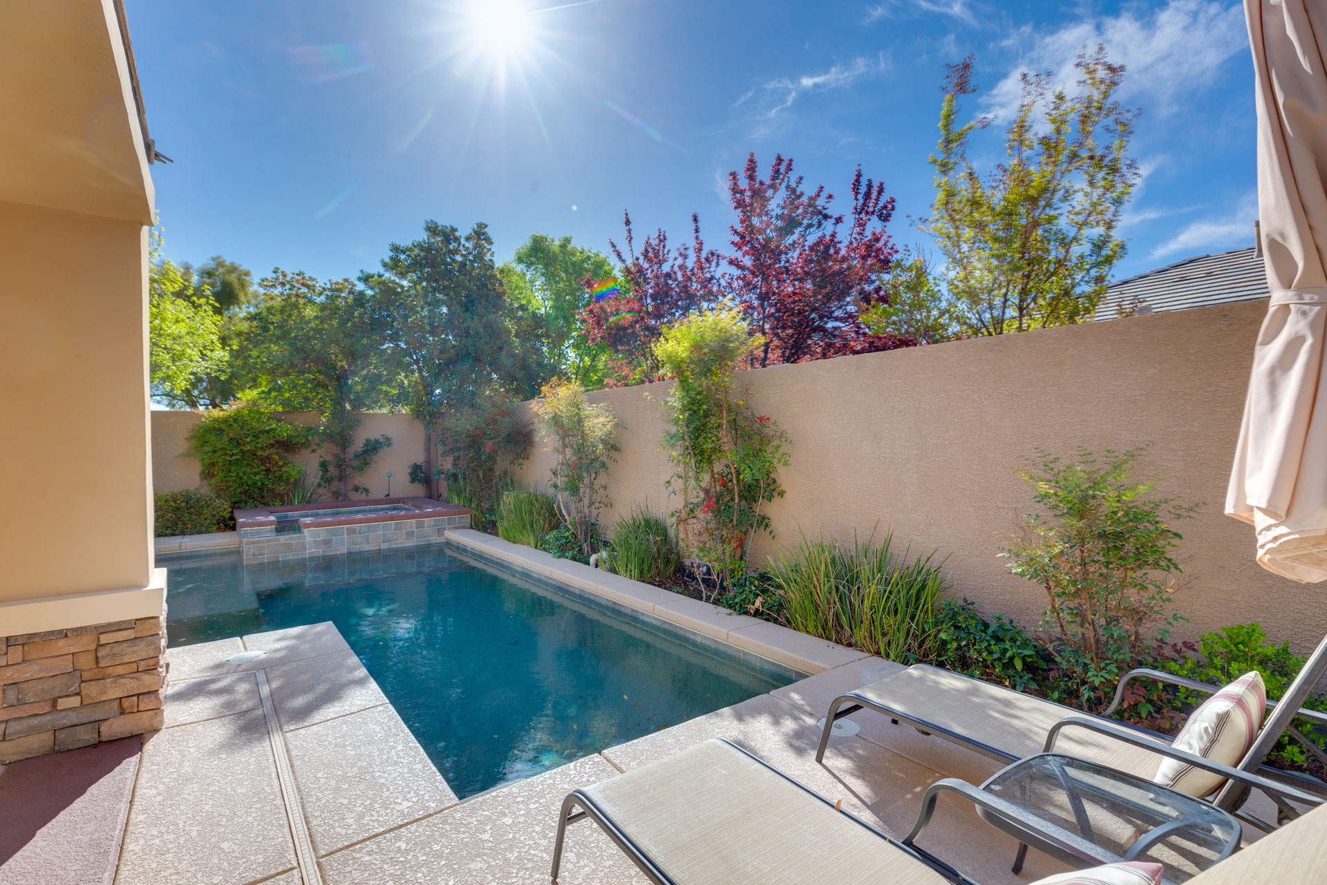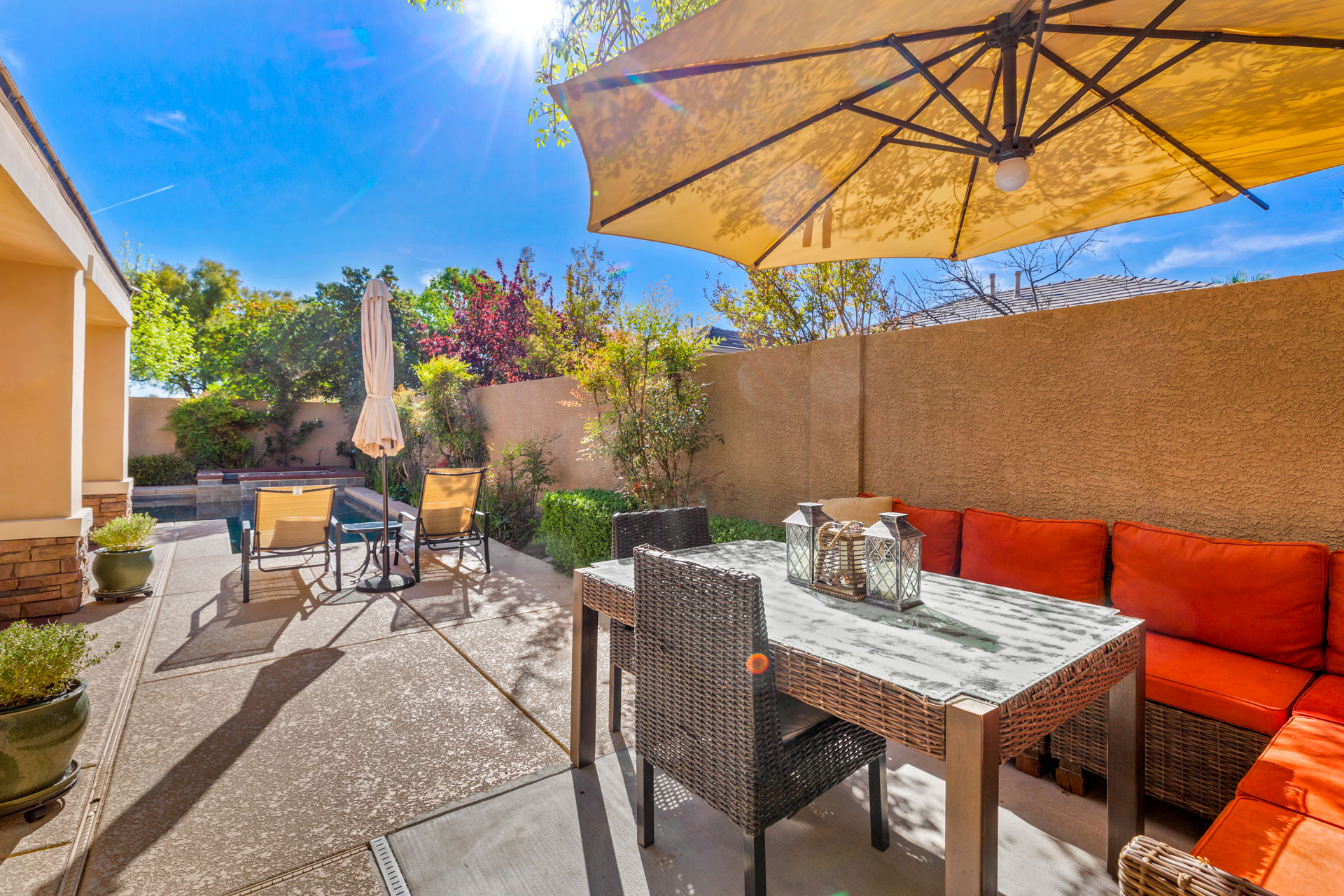 Step outside to the tranquil oasis with a sparkling pool and spa, a covered patio and a built-in bbq area. Some of the benefits of living in The Gardens is a multi-sports facility park, community center, and plenty of retail and conveniences just steps away.