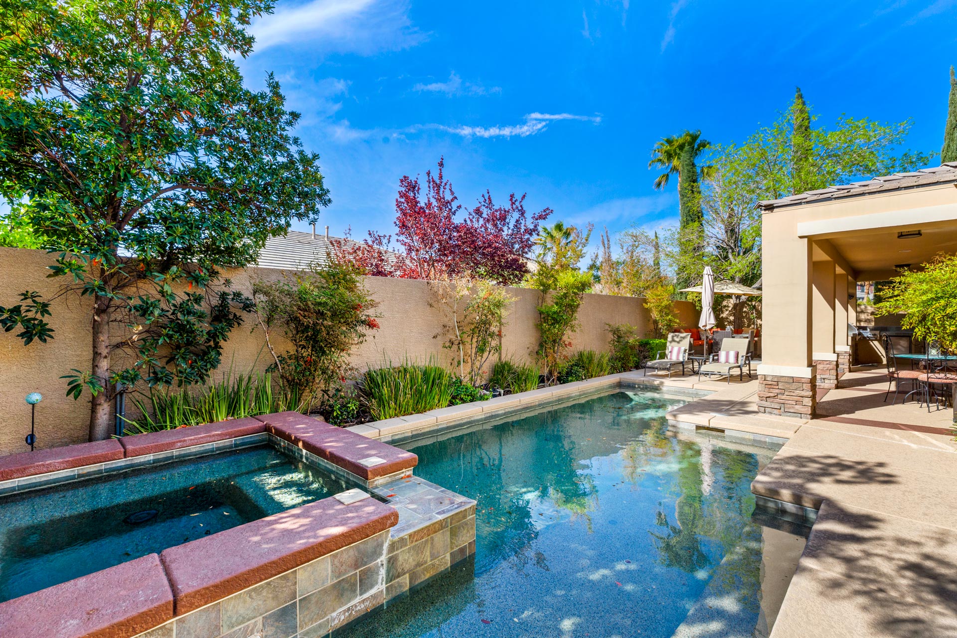 This beautiful single-story home is located in the prestigious gated community of the Gardens in Summerlin. A stunning home that exceeds all expectations.