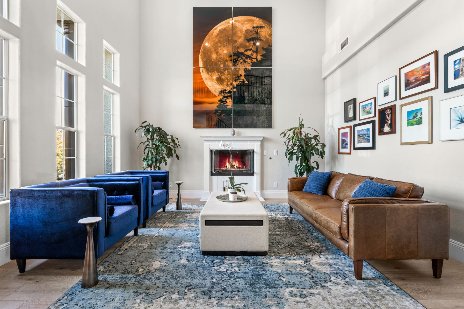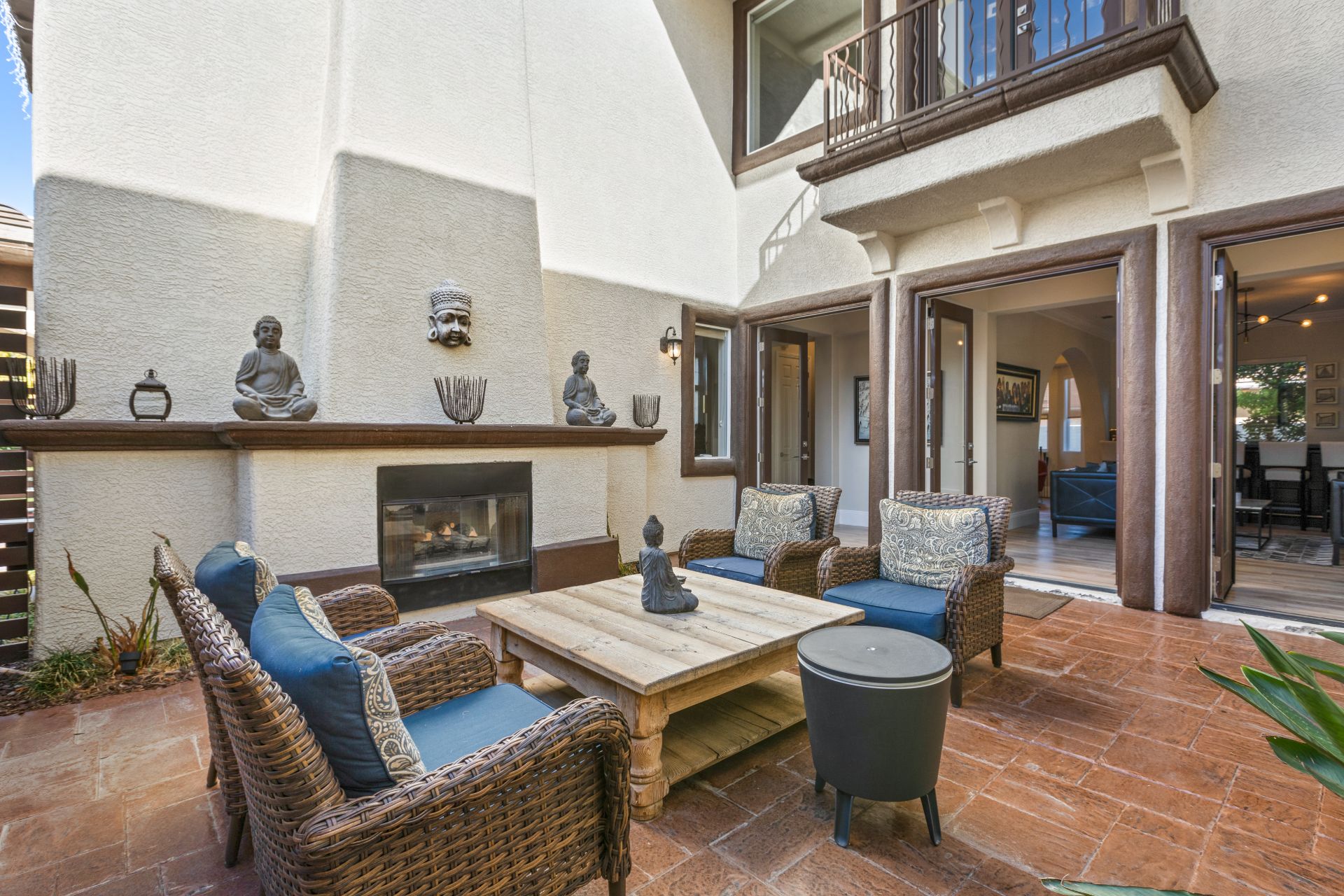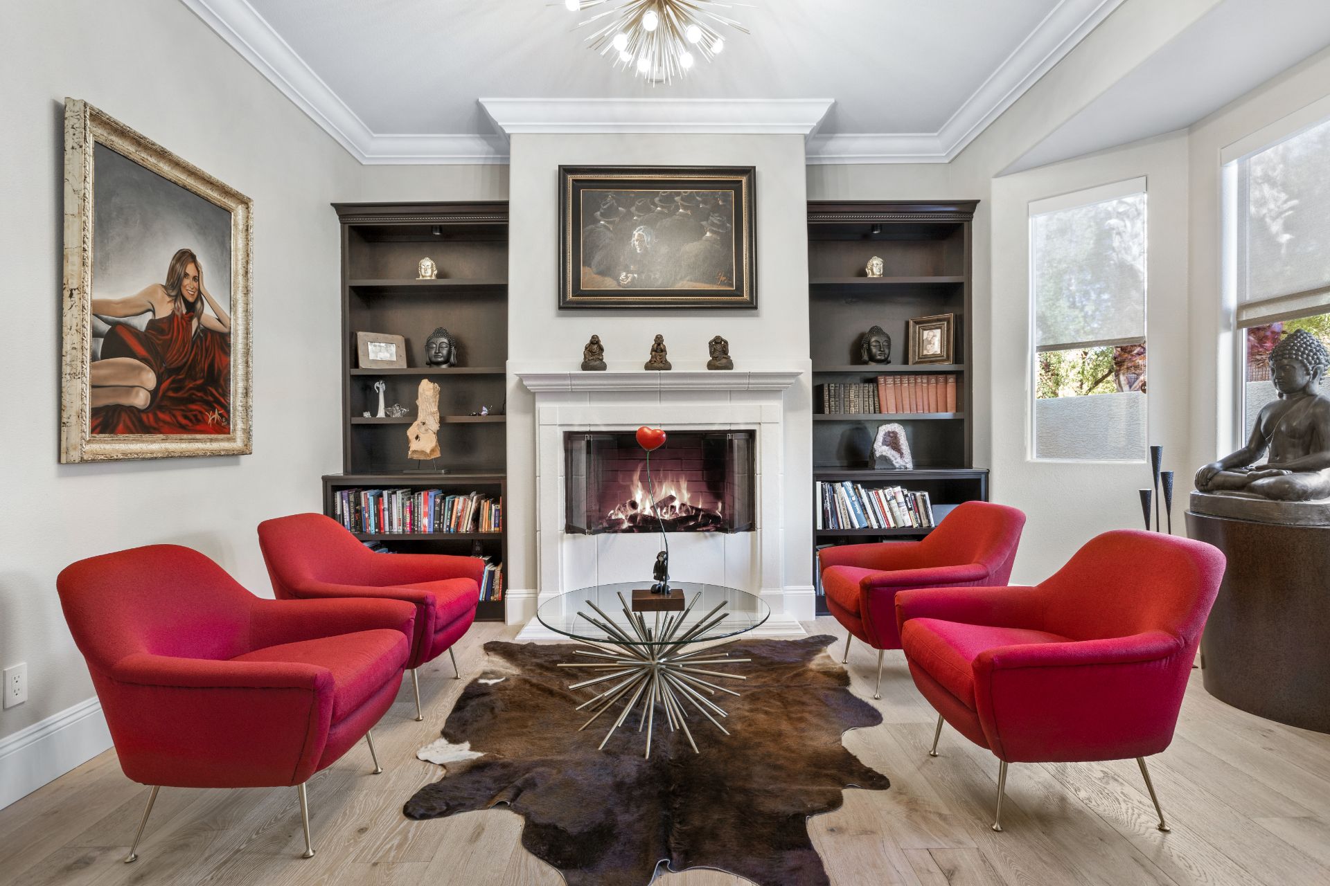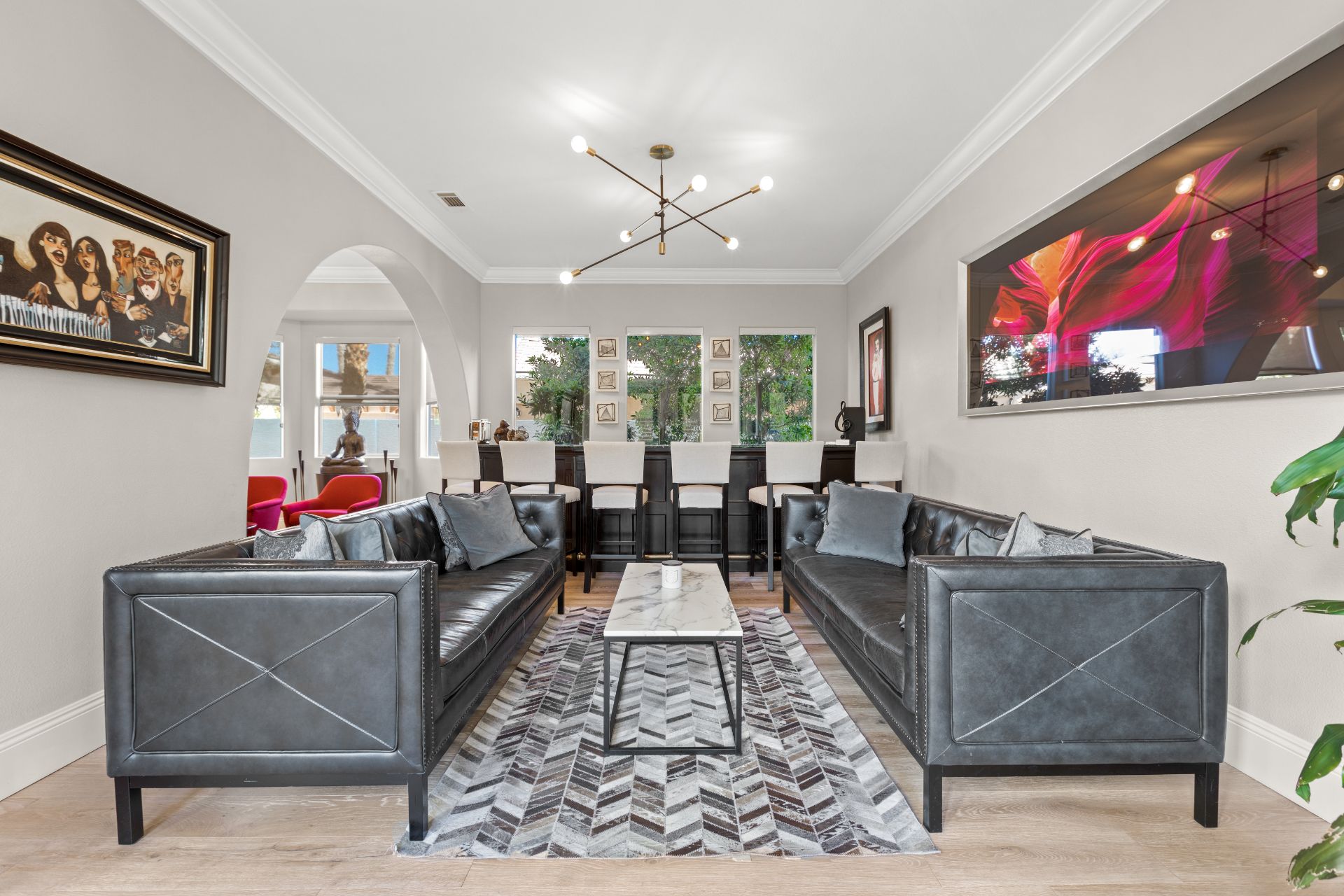A gorgeous rock waterfall pool is the focal point of the rear yard, and there are views not only of the golf course but of distant mountains and The Strip. This home boasts a luxurious master suite with dual sets of French doors and Juliet balconies to capture cooling breezes, as well as a master bath with a new Lydia white marble tub and steam shower and quartz countertops, and two custom closets for all your grooming and clothing needs. A private casita occupies space above a single garage space, with access via a private outdoor staircase. The home features five bedrooms, five baths, three garage spaces, six fireplaces, a temperature-controlled wine storage room, a comfortable bar with pull-up stool seating, and multiple enclosed patios.