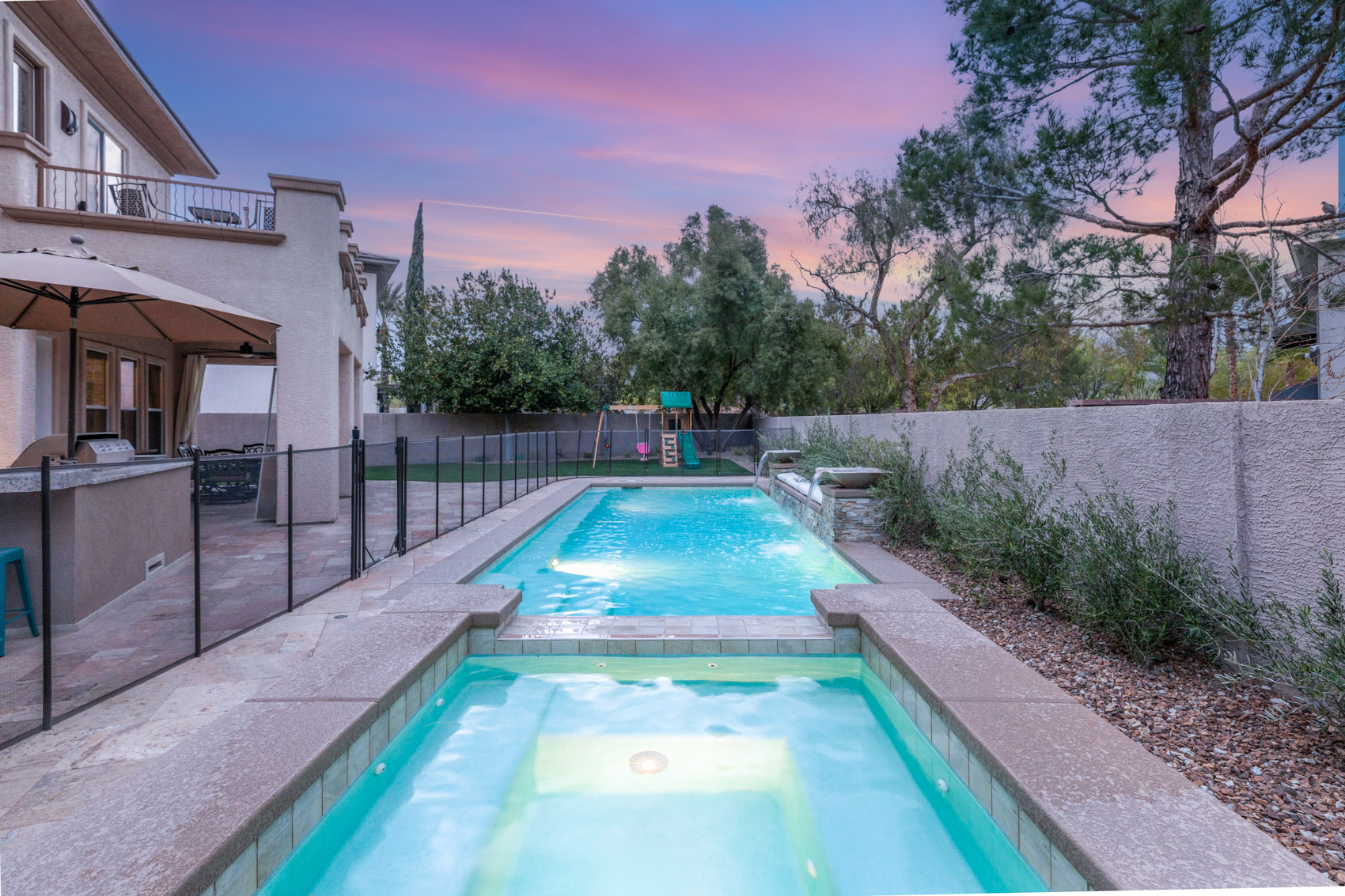 The heart of the home is the stunning gourmet kitchen, featuring an oversized walk-in pantry, premium appliances, and an abundance of counter space. Accordion sliders open to a breathtaking backyard oasis, where a heated pool, spa, and tranquil water features create a serene escape. Enjoy al fresco dining at the built-in BBQ island or unwind in the shaded private patio surrounded by lush, mature landscaping. The main level includes a spacious bedroom with an en-suite bath, ideal for guests or multi-generational living. A temperature-controlled wine closet adds a touch of sophistication, perfect for the avid collector. Upstairs, the lavish primary suite is a private retreat, boasting a generous balcony, dual walk-in closets, and an expansive spa-like bathroom with separate vanities and a soaking tub. The Palisades is an exclusive enclave within Summerlin, known for its tree-lined streets, custom estates, and unparalleled convenience to top-tier shopping, dining, and outdoor recreation. Homes of this caliber are a rare opportunity in this sought-after communityādonāt miss your chance to own this extraordinary residence.