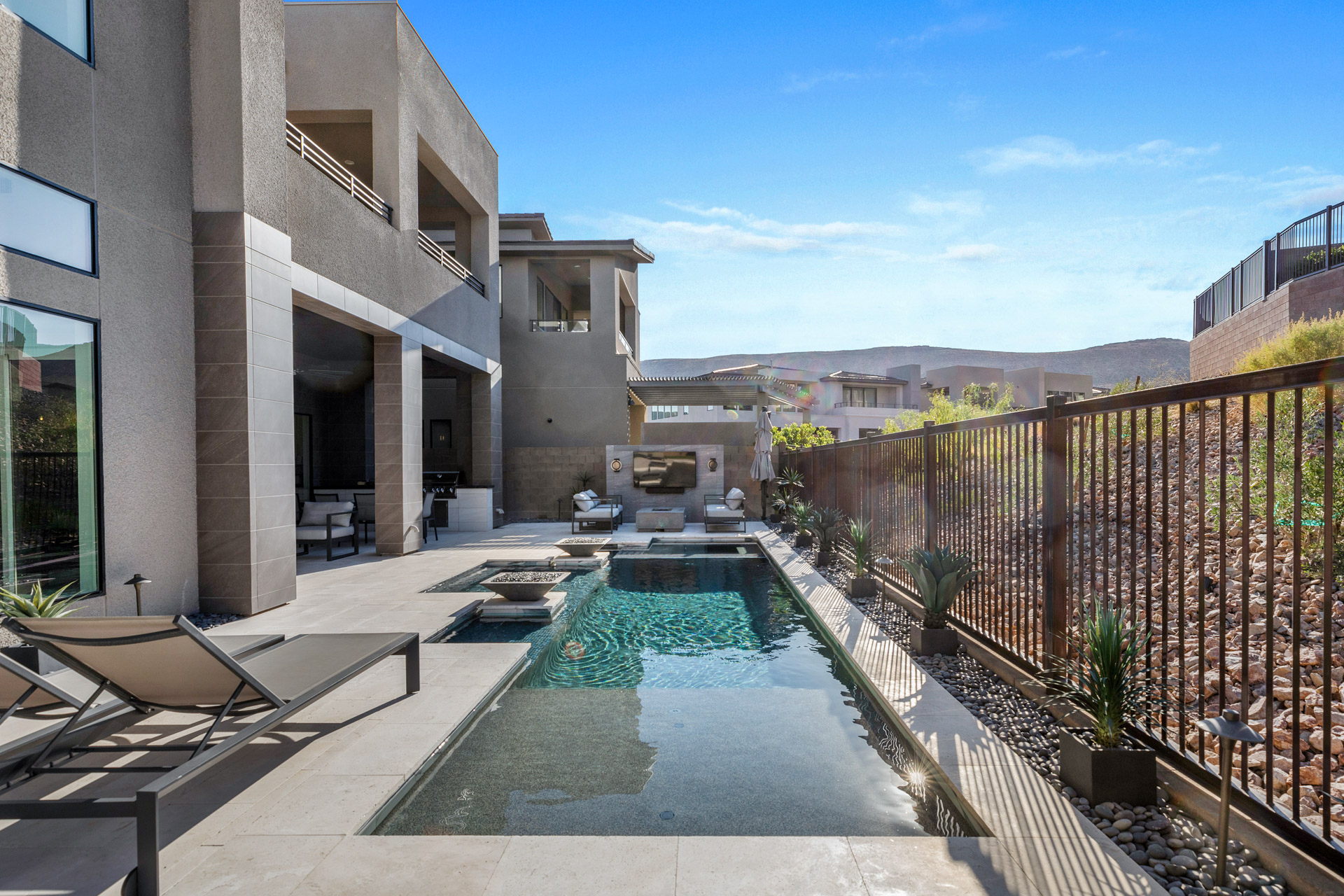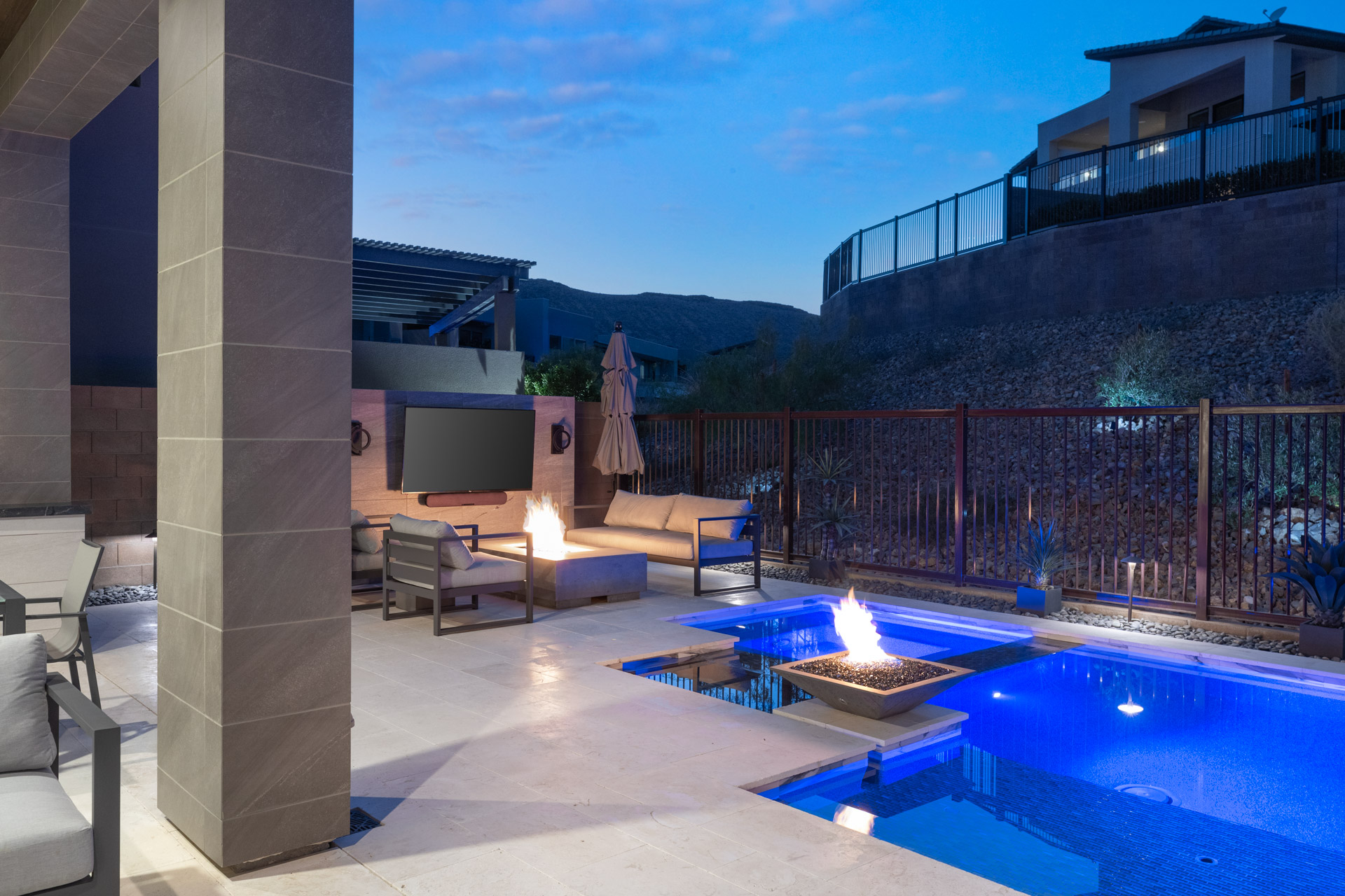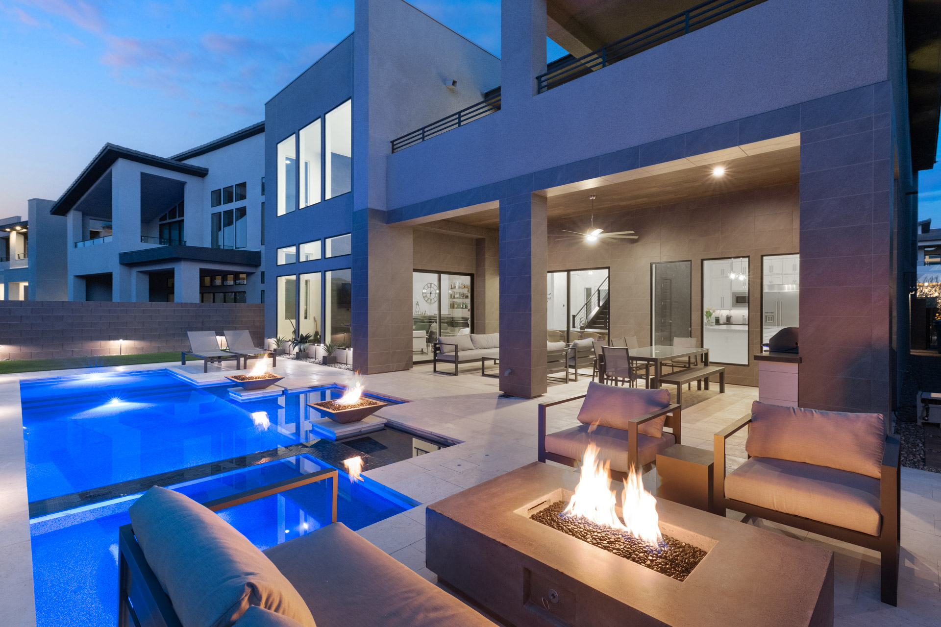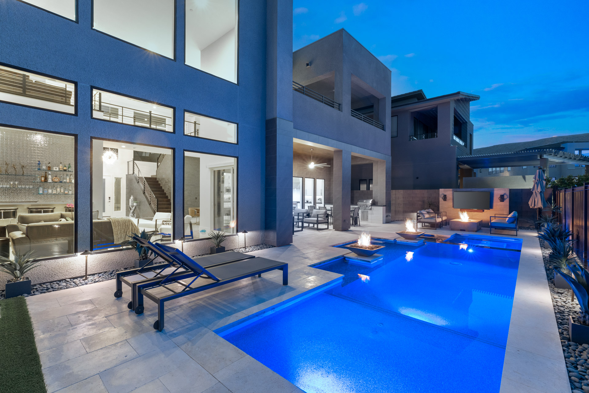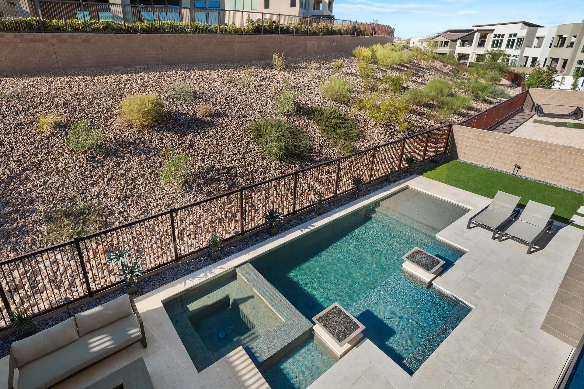 Inspired luxury sets the tone in this stunning home in located in the desirable guard-gated Mesa Ridge community in Summerlin. Open floor concept in the main living spaces includes 23ā vaulted ceilings providing beautiful natural light throughout. The polished tile floors pair beautifully with the stone and tile accents adding to the spacious feel of this superlative home.