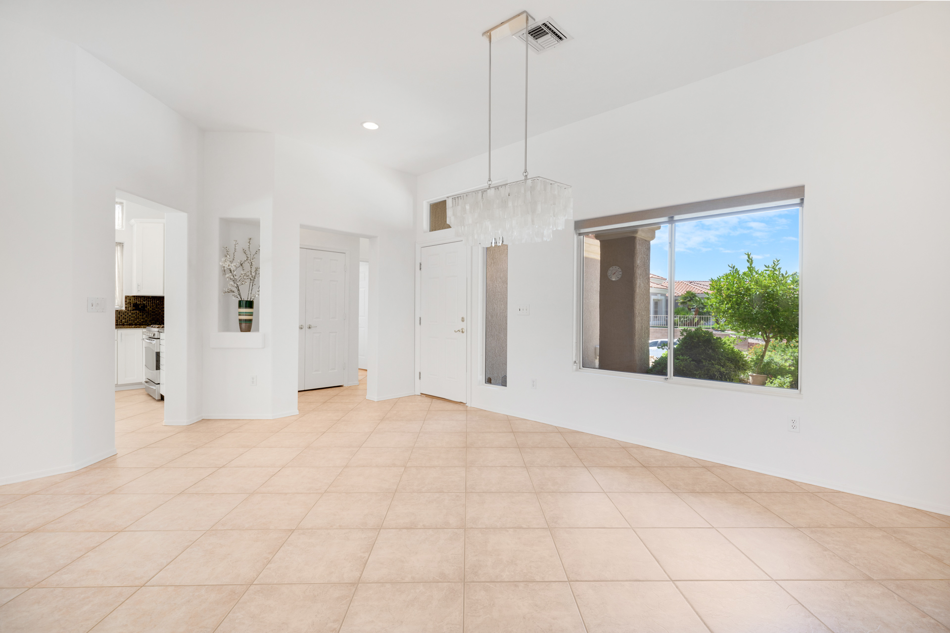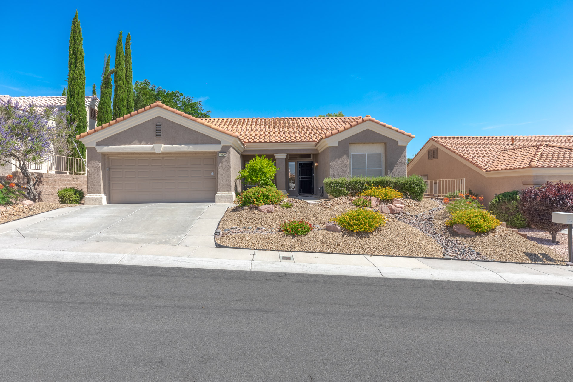 Lovely home in Sun City Summerlin located in higher elevation! Single story home features large living room with 2 nicely sized bedrooms with customized closets with mirrored doors, 2 bathrooms, bay window, new ceiling fans in each room, 18" tile floors and hardwood floors.