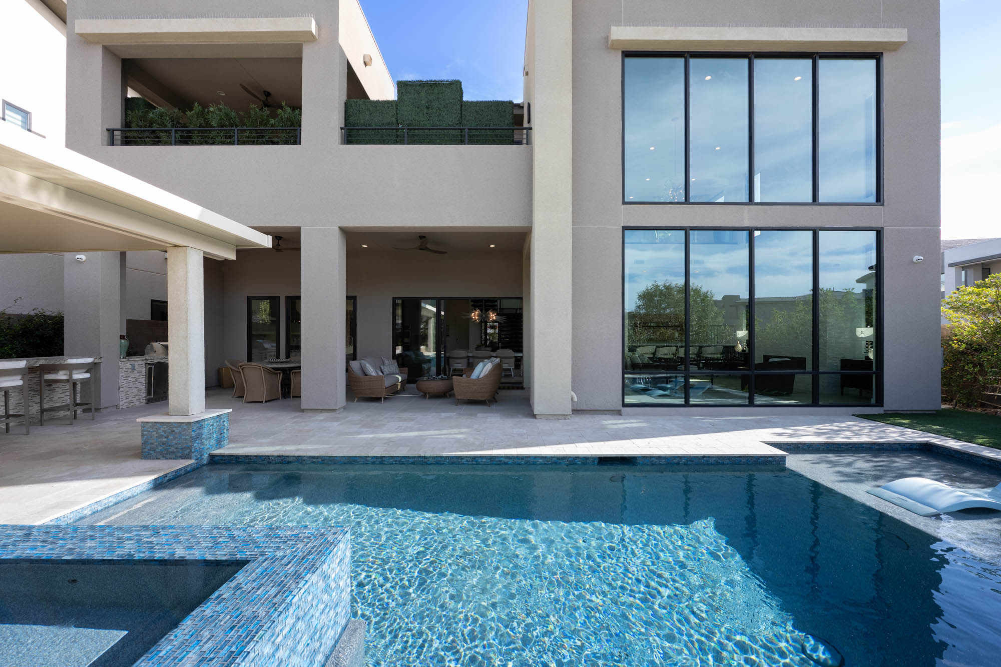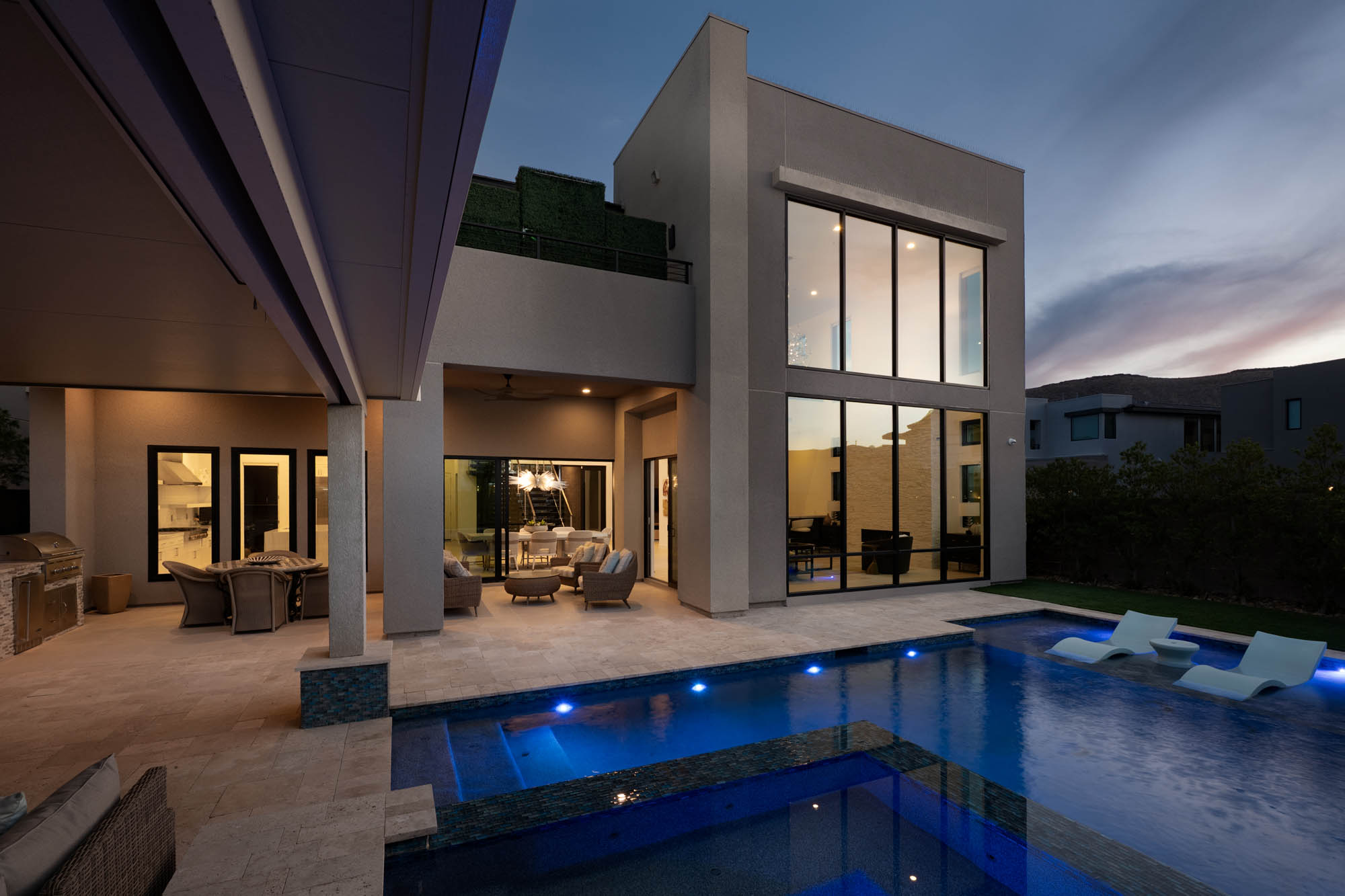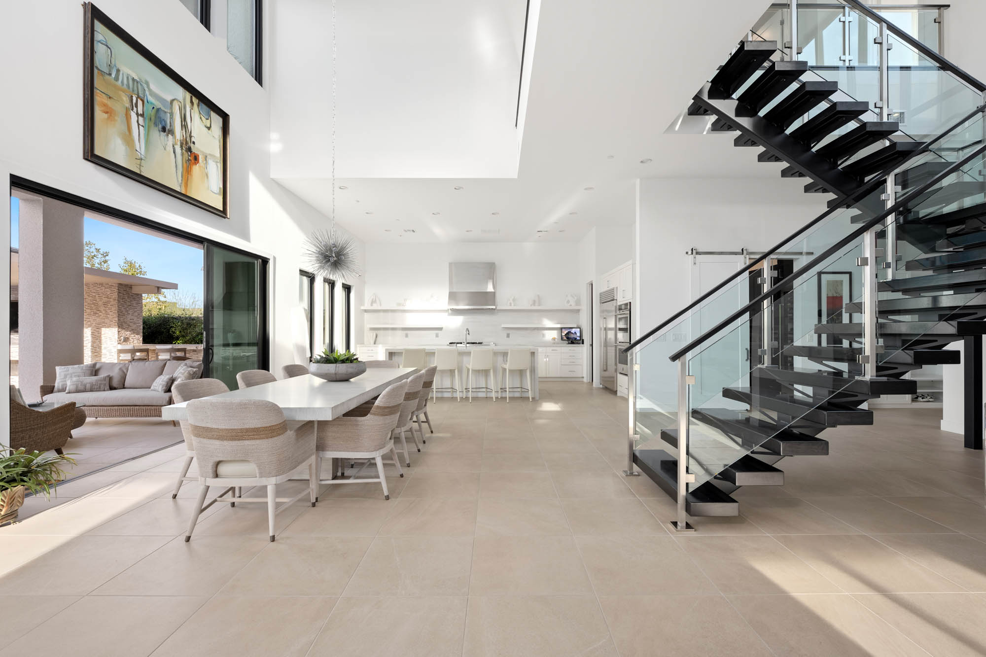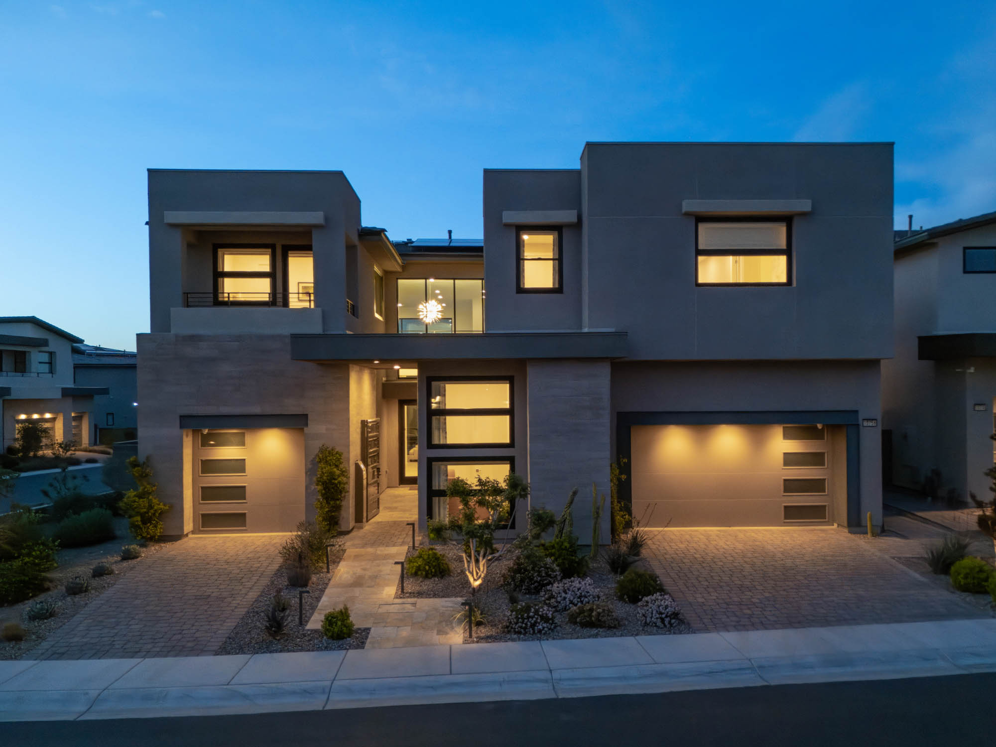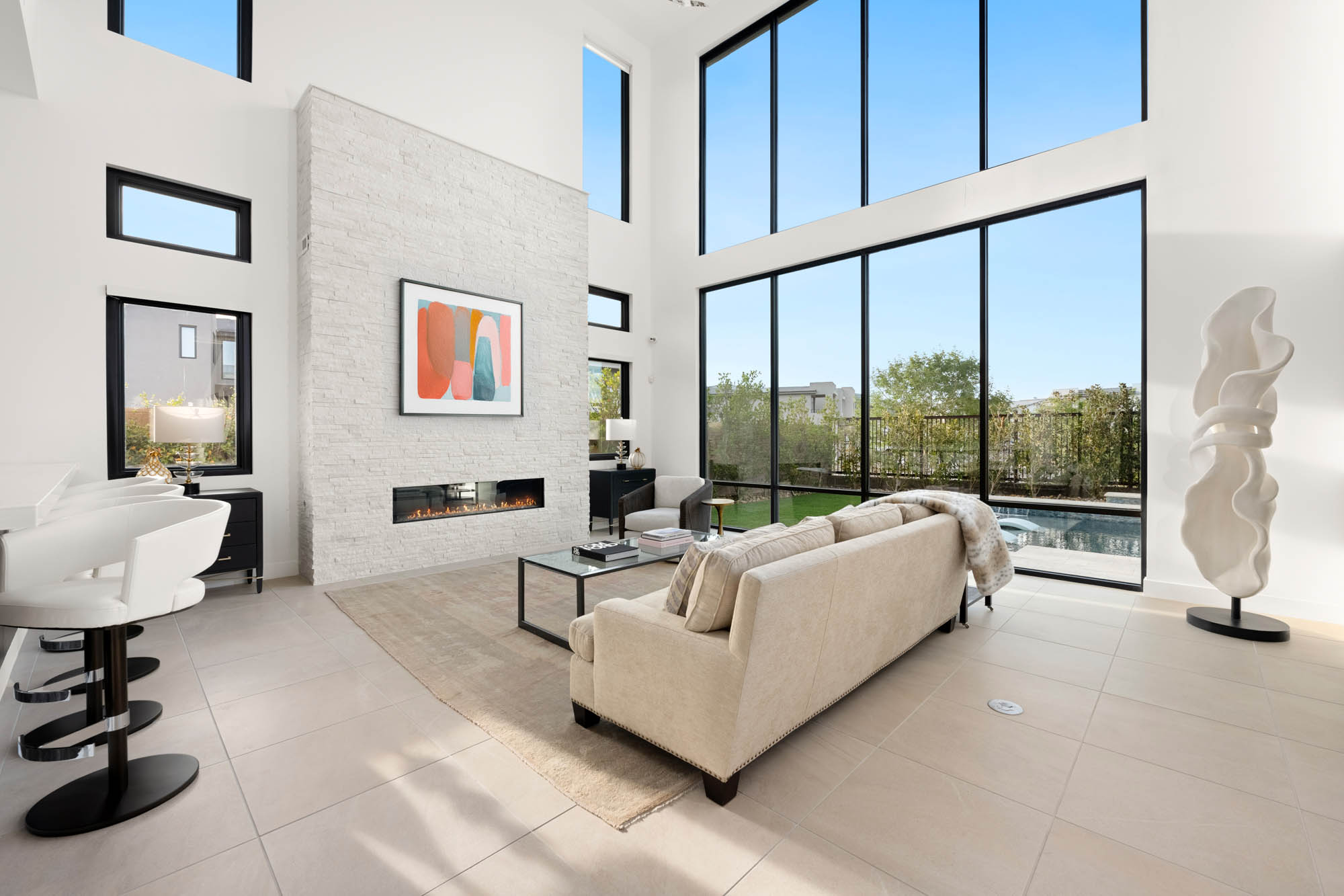 10756 Steel Ridge an exceptional modern residence nestled in the prestigious Mesa Ridge community of Summerlin. This stunning home showcases sleek architectural design paired with high-end designer finishes throughout. Inside, soaring ceilings and an open-concept floor plan create a sense of spacious luxury, highlighted by a dramatic floating staircase.