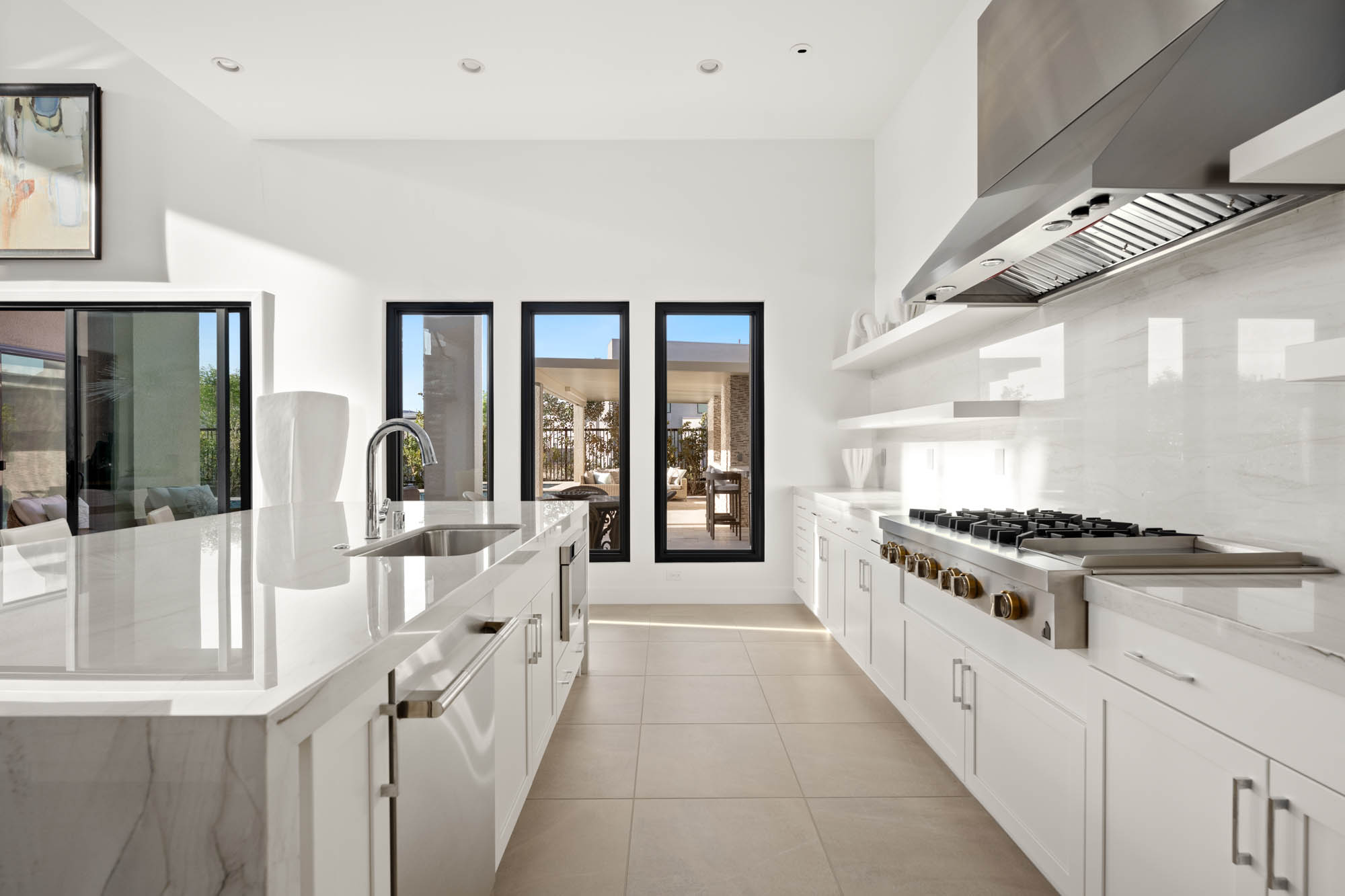 This residence offers 4 ensuite bedrooms. 3 are located within the main home, while the 4th is a detached casita off the courtyard. The gourmet kitchen is complete with premium appliances, sleek cabinetry, and a spacious islandācomplemented by a secondary prep kitchen. The primary suite offers a private retreat within the home, featuring a separate sitting area, custom built-ins, and a spa-like bath with luxurious finishes designed for ultimate relaxation. The elegance continues outdoors with a resort-style backyard featuring a sparkling pool, spa, fully equipped outdoor kitchen & a covered pavilion perfect for relaxing or hosting.