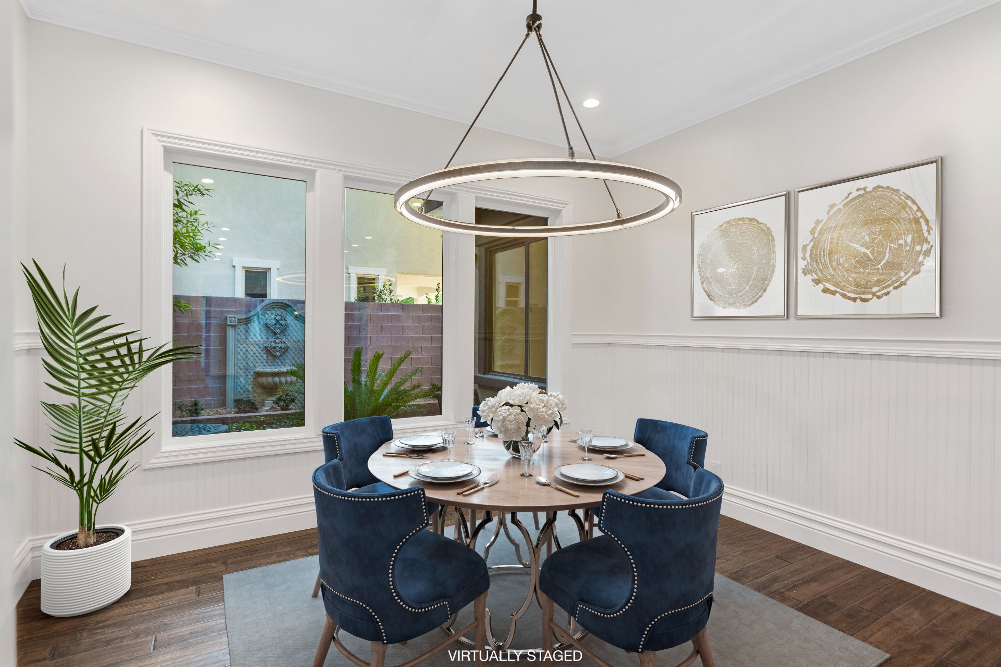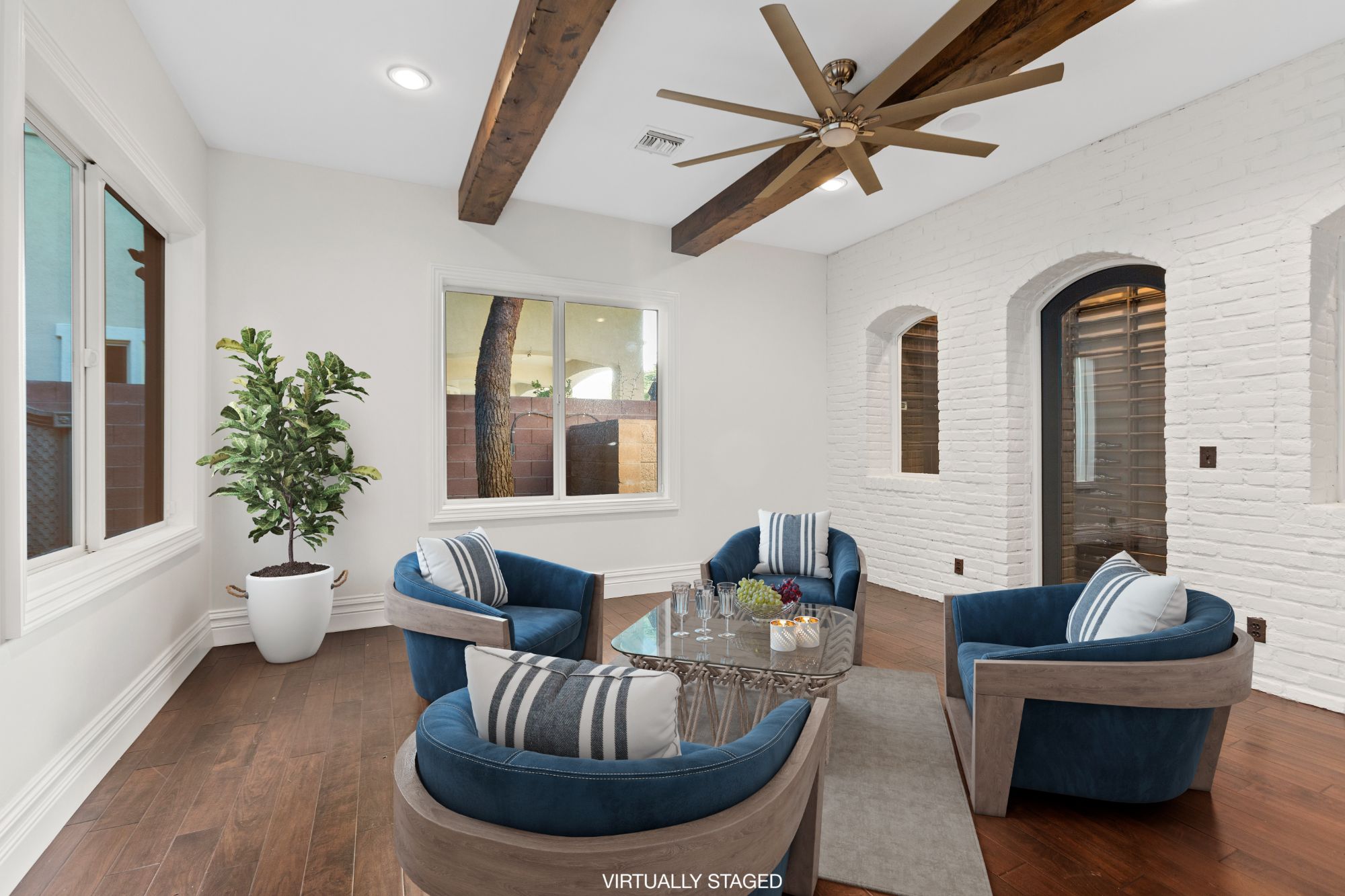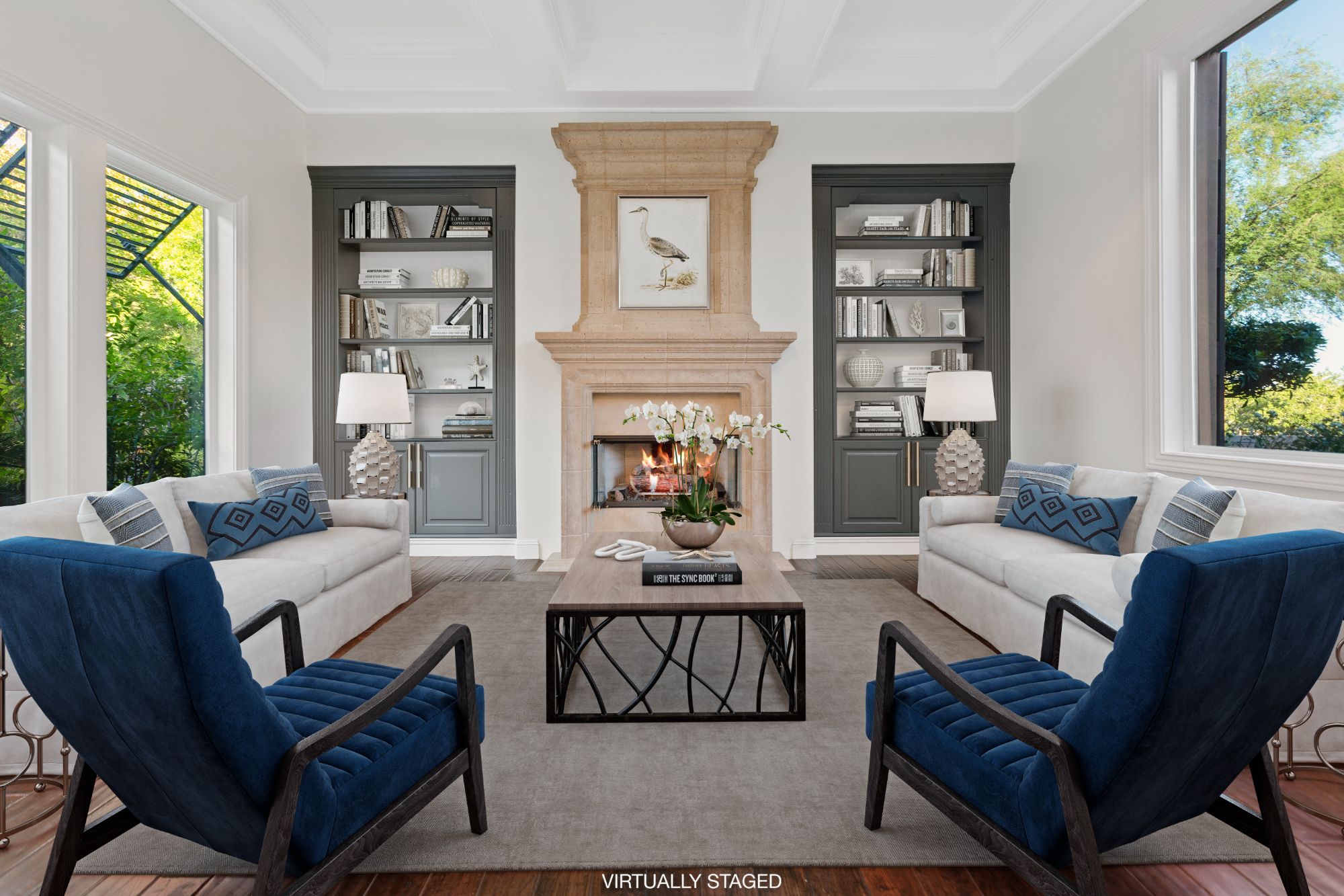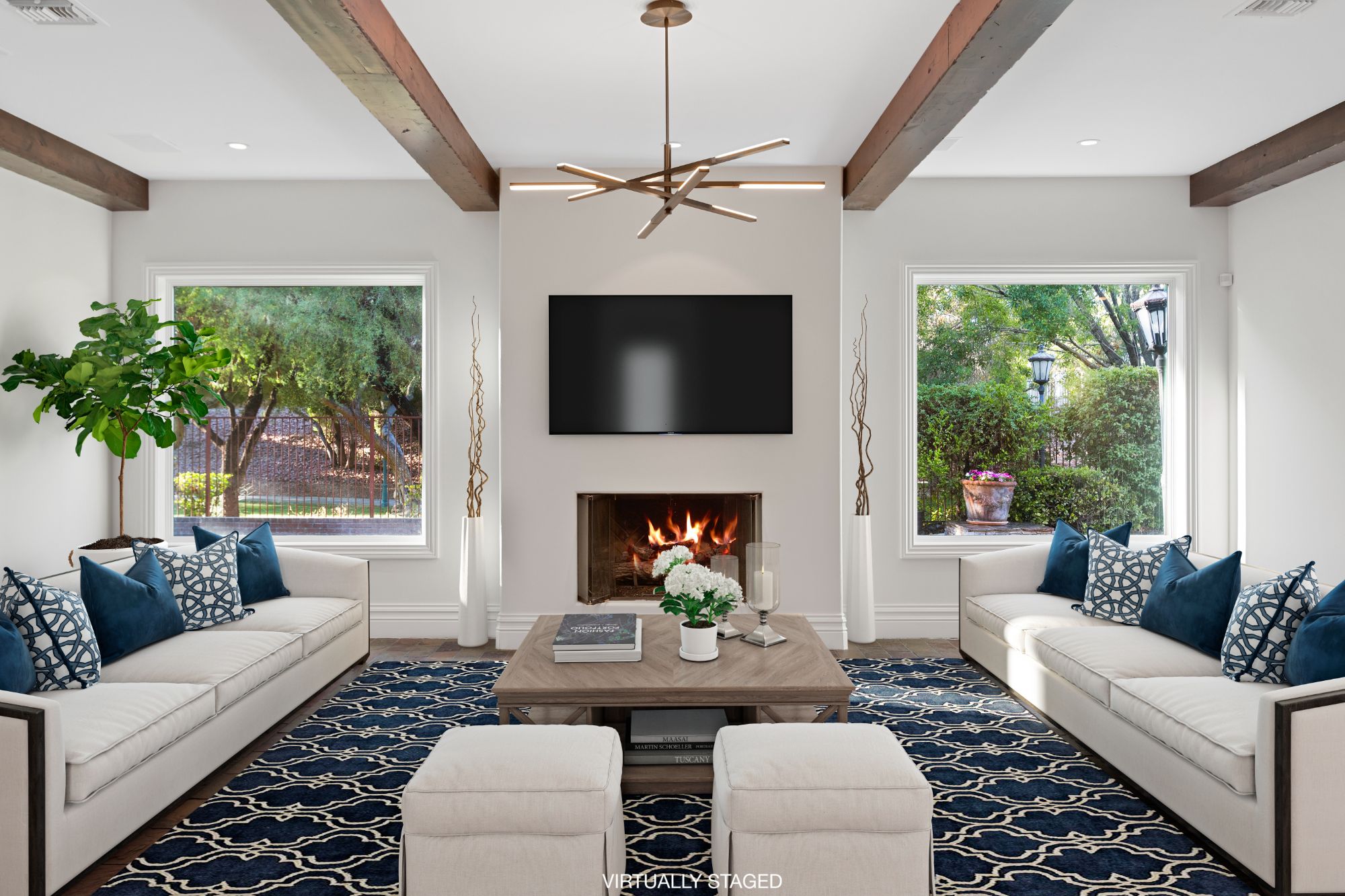 Rustic ceiling beams, central courtyard with water features, and the natural stone architectural accents add unique Old-World charm to this perfectly appointed modern living space. The expansive use of glass windows and doors provides picturesque views of the central courtyard from both floors. The exteriorās park-like setting is complete with an outdoor kitchen, including a built-in barbecue, sink and refrigerator. Two spacious side lots make for an abundance of seating arrangements for gatherings of family and friends. A private, heated inground pool with spa and exquisite landscaping add to the beauty of the homeās exterior. The garage offers four bays.
