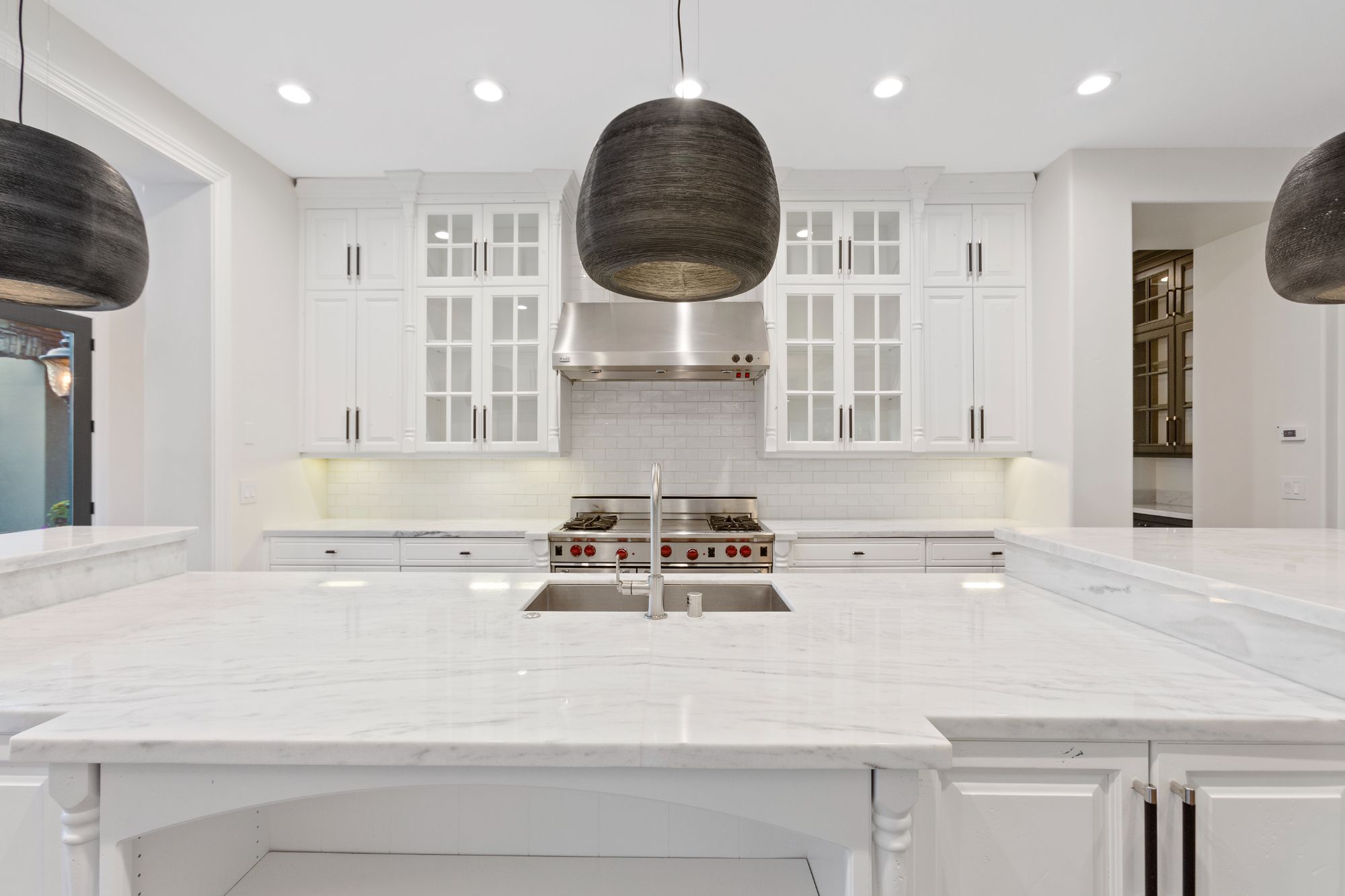 The main living area includes spacious rooms adorned with fireplaces, tasteful built-ins, crown molding and wainscotting, and stunning views of the rear courtyard and entertainment area. A well-appointed chefās kitchen features a double gas range and sprawling prep area. The private wine room can perfectly accommodate up to 560 bottles, making it a wine connoisseurās paradise.