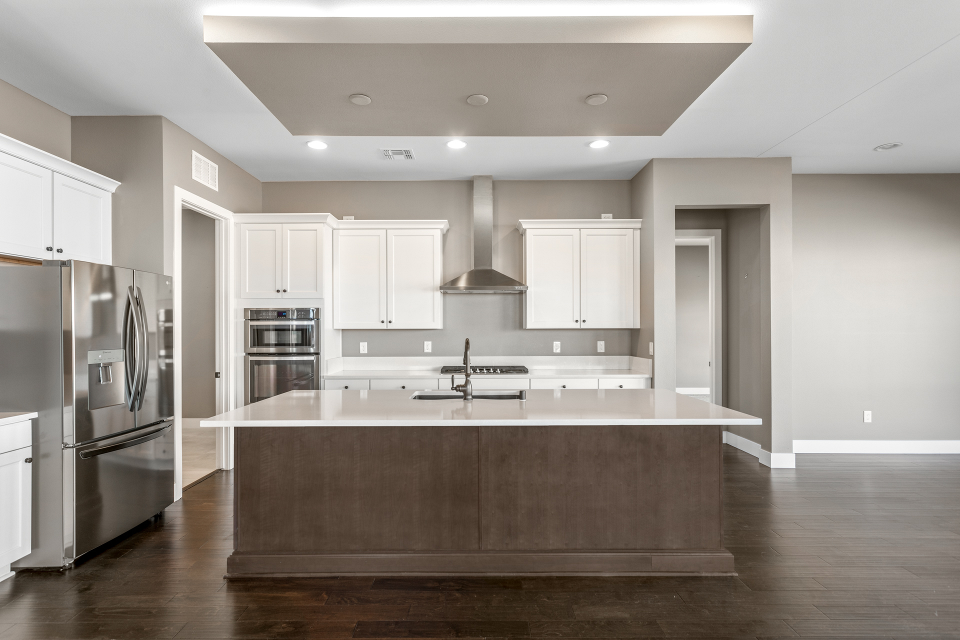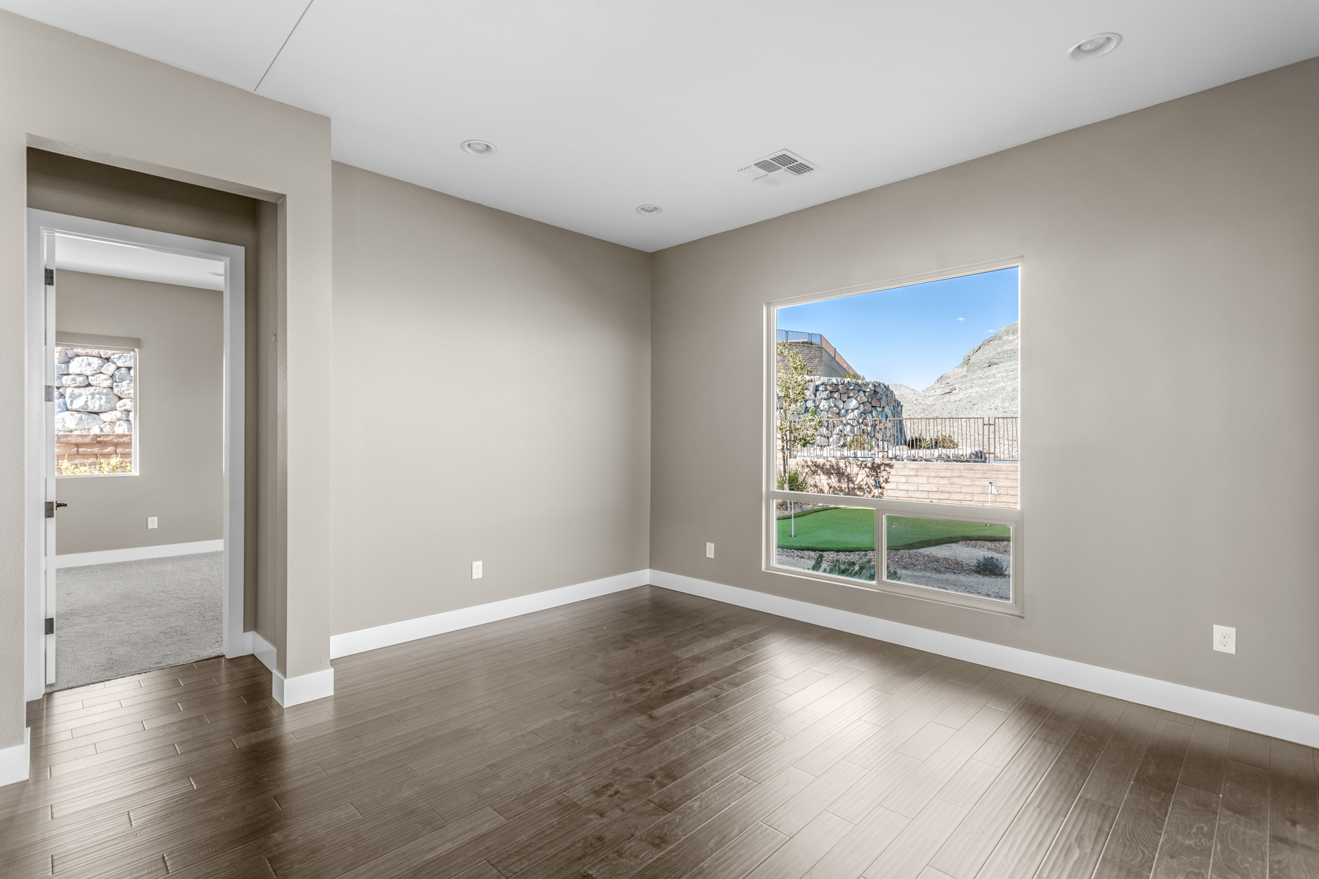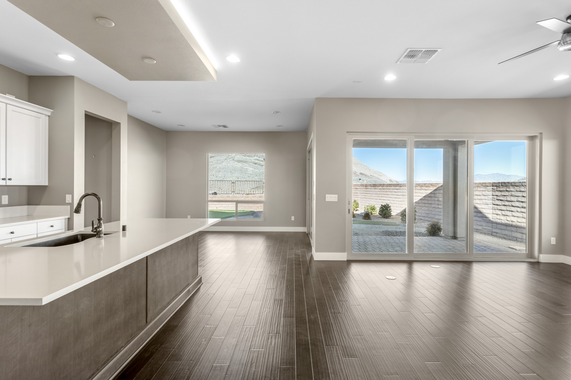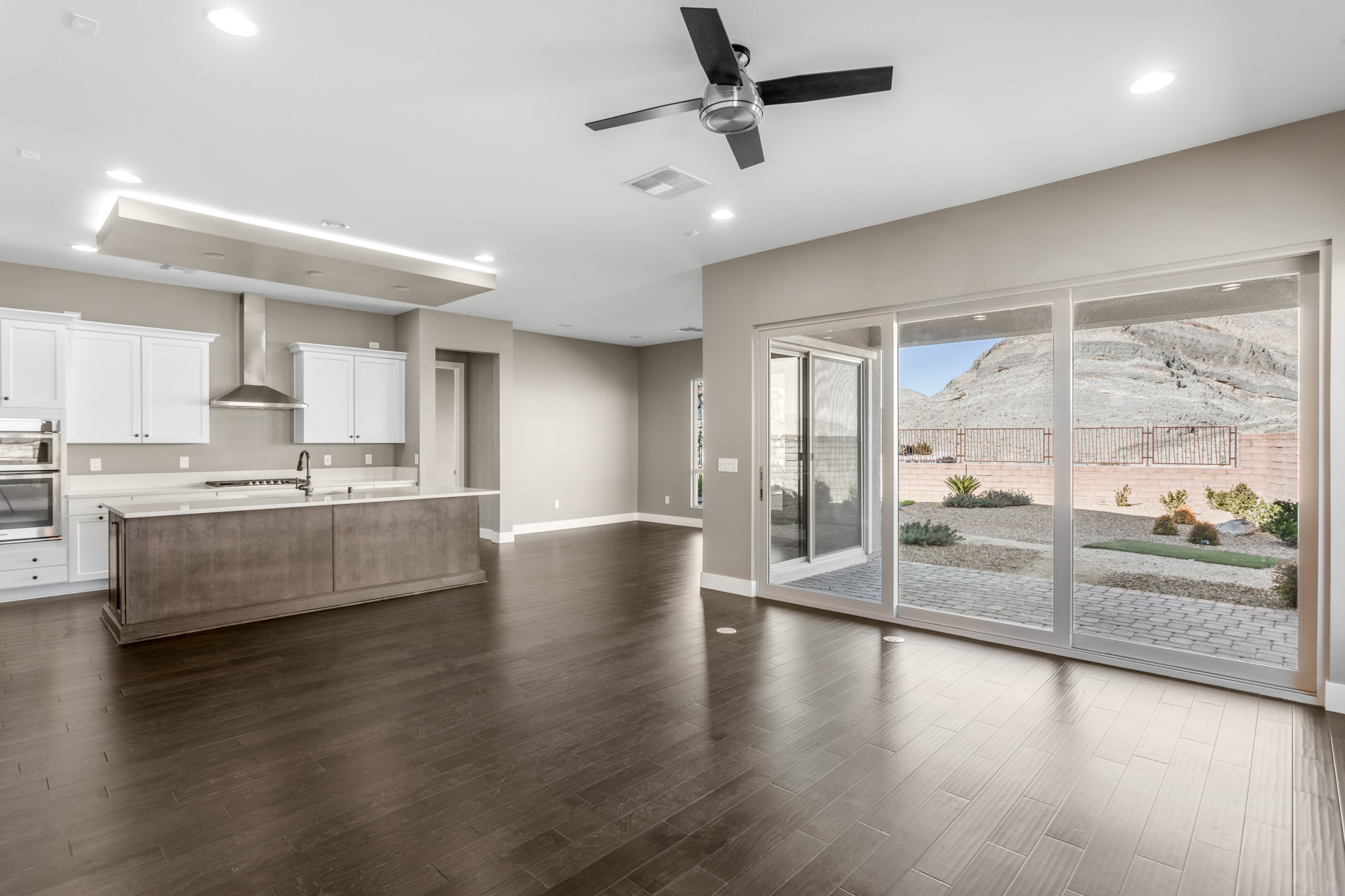 Open and light with large picture windows, the great room, covered patio, as well as master bedroom provide stunning views of rock formations. The kitchen includes a long island with bar seating, double oven, and stainless-steel appliances.