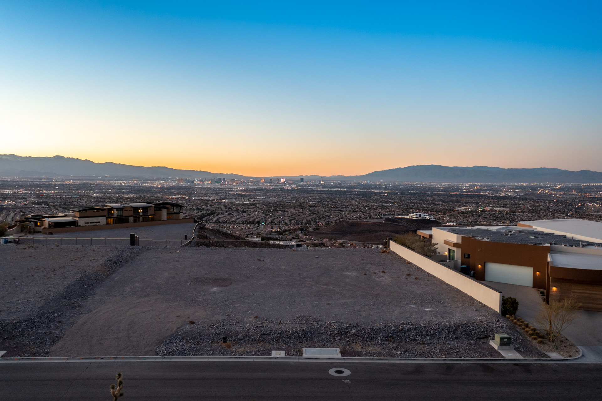 Rare opportunity to own a homesite looking out perfectly centered to the famous Las Vegas Strip. High above the mountains, the surrounding views include the entire Vegas valley with sweeping panoramic views of the city, Red Rock Canyon, Mt. Charleston, and Sunrise Mt. NO WAITING!!