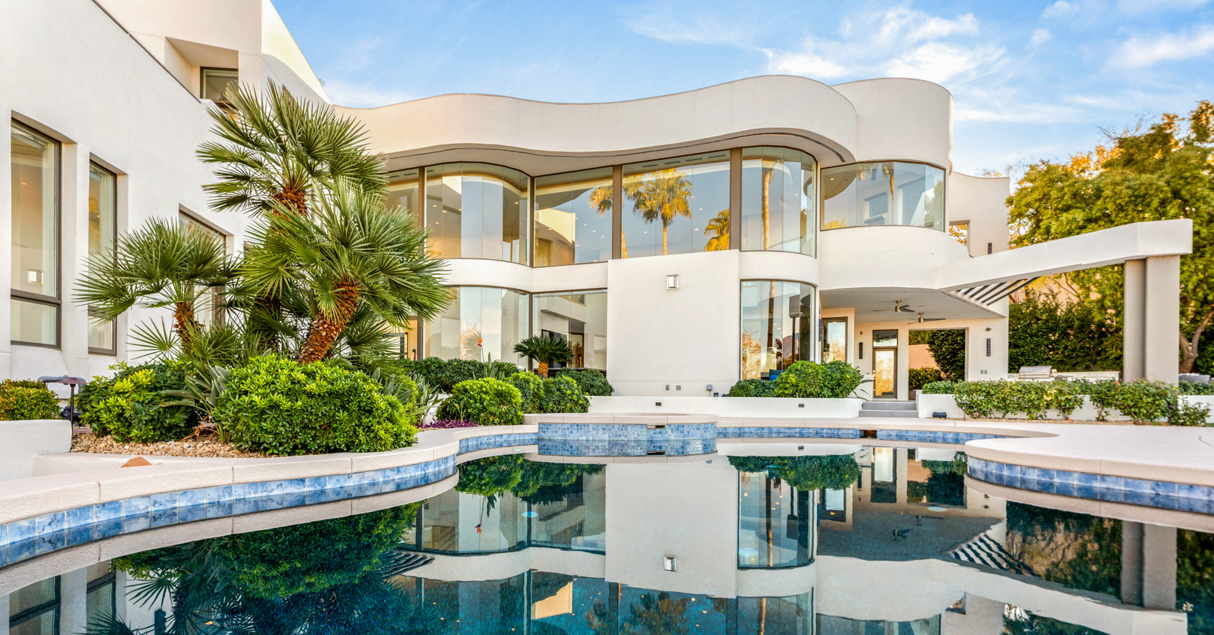 Located at 1109 Pine Island Court in the prestigious guard-gated enclave of Tournament Hills, this reimagined Summerlin estate sits at the end of an ultra-private cul-de-sac on approximately one-half acre. A recent multi-million-dollar renovation has transformed this 7,757-square-foot, 5-bedroom, 8-bathroom architectural treasure into a midcentury-inspired masterpiece where clean lines, bold design, and modern luxury merge seamlessly.
