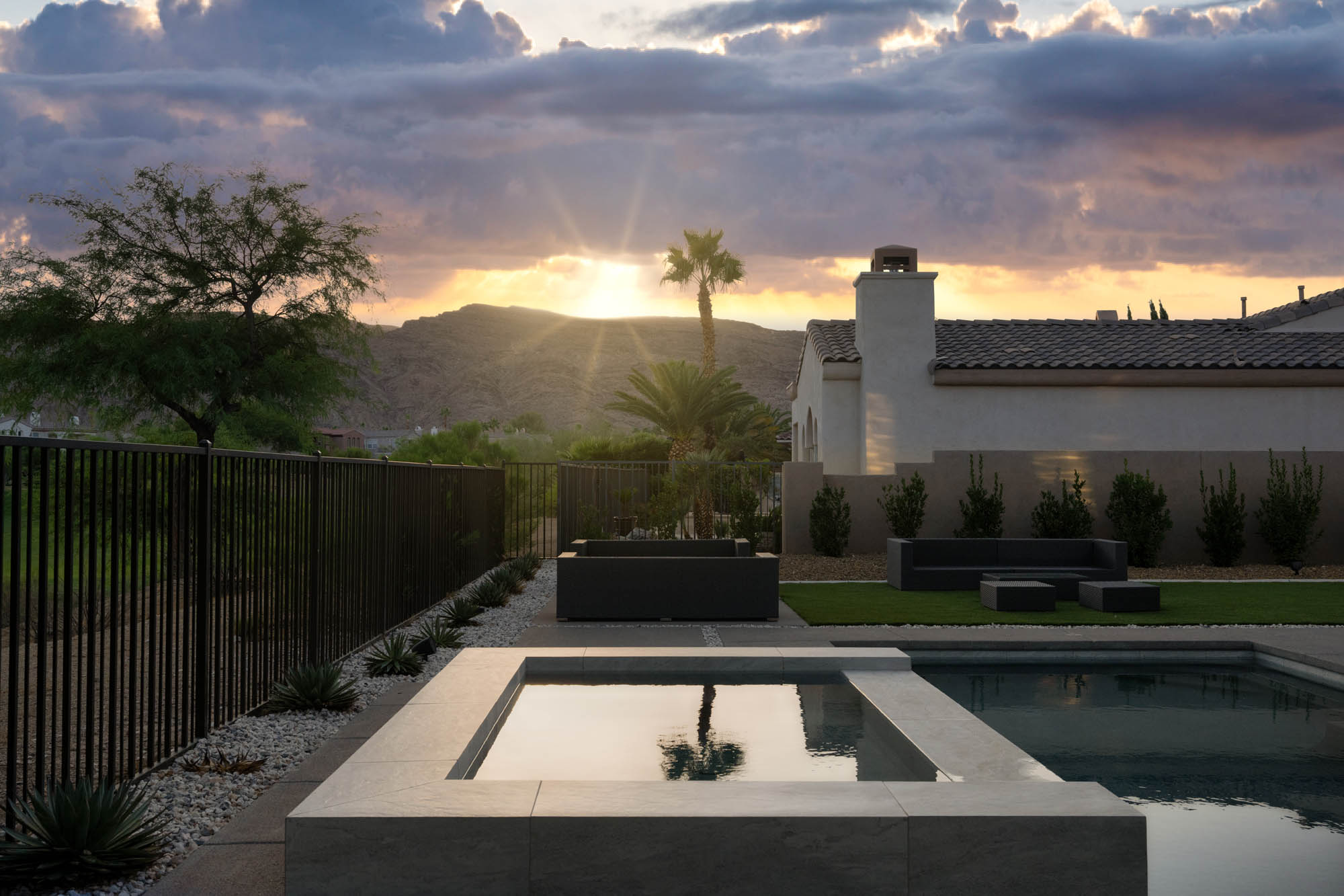 The residence features four private bedrooms, each with its own bath. The primary suite is a true retreat, featuring a spa-inspired bathroom, custom-fitted closets, and a private balcony framing sweeping mountain and golf course vistas. The backyard has been masterfully designed as both an entertainerās paradise and a serene retreat. Manicured landscaping frames a modern pool, oversized spa, and built-in barbecue, while an expansive turf lawn offers the perfect setting for gatherings, games, or relaxed afternoons in the sun. As evening falls, a firepit thoughtfully placed to capture sunsets over the mountains creates a breathtaking backdrop for outdoor living. Set on a coveted golf-front homesite and ideally located across from the community park, this residence embodies the best of refined desert living.