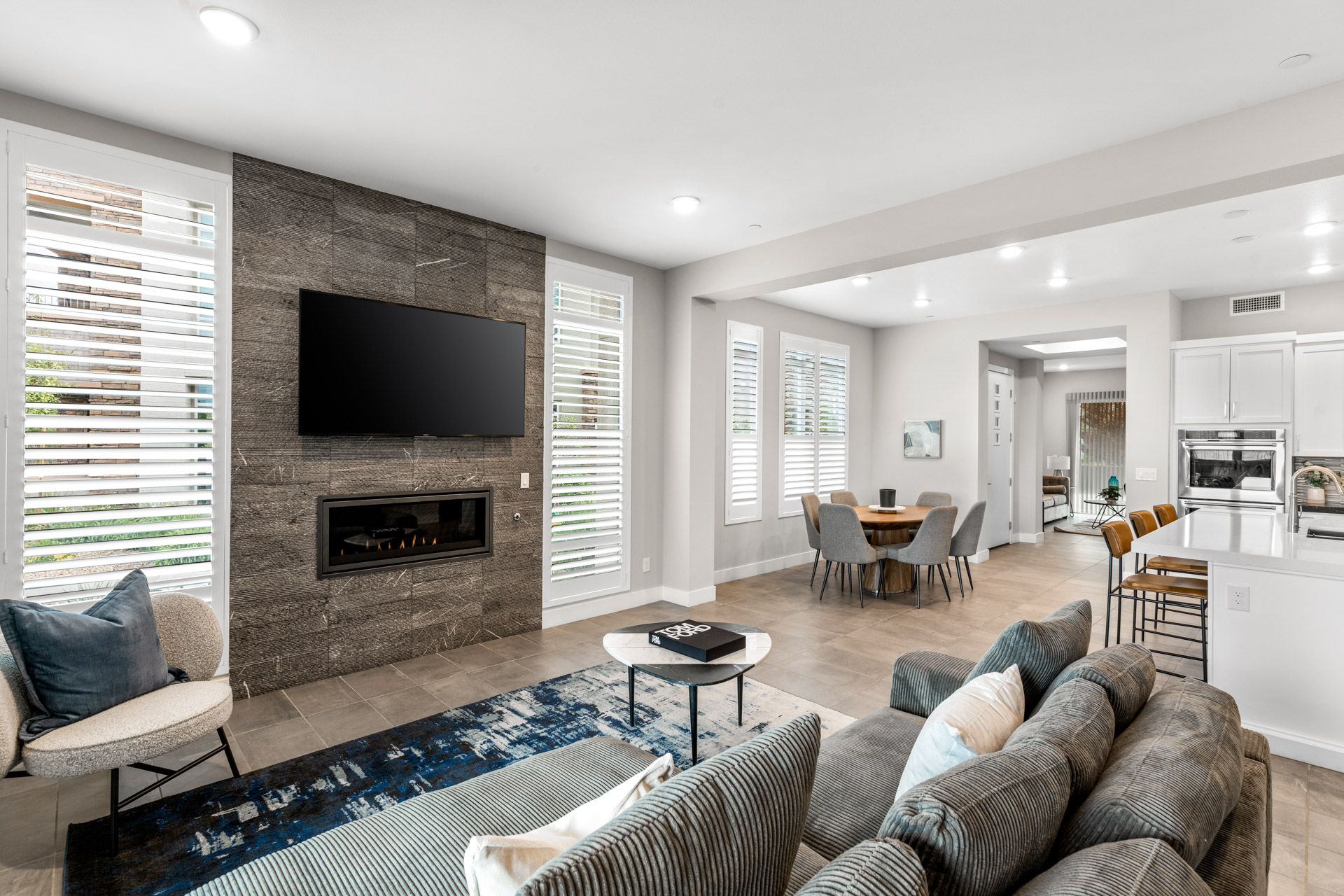 The great room including a cozy fireplace opens to a covered patio. A chefās style kitchen includes all stainless appliances, double oven, and island with bar seating. An adjoining space offers the perfect spot for a dining table. The large master suite contains a spacious bath with dual head marble tile-lined walk-in shower.