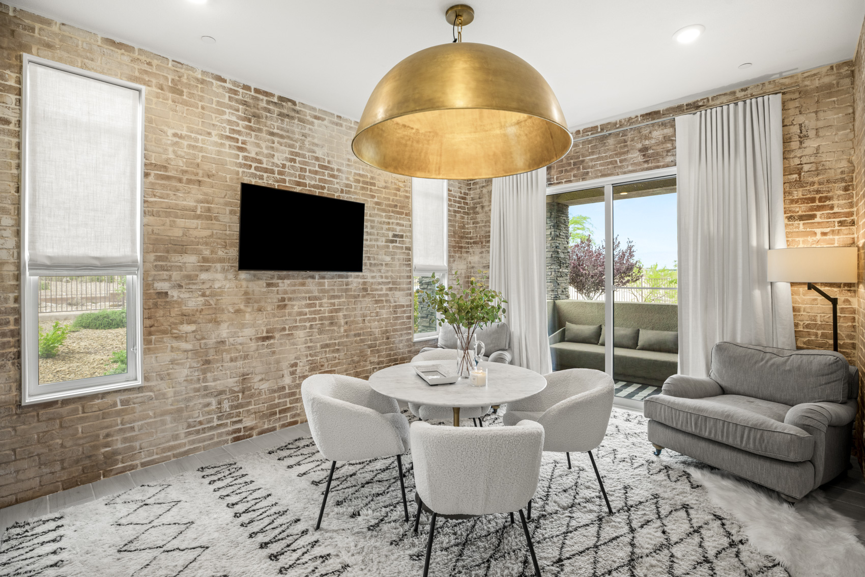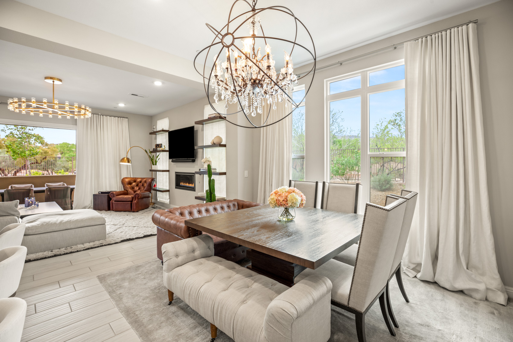 Sunlit interiors unfold through an open-concept layout designed for both relaxed living and stylish entertaining. Expansive windows frame the lush fairways beyond, while two private verandas extend the living space outdoors—ideal for morning coffee, evening wine, or intimate gatherings beneath the desert sky.