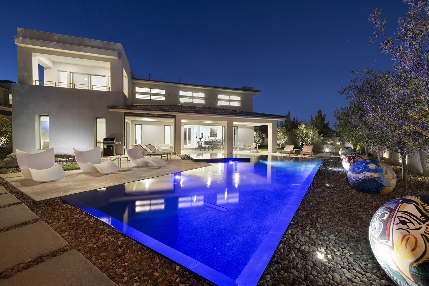 Guard gated Silver Ridge home on one of the largest and most private homesites in the community. Spectacular vanishing edge pool and spa. Exceptionally bright, airy, and open with marble and hard surface flooring throughout. This exceptional home has an abundance of natural light and a true indoor/outdoor feel which is further enhanced by the large pocketing door from the great room to the expansive patio.