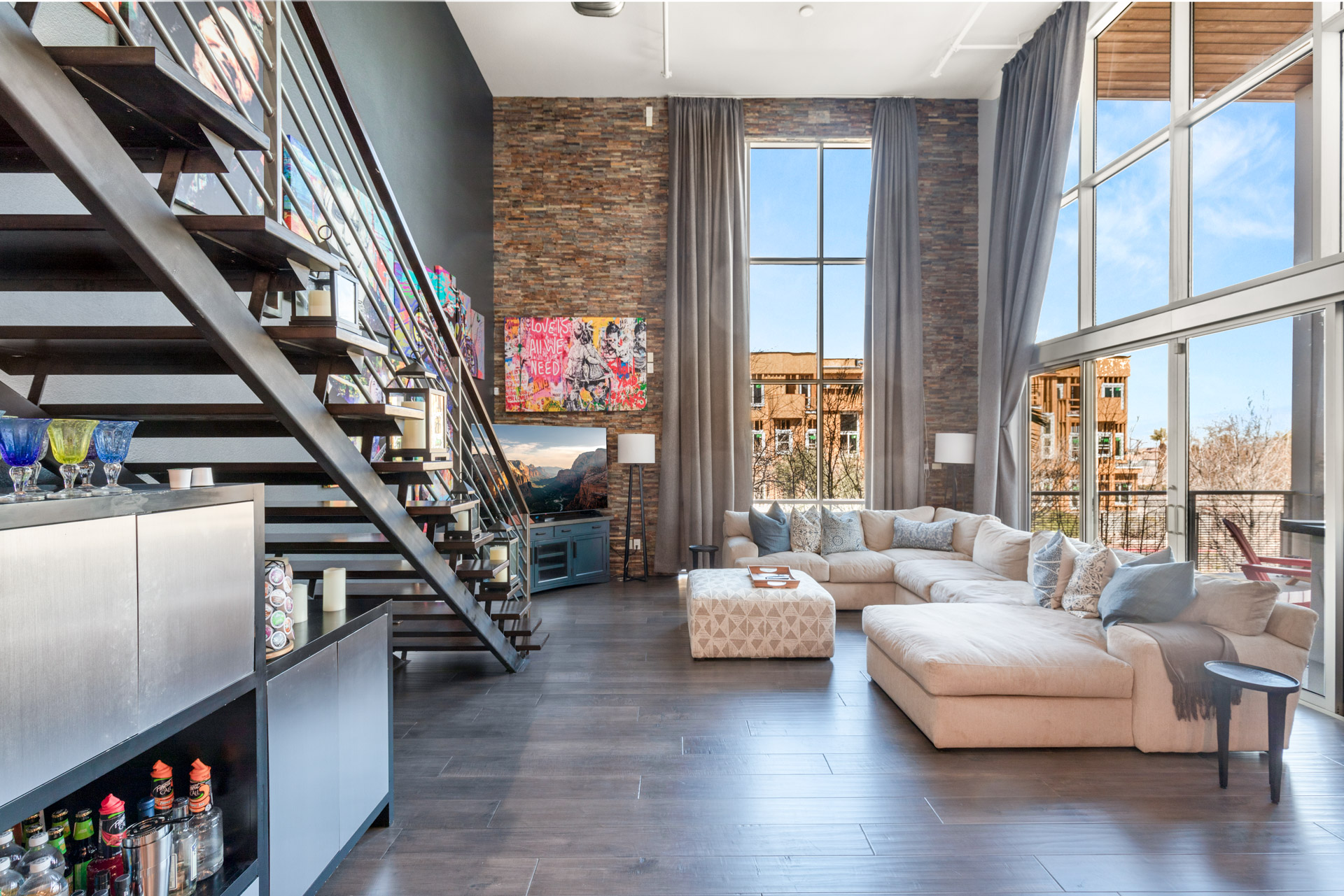 Located just minutes from Downtown Summerlin, Red Rock Casino, and the LV Baseball Park, this SOHO style loft offers a stunning blend of contemporary design and urban living. Soaring ceilings and 18-foot windows will the open space with natural light, creating a bright and inviting ambiance.
