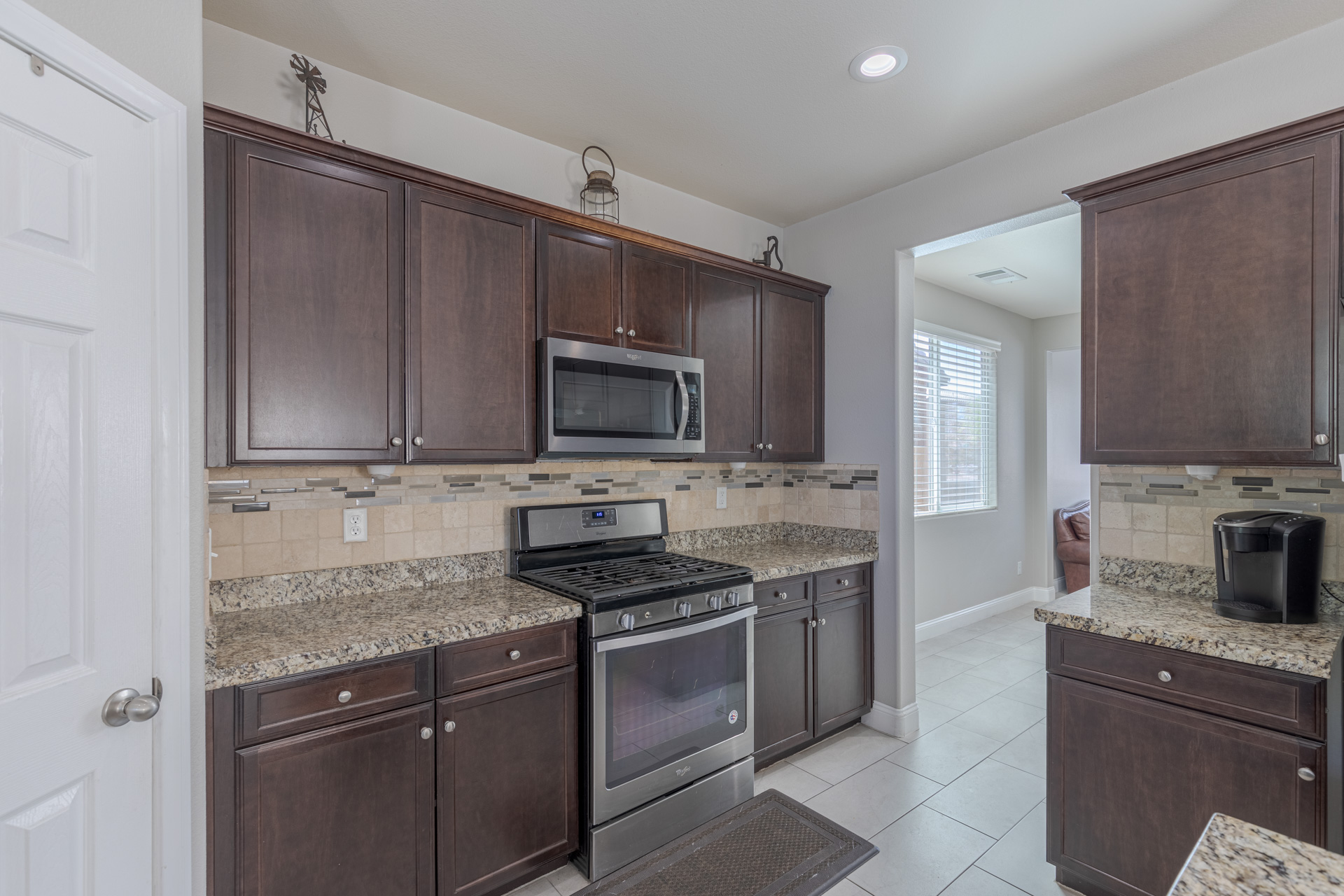 This stunning upgraded Henderson home features an open floor plan comprised of 4 bedrooms, 2.5 baths and 2,597sqft of living space. A large kitchen features granite countertops, a spacious island, and stainless steel appliances that open to an inviting great room space.