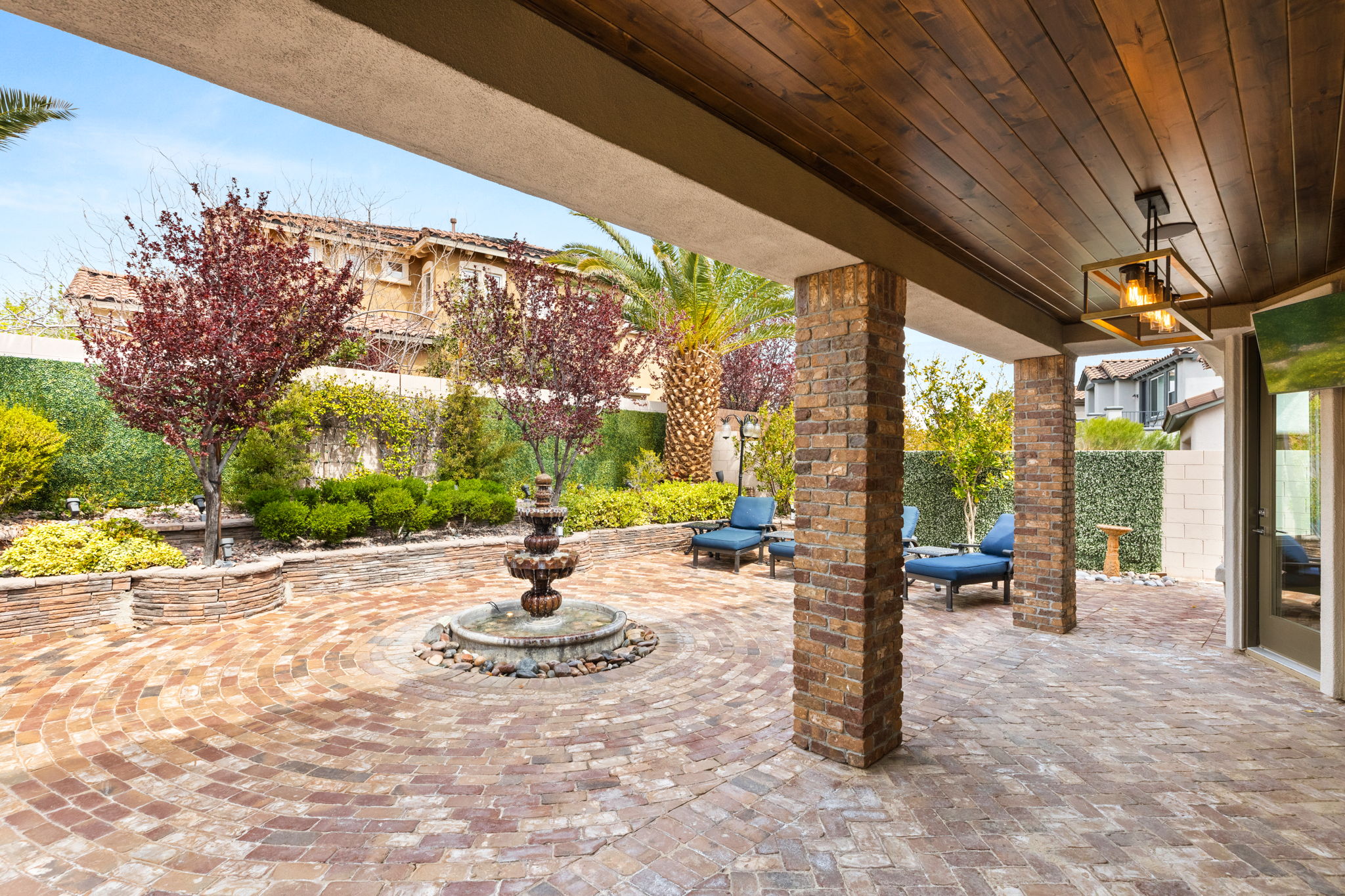 The well appointed kitchen is both functional and elegant ideal for every day living or quiet, entertaining. Outside a quaint private yard, provides a peaceful retreat with mature Landscaping, perfect for relaxation or casual gatherings. Located just minutes from upscale shopping, dining and recreational amenities. This home embodies the perfect blend of comfort and convenience in the highly sought after neighborhood of Allerton Park. A rare opportunity to embrace the quintessential Summerlin lifestyle awaits here.