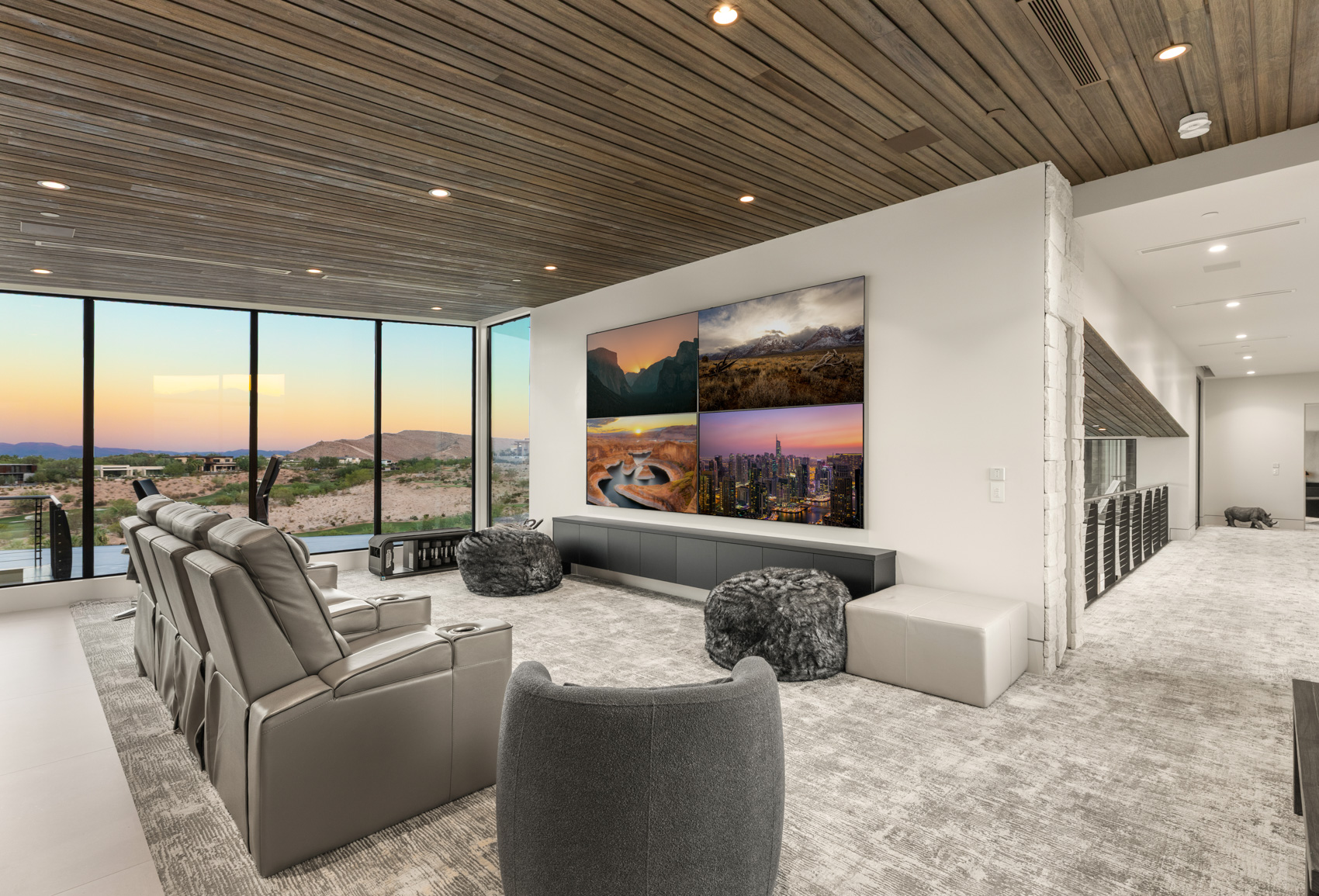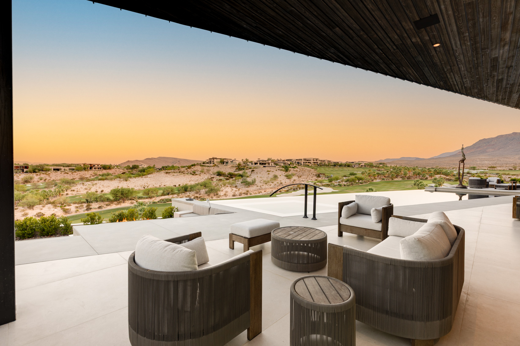 Framed by dramatic mountain silhouettes, shimmering lake vistas, and commanding views of the golf course and Las Vegas Strip, this residence transforms the art of indoor-outdoor living into a daily reality. Walls of floor-to-ceiling glass open wide, seamlessly merging interior spaces with expansive outdoor terraces, where sunsets paint the sky and nature becomes the ever-changing backdrop.