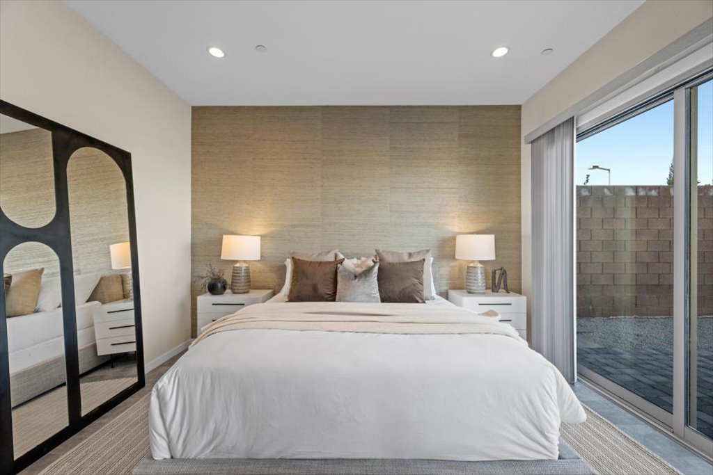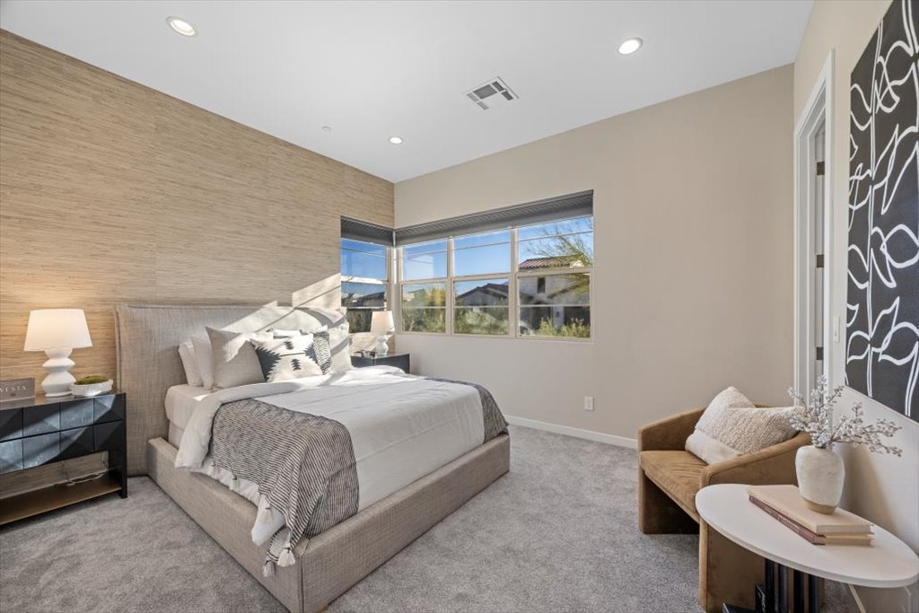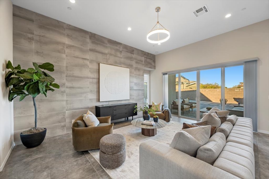 es include solid core doors throughout, retractable screen door, whole home water softening system, floor to ceiling tile in the powder bathroom, designer wallpaper accent walls in the primary and secondary bedrooms, a tile feature wall in the living room, and designer window coverings throughout. Don't miss out on this exceptional deal in Summerlin West!