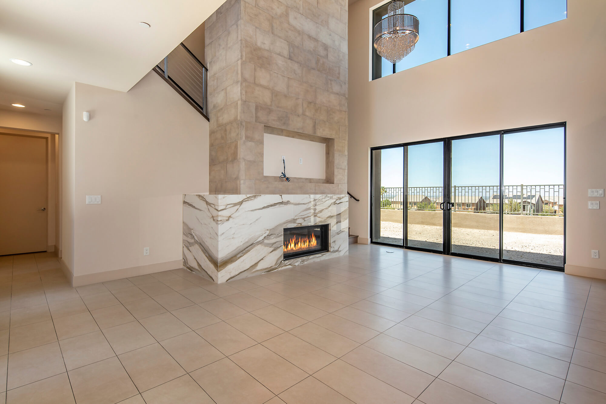 A second-level bedroom suite includes a private bath and walk-in closet. Two additional bedrooms, one opening to a balcony, sit on the second level. With front and back second-level patio, a covered patio on the first level, and a courtyard, this home is truly meant for indoor and outdoor living. Located in the gated La Luz neighborhood in Henderson, a city nestled against the Sloan Canyon National Conservation Area, this Blue Heron-designed, energy-efficient open concept home is close to a vibrant urban center, schools, and abundant recreational opportunities.