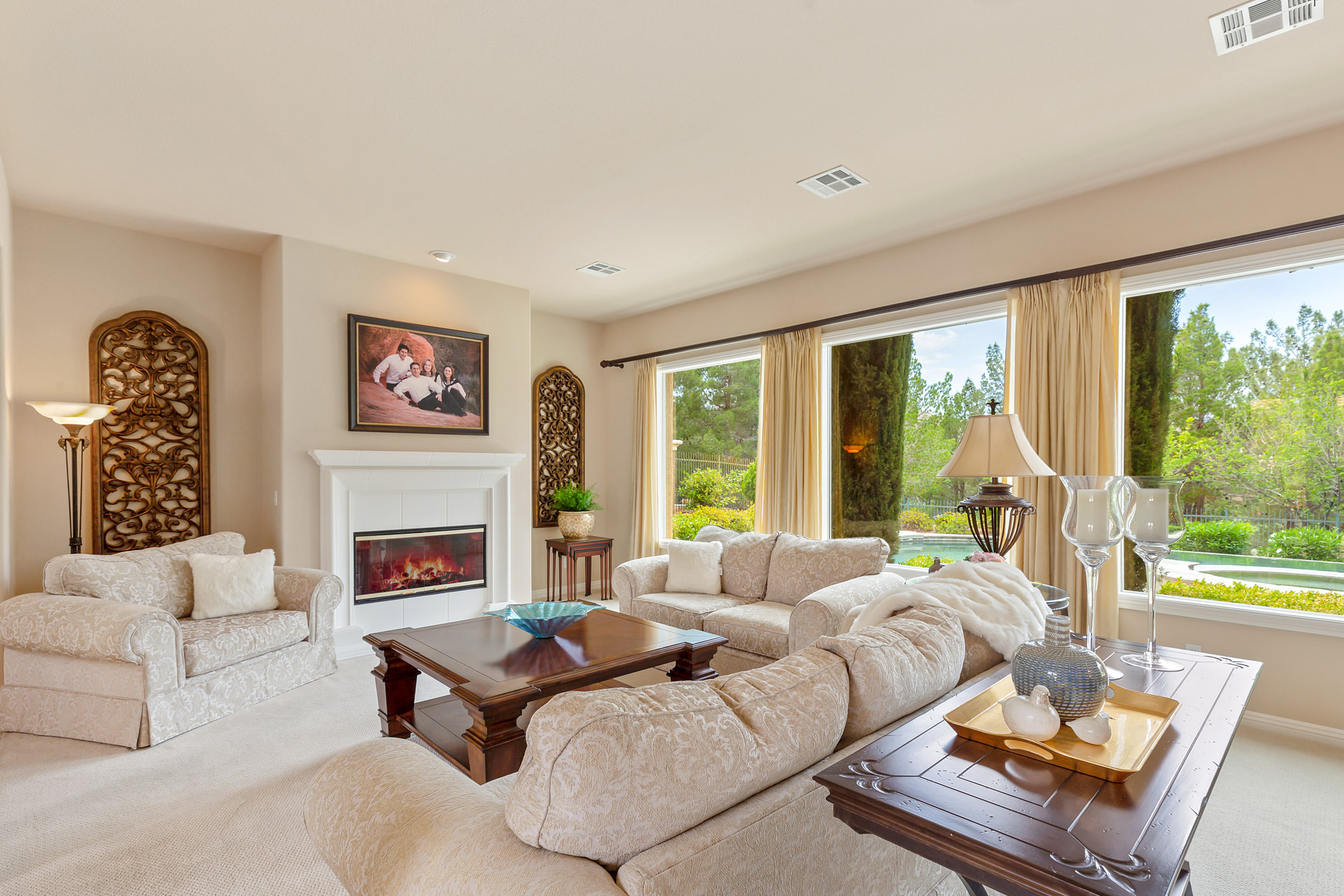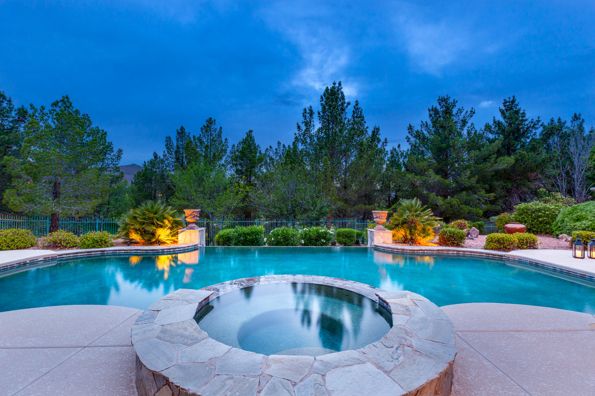 The foyer, a symphony of opulence, boasts custom medallion flooring and an exquisite spiral staircase, setting the stage for the grandeur that awaits within. Every corner of this home exudes luxury, from the gourmet kitchen to the spacious living areas adorned with fireplaces. The kitchen is a culinary masterpiece, featuring a large island, granite countertops, travertine backsplash with decorative inlay, and top-of-the-line appliances including Sub-Zero refrigerators, DCS cooktop, and GE Monogram appliances. Rich maple cabinetry adds warmth and sophistication, creating a space that is both functional and exquisite. Entertaining is a delight in the expansive living and dining areas, where fireplaces flicker with warmth and elegance. Whether hosting intimate gatherings or lavish soirĆ©es, this home offers the perfect setting for every occasion. A separate office/den with custom built-in library provides a quiet retreat for work or relaxation, while en suite secondary bedrooms offer comfort and privacy for guests. Upstairs, the grandeur continues with an expansive master suite that is truly a retreat unto itself. Featuring a fireplace, balcony overlooking the backyard pool, and sweeping views of the surrounding mountains, this sanctuary is the epitome of luxury. A separate master retreat room, accessible via a private stairwell from the courtyard, offers a secluded space for relaxation or contemplation. The master bath is a spa-like oasis, with his and hers closets, his and hers vanity sinks, a separate large tub, and a steam shower. Every detail has been meticulously designed to create a sense of indulgence and luxury, from the marble countertops to the designer fixtures and fittings. Outside, the backyard is an entertainer's paradise, with a covered patio, infinity-edge pool, and spa. Surrounded by lush landscaping and offering sweeping views of the golf course, this outdoor oasis is the perfect setting for al fresco dining, poolside lounging, or simply basking in the beauty of nature. Located in a guard-gated community, 11787 Oakland Hills offers the ultimate in privacy and security, ensuring peace of mind for you and your loved ones. With its unparalleled combination of architectural elegance, natural beauty, and luxurious amenities, this home is truly a rare findāa testament to the art of luxurious living.