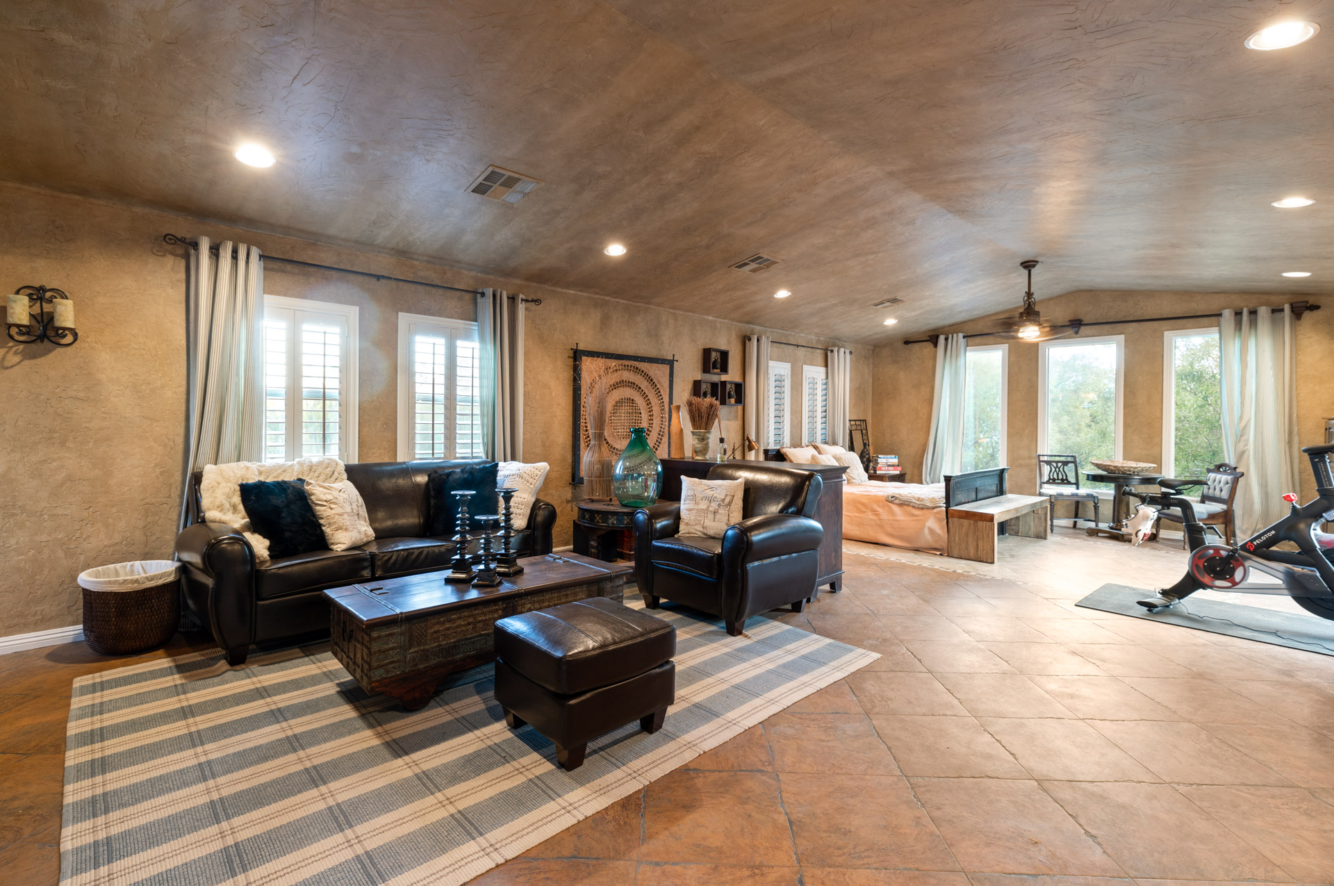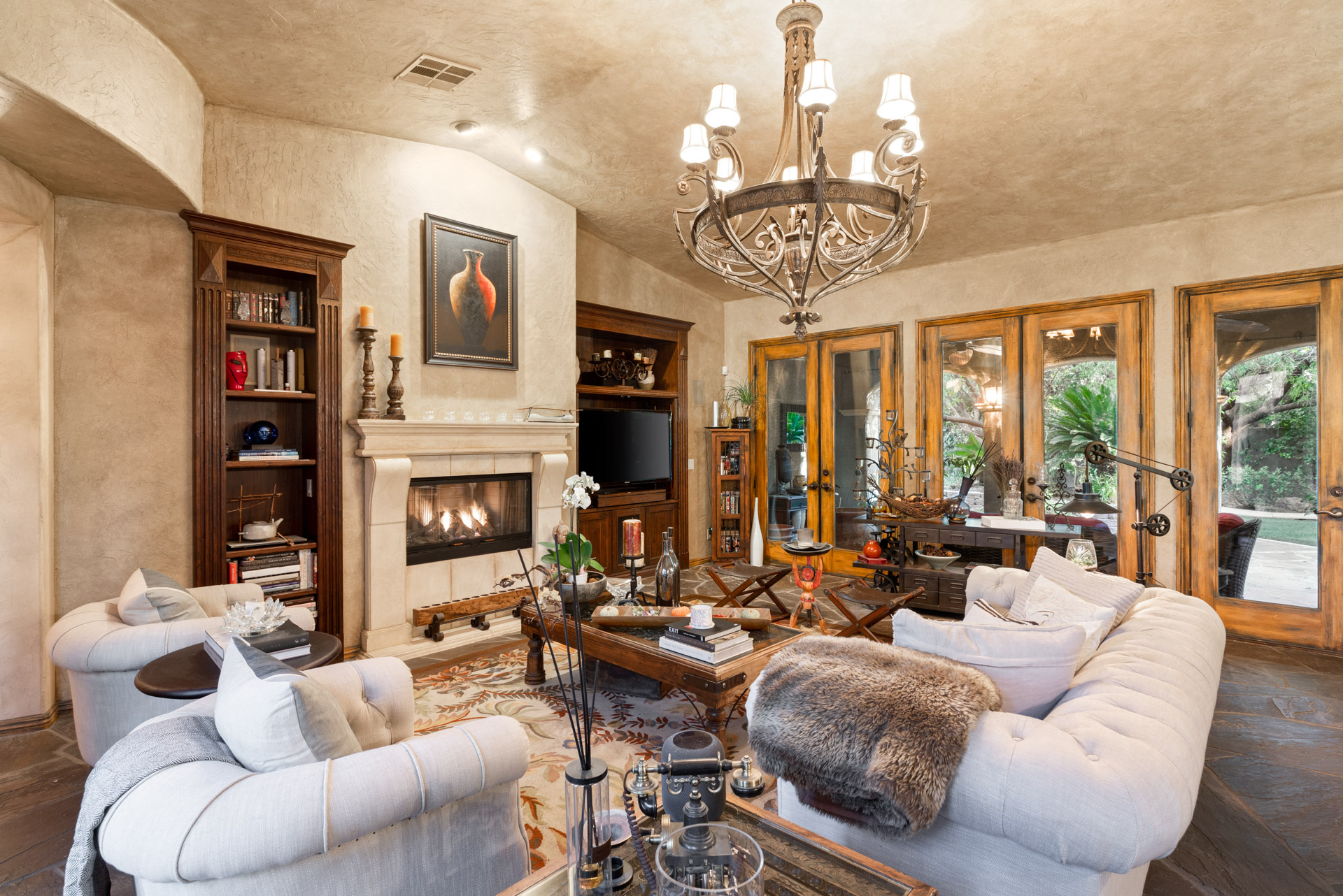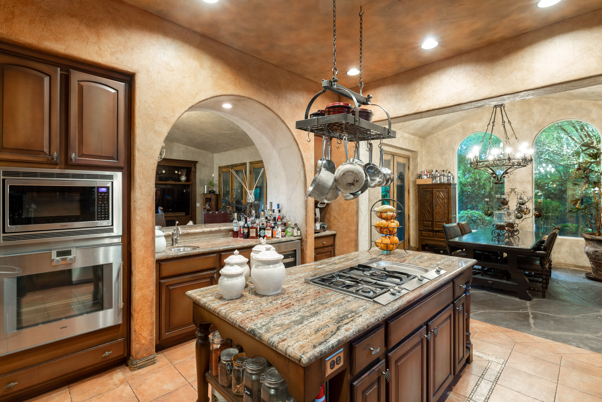 Stone countertops, Sub ZeroĀ® refrigeration and Gaggenau cooking highlight the kitchen. This home lives like a single story with the master bedroom and guest rooms downstairs. A large casita on the second floor is accessed by outdoor stairs and has an oversized suite with a full bath plus a private balcony.