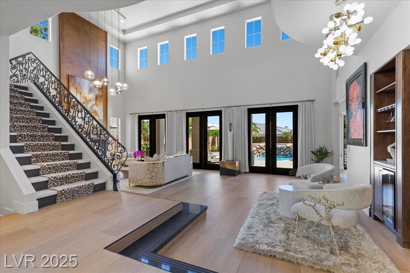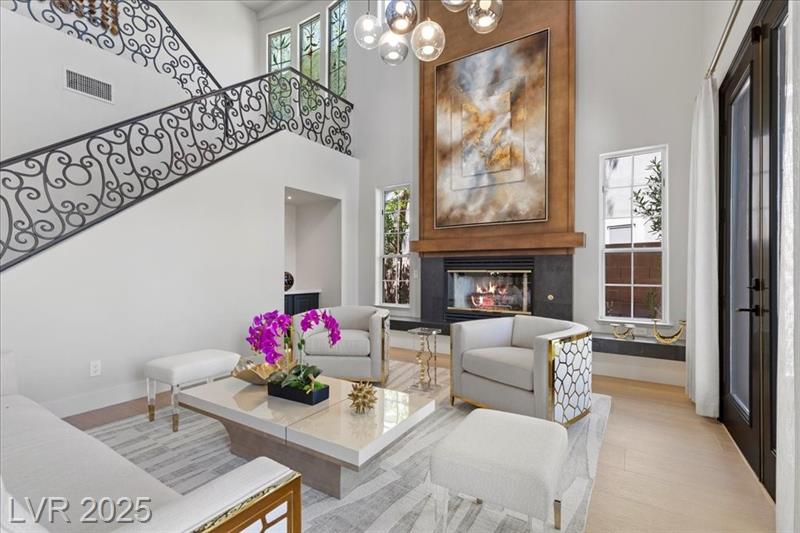Stunningly remodeled home in guard-gated Eagle Rock, one of Summerlinās most coveted communities. Nearly 4,100 sq ft with 5 bedrooms, 4 baths, and a 3-car garage with generous driveway parking. Inside, soaring ceilings and a handcrafted iron staircase set the tone for timeless elegance. Features include a stylish wet bar with wine cooler, custom window coverings, and extensive designer upgrades throughout.