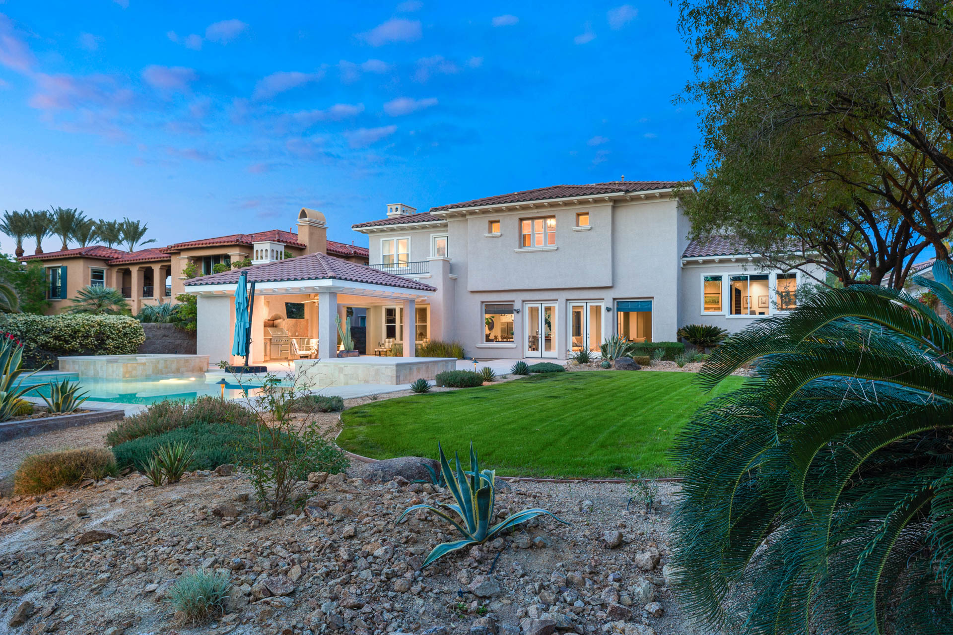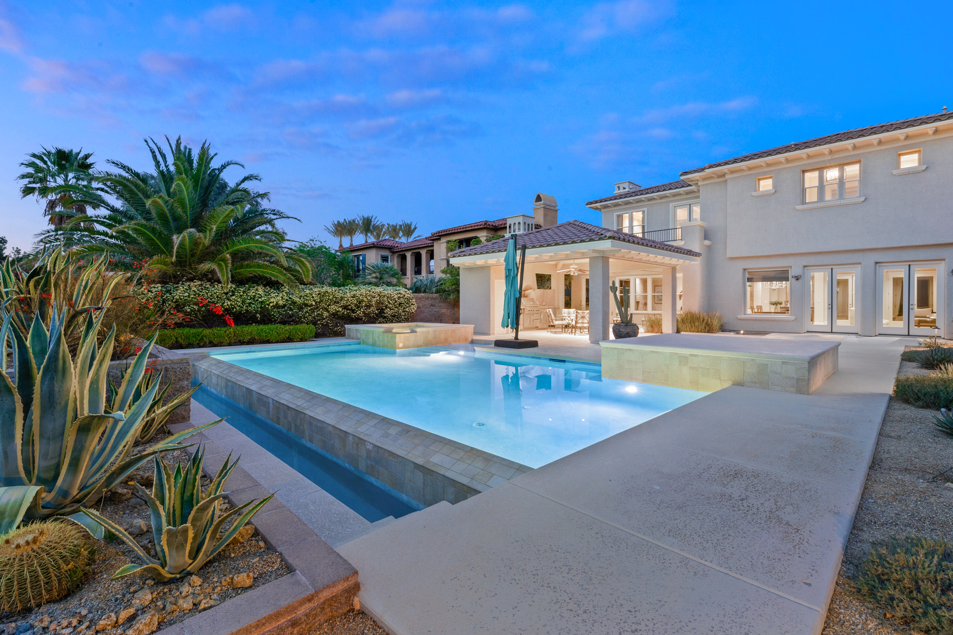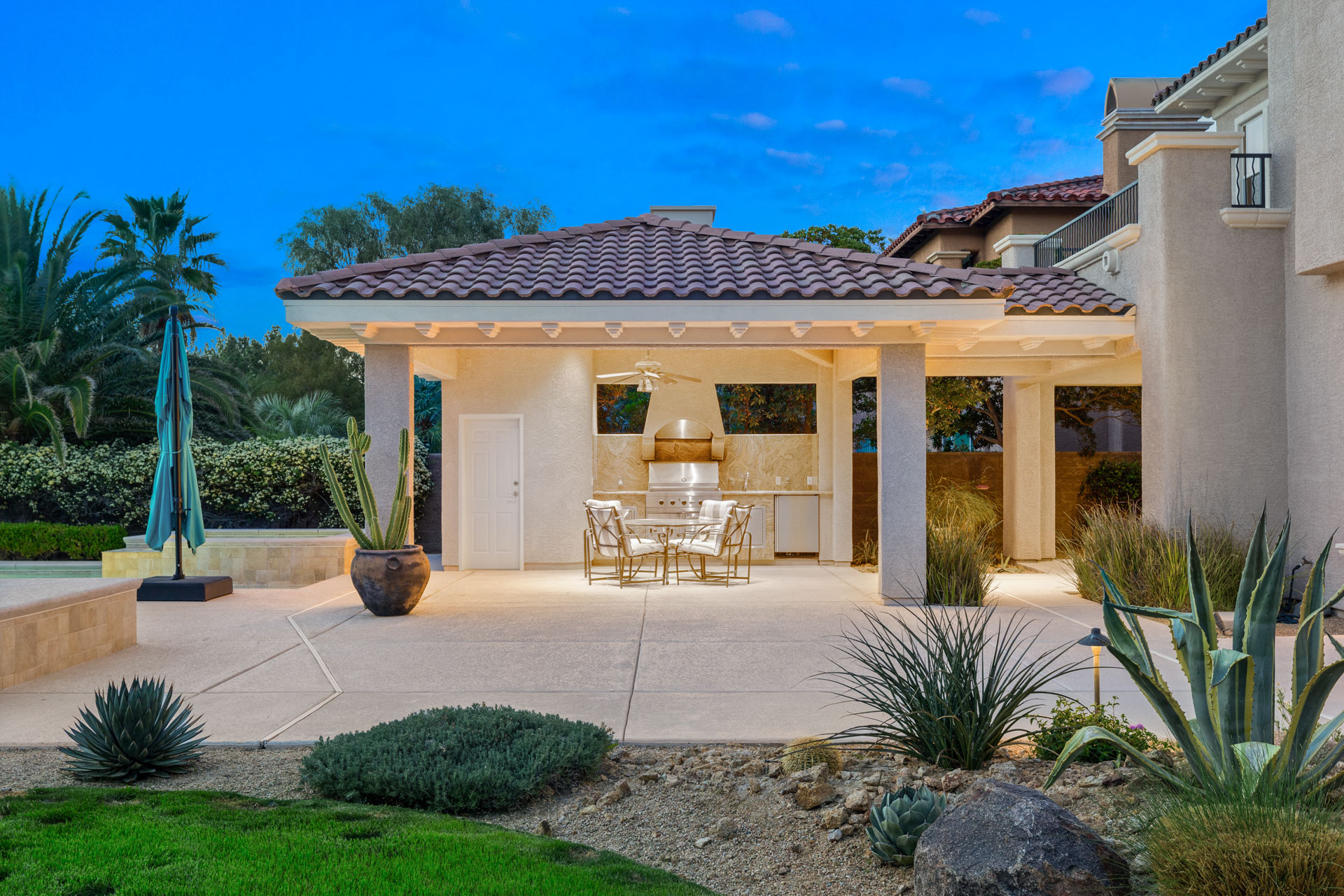 Outside you are welcomed by a charming courtyard with desert landscaping, a tranquil fountain, and a fireplace. While in the backyard enjoy an extended covered patio area featuring a built-in Viking grill with a fabulous outdoor kitchen and the convenience of a luxury jacuzzi. Plus a sparkling pool and spa, grassy area, and plenty of space for a putting green or bocci ball.