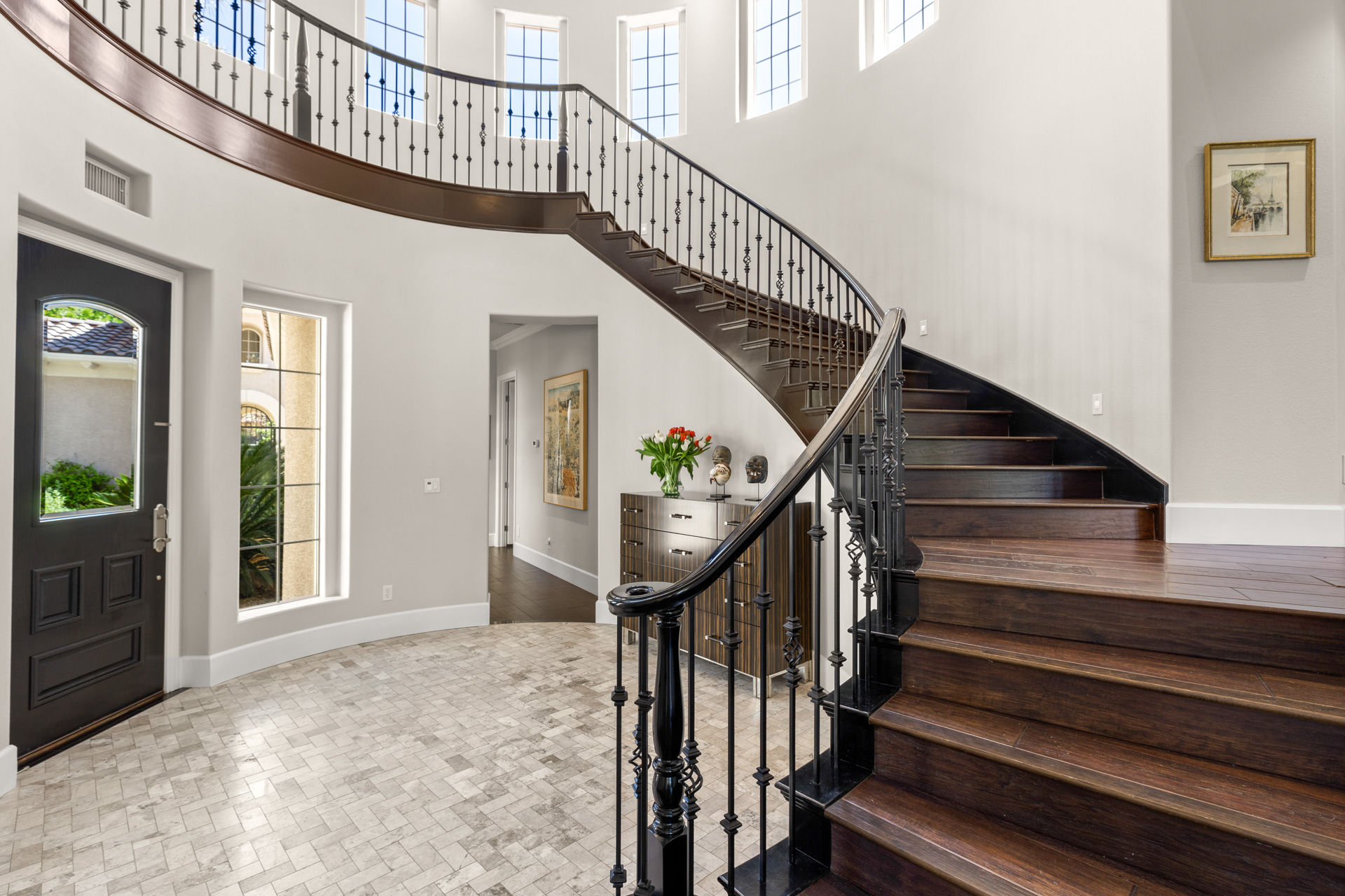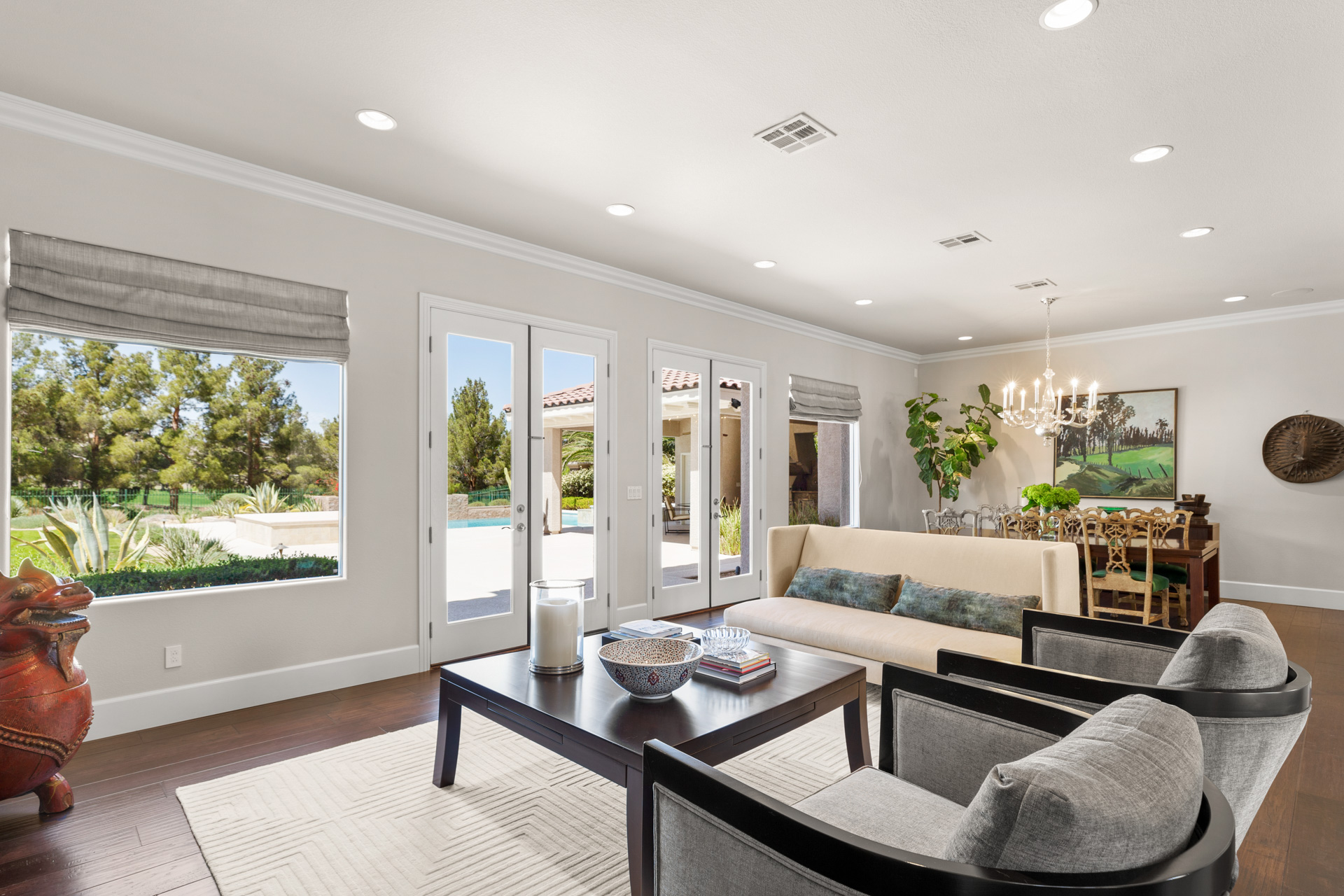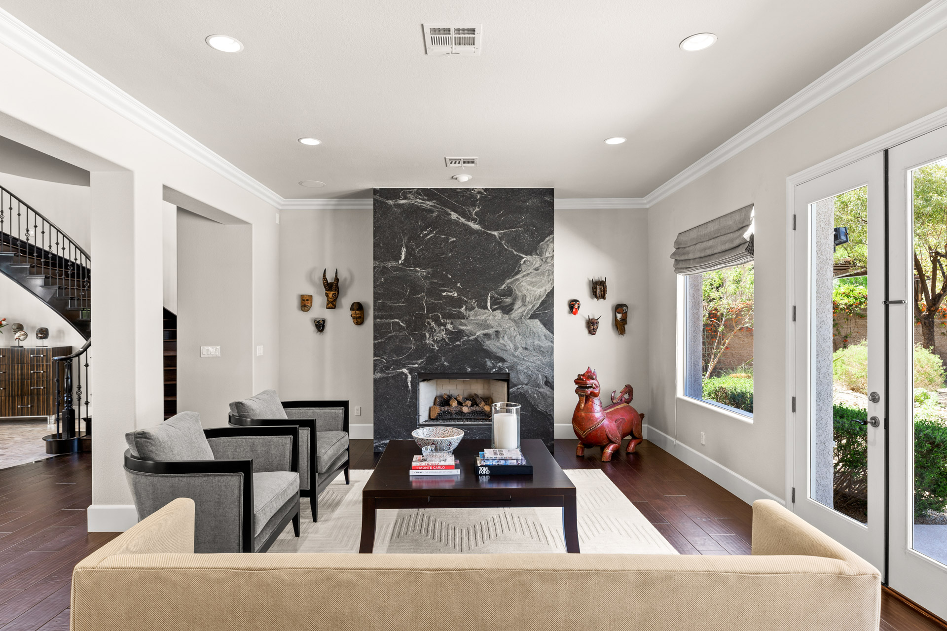 Outside you are welcomed by a charming courtyard with desert landscaping, a tranquil fountain, and a fireplace. While in the backyard enjoy an extended covered patio area featuring a built-in Viking grill with a fabulous outdoor kitchen and the convenience of a luxury jacuzzi. Plus a sparkling pool and spa, grassy area, and plenty of space for a putting green or bocci ball.
