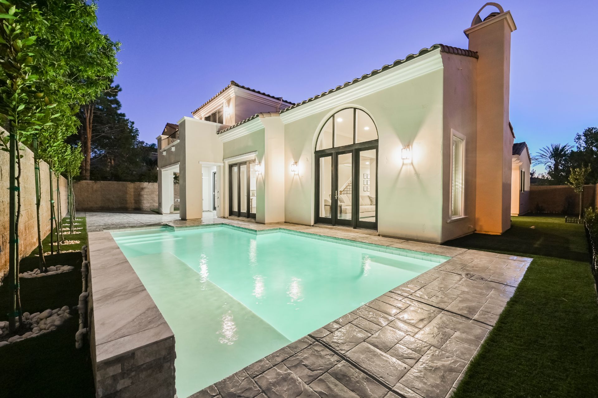 A Santa Barbara-style home with distinctive living space awaits only your personal touches to make it the home of your dreams. Situated behind the gates of Southern Highlands Golf Club, this residence has an abundance of community amenities that accentuate its value and add to its appeal. However, you may find there is little reason to venture out with a backyard pool, built-in barbecue, a nicely-landscaped side yard plus a charming courtyard with a fireplace for outdoor enjoyment. In addition, a walled front courtyard provides a welcoming private transition from the street.