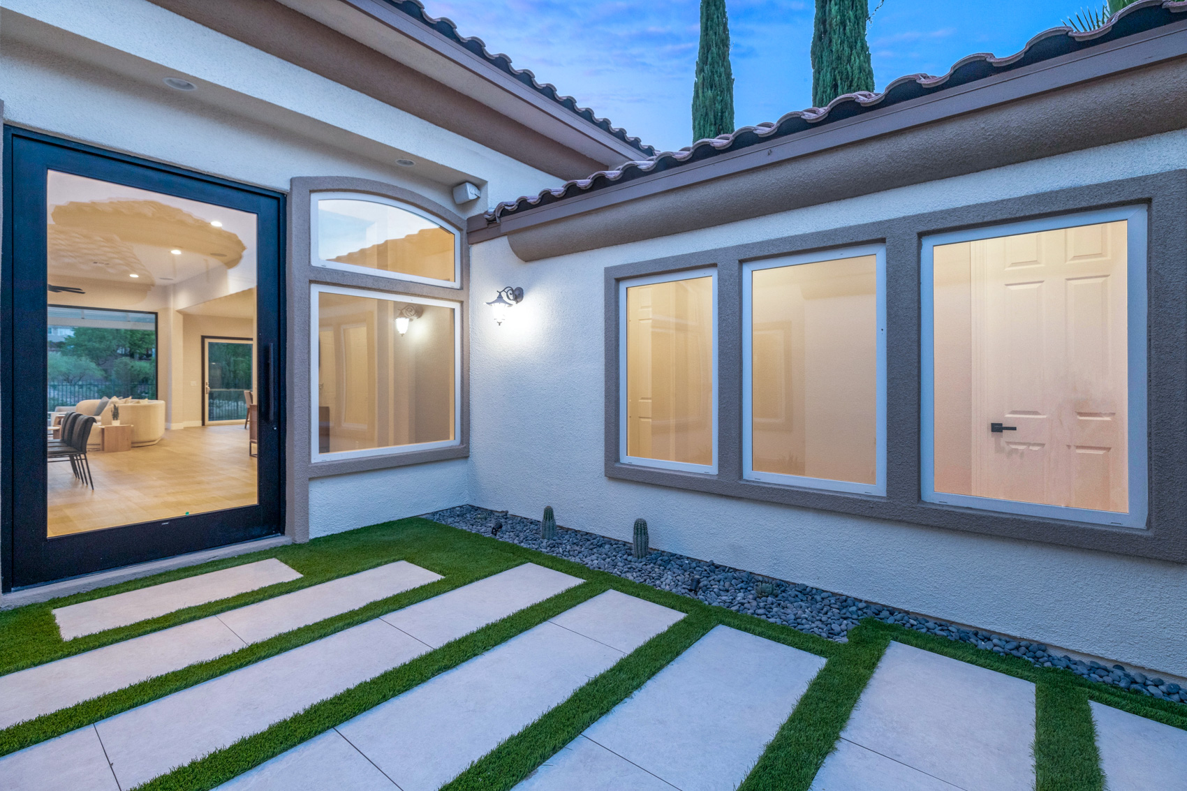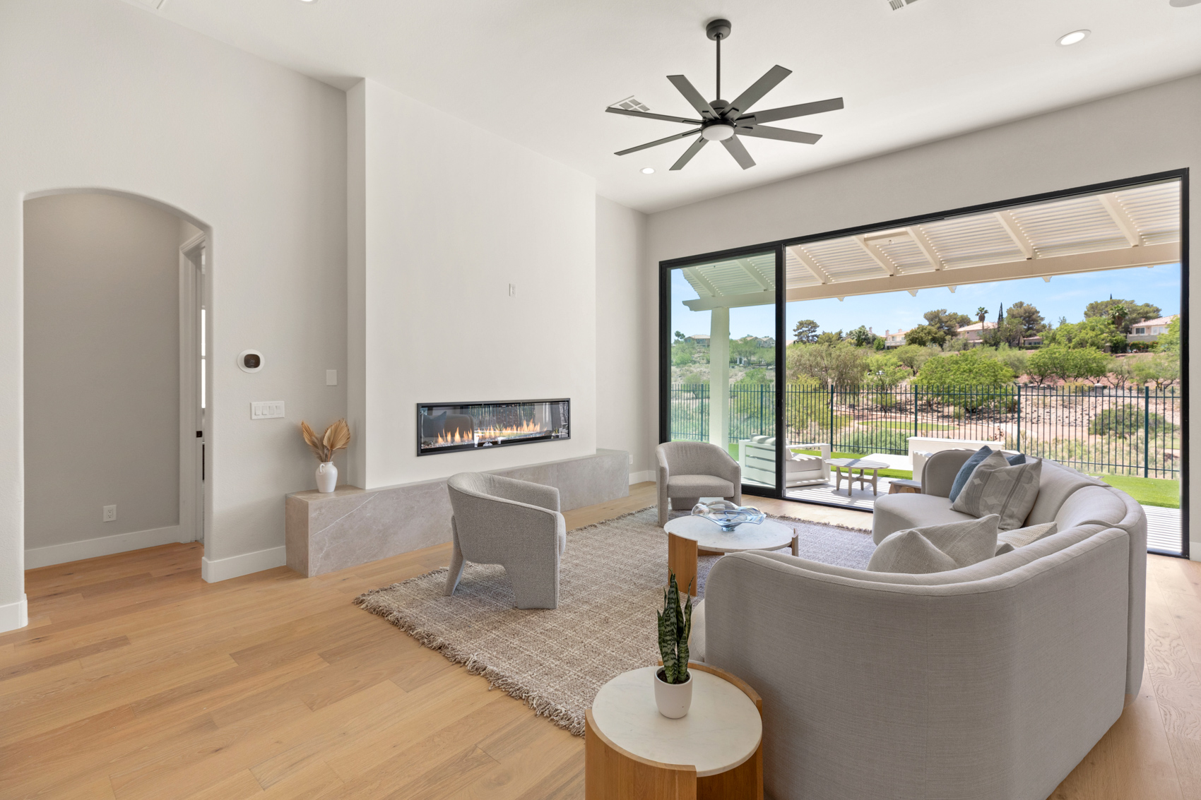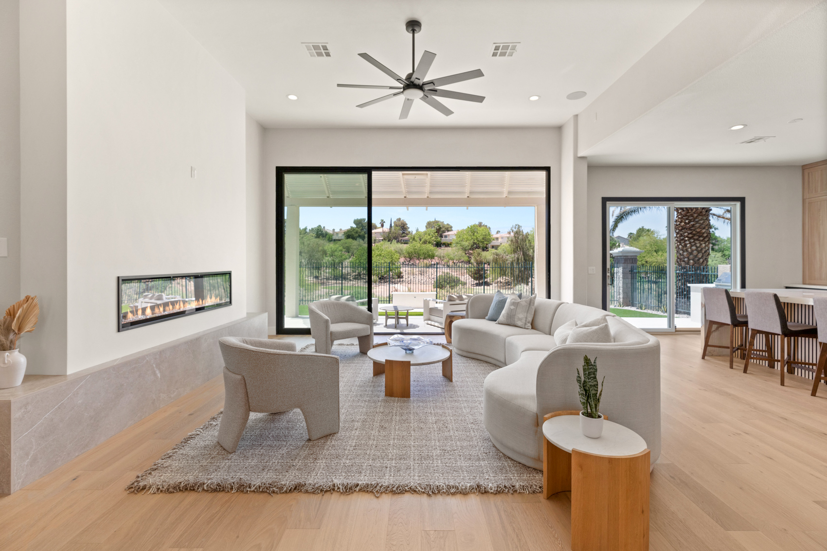 Nestled at the end of a tranquil cul-de-sac in Seven Hills, in the guard gated community of Renaissance, this recently remodeled single-story gem offers 2,801 sq. ft. of elegant living space. Seamlessly blending with the lush greens of the Rio Secco golf course below, this exquisite home boasts an open floor plan with 4 bedrooms and 3 luxurious bathrooms.