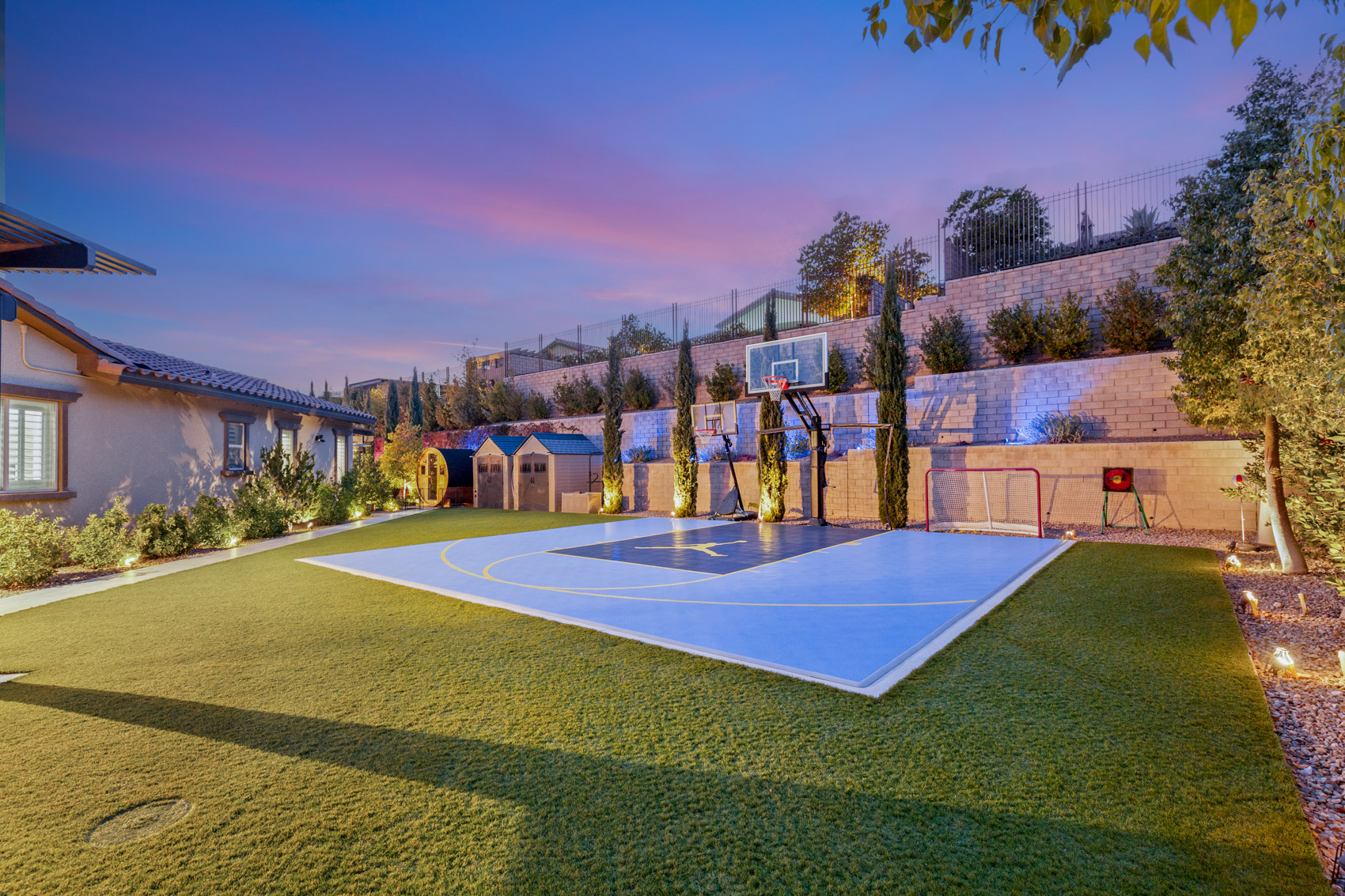 Experience luxury living in this stunning Toll Brothers home located at 12119 Castilla Rain. Thoughtfully upgraded, this property boasts a lavish pool and spa with Pentair equipment, solar heating, and a relaxing dry sauna. The enlarged kitchen island and custom cabinetry in the laundry room elevate functionality and design. Unwind in the professionally built sunroom/lounge or on the private basketball court.