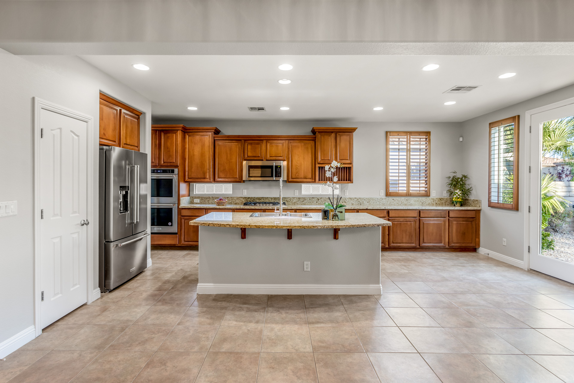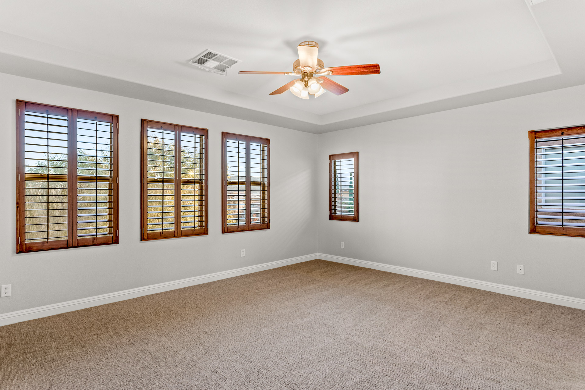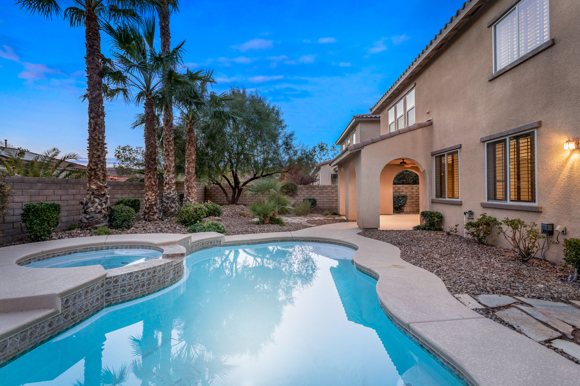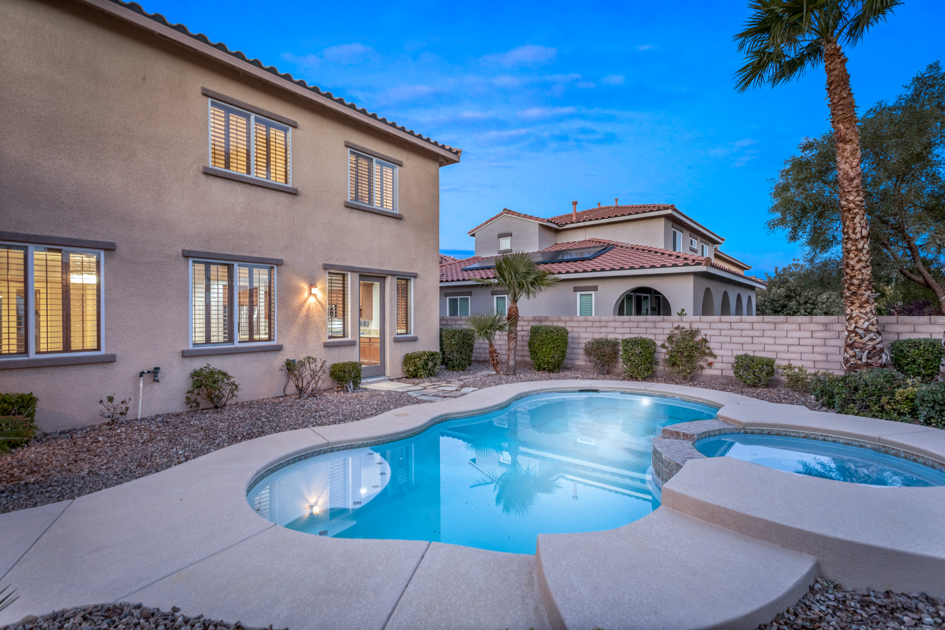 Now take a stroll upstairs and you will find an immense loft with a balcony that again faces the beautiful mountains. This space has so much potential. It could be a playroom for the children or a second living room. The possibilities are endless. The master bedroom is just magnificent! The fireplace in the room adds a special ambiance. As you walk through the house, make sure to pay attention to the abundance of storage. Now meander out back. With the immaculate desert landscaping, your inground heated pool and spa provide a wonderful space for spending time with family and friends. Breathtaking Las Vegas Sunsets, a beautiful home full of space and possibilities in a gorgeous community across from the park. Of course, you would want to live here!
