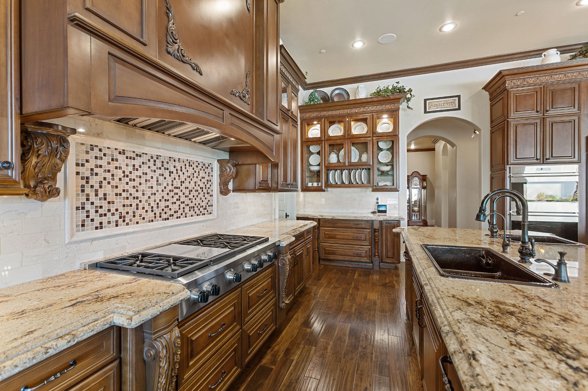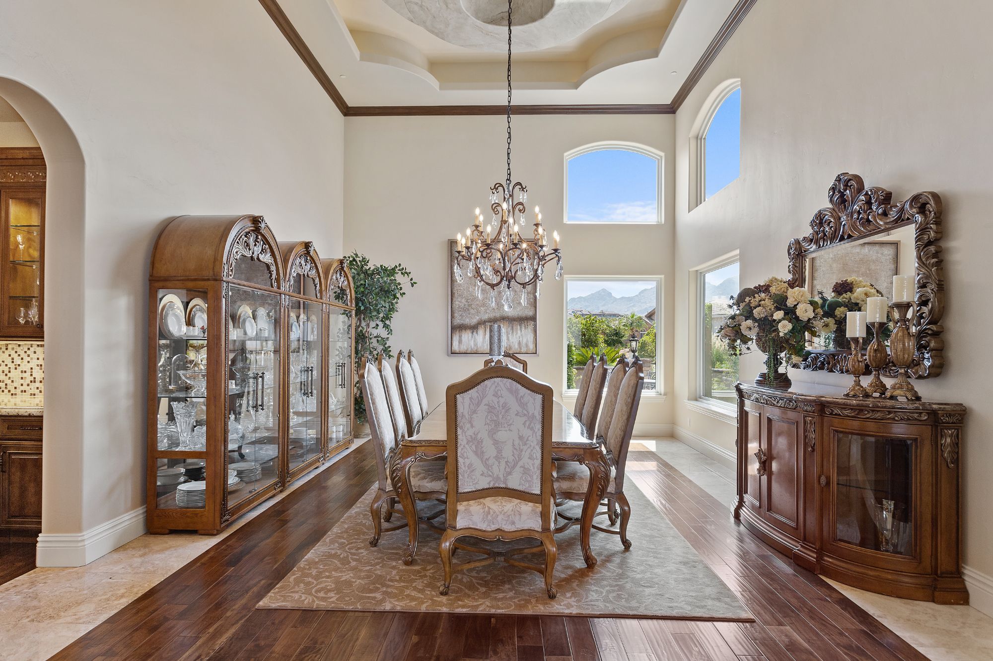 Situated on nearly an acre lot in "Rural Preservation" Henderson, this property is a superb example of blending contemporary lifestyle amenities with traditional design excellence. The home's graceful, gated entrance features a welcoming courtyard with bubbling fountain, and leads to an impressive arched entry door.