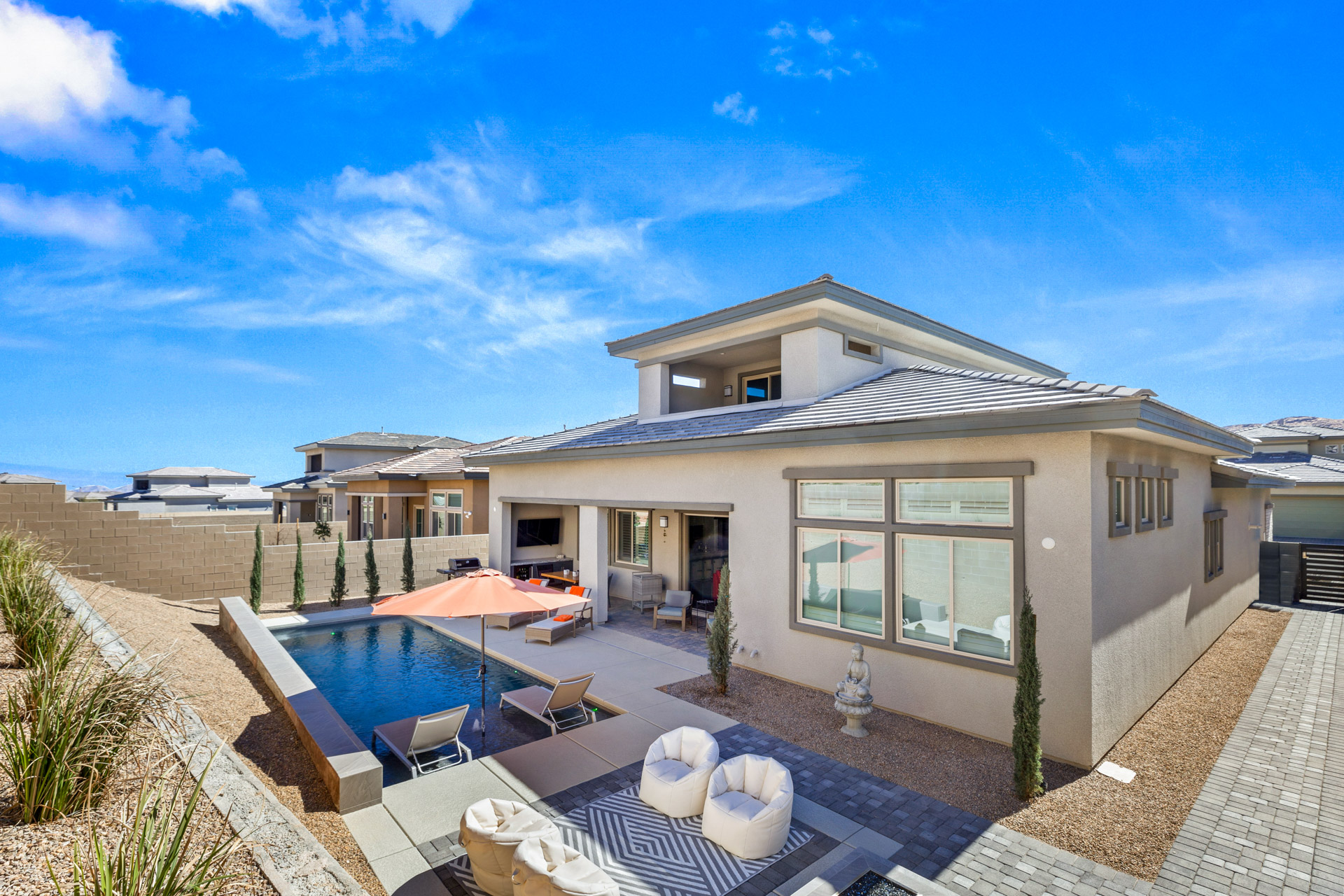 A distinctive two-story home in the gated Shadow Point Community of Summerlin offers a unique opportunity to enjoy the Las Vegas lifestyle at an enticing price point. This four-bedroom, three-bath home boasts nearly 2,800 square feet of living space, garage space for three vehicles, and a fully enclosed rear yard with a covered patio and an enticing lap pool.