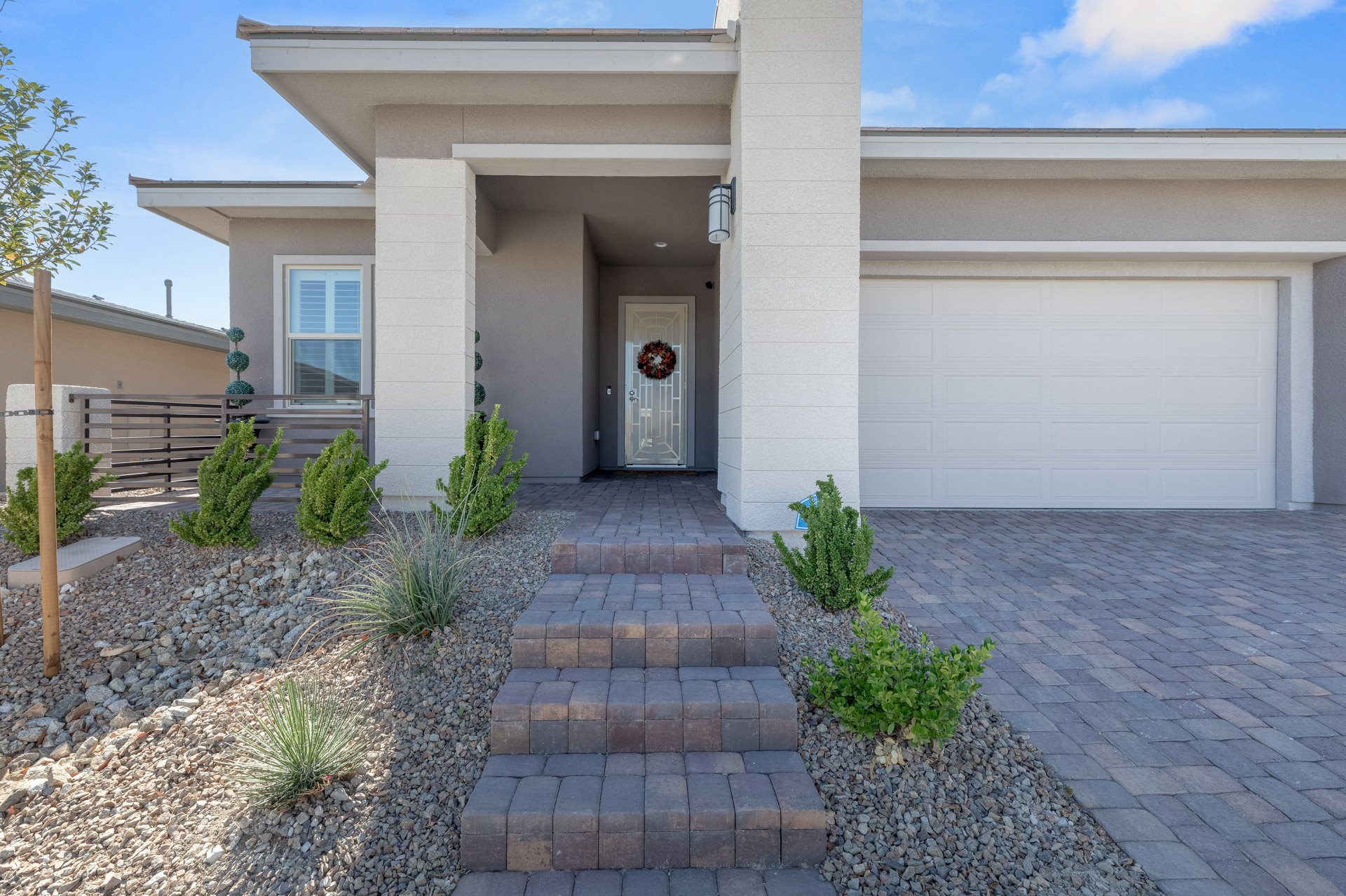 There is also a deck area on the back patio which features faux grass for easy upkeep, also space for a fire pit and beautiful mountain views over the wrought-iron fence. The primary bedroom is located off the living room and separated from the other 2 bedrooms, offering privacy and a view of the back patio. The en-suite has a dual vanity, the shower is Piedrafina marble, with rain head. Discover a large tiled laundry with ample cabinets and a sink off the hallway. This lovely home has many more upgrades and features worth seeing. Conveniently, there is a 3-car garage with tandem parking.