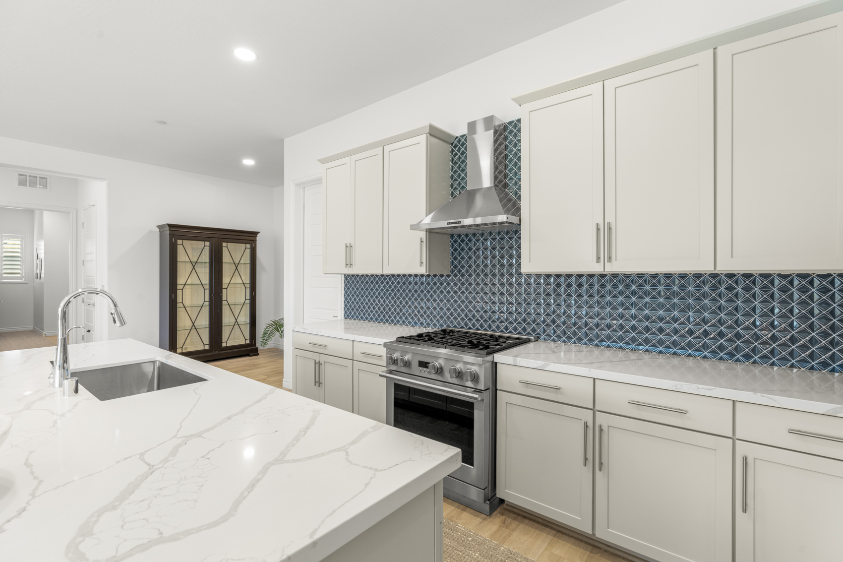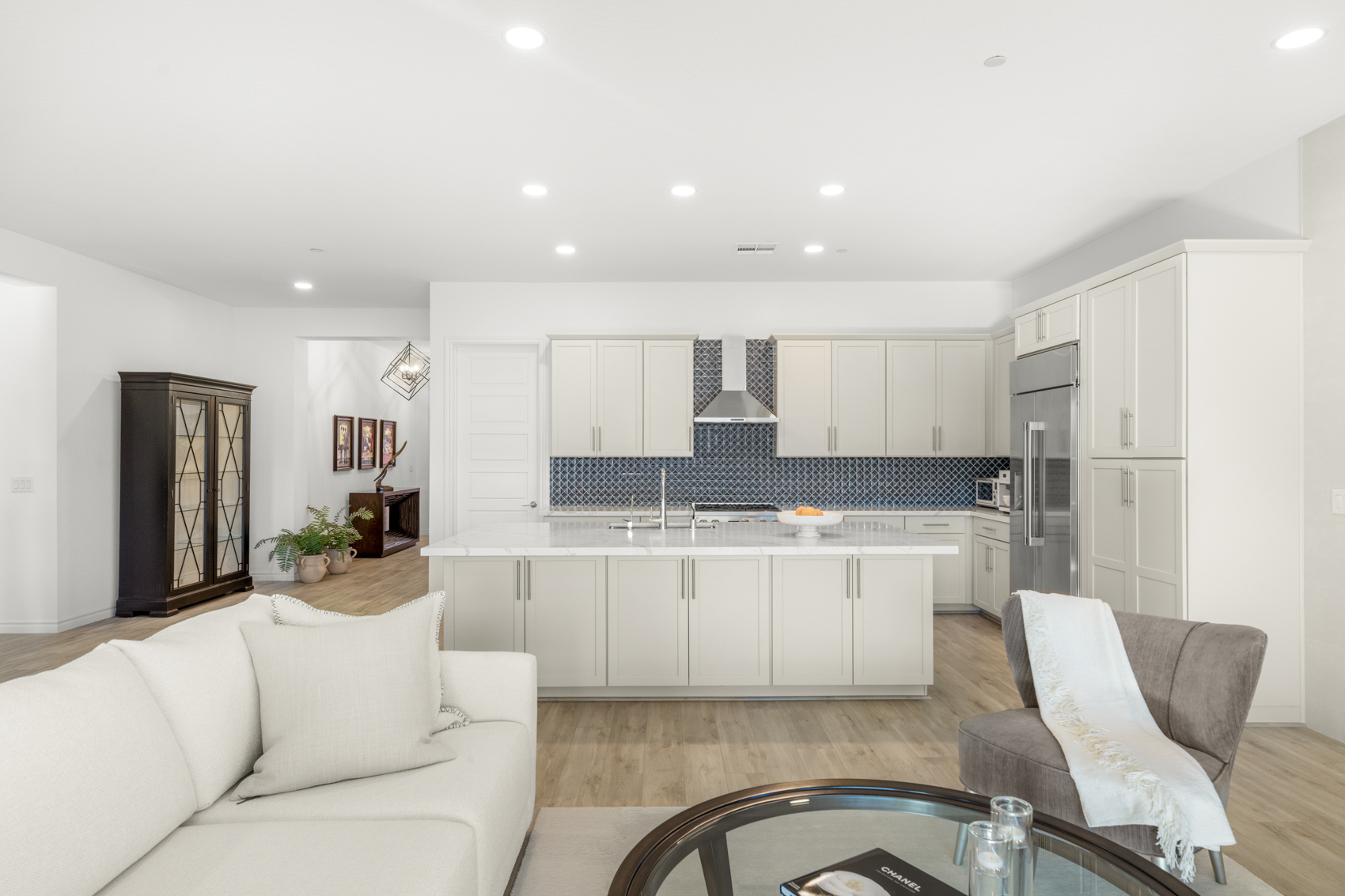 Located in the highly desirable Summerlin West area of Las Vegas, 12596 Heritage Heights Dr. is a modern, single-story home built in 2023. The residence offers approximately 2,515 square feet with 3 bedrooms, 2.5 baths, and an incredible kitchen featuring custom cabinets, quartz countertops, a custom tile backsplash, a breakfast bar and a massive walk-in pantry.