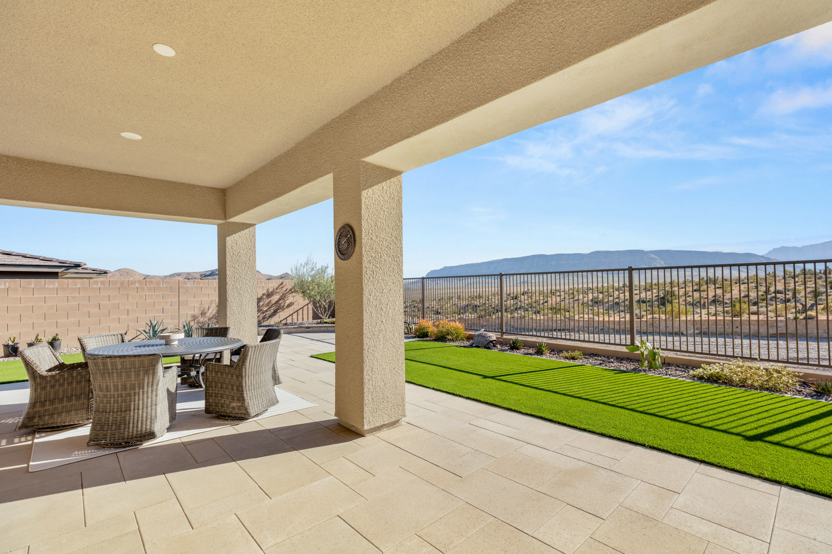 One of the most magnificent features of this home, situated on the large 8,712-square-foot lot, is the amazing panoramic views of the BLM land and mountains. The lack of neighbors to the right, making the backyard incredibly private. The desert landscape and synthetic grass make this ideal for easy low maintenance. You can enjoy your nights outside under the large, covered patio, custom stone flooring and the feel of indoor outdoor living! A 4-car tandem garage and plenty of storage makes this a very special home. Located close to the Clubhouse, shopping, dining and the outdoor recreation Summerlin is known for is closeby.